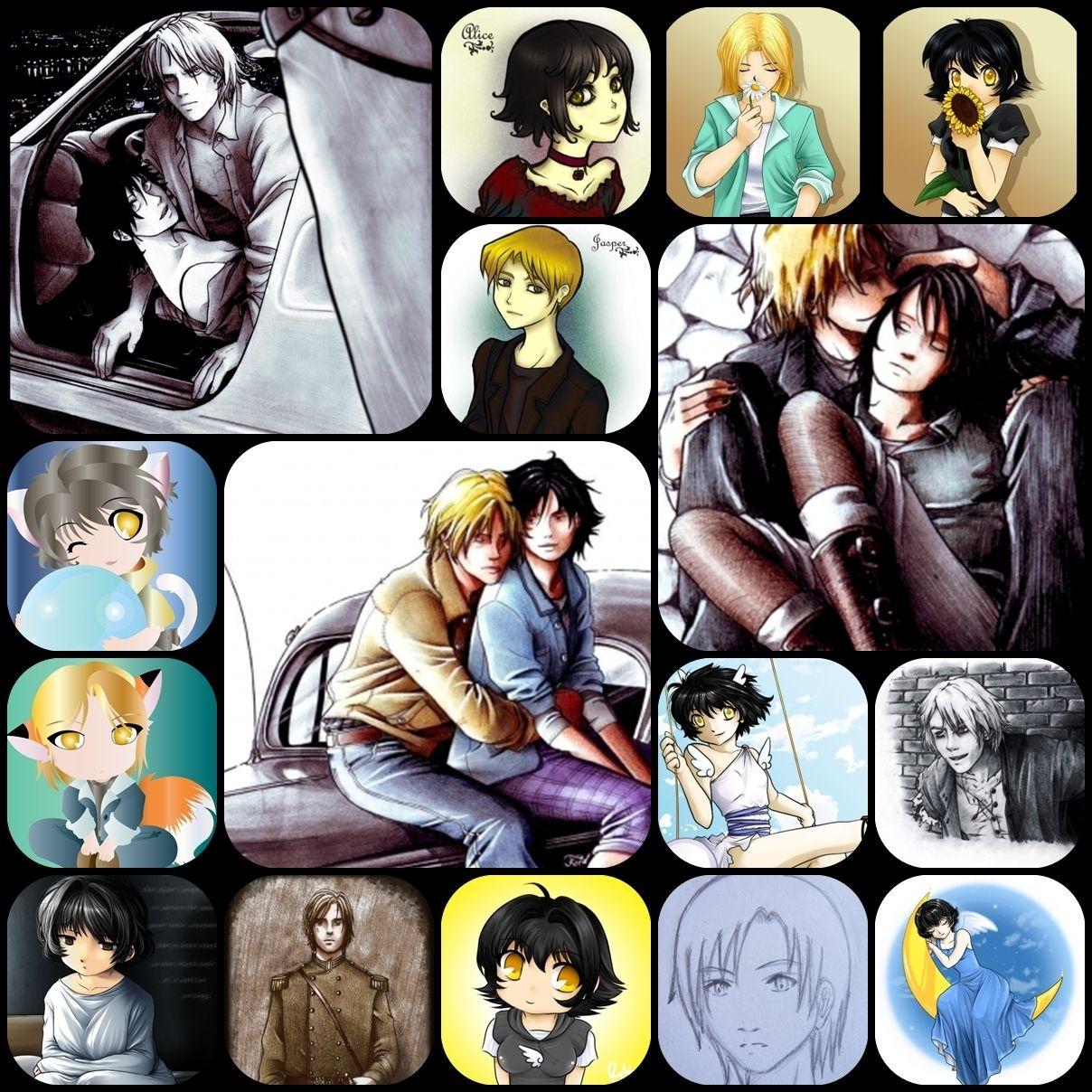 Нежная коллекция иллюстраций рассказывает историю любви Элис и Джаспера в различных сказочных интерпретациях. Художники создают романтические композиции, где пара предстает в образах принцев и принцесс, волшебников и фей, героев фантастических миров. Каждая работа имеет свою уникальную атмосферу - от лесных прогулок до дворцовых балов. Детали одежды, окружающей обстановки и эмоциональные выражения лиц тщательно проработаны. Цветовая палитра варьируется от пастельных тонов для нежных сцен до насыщенных цветов для драматических моментов. Иллюстрации демонстрируют эволюцию отношений - от первой встречи до глубокого чувства. Работы выполнены в различных техниках, что позволяет по-разному интерпретировать одну и ту же историю любви.