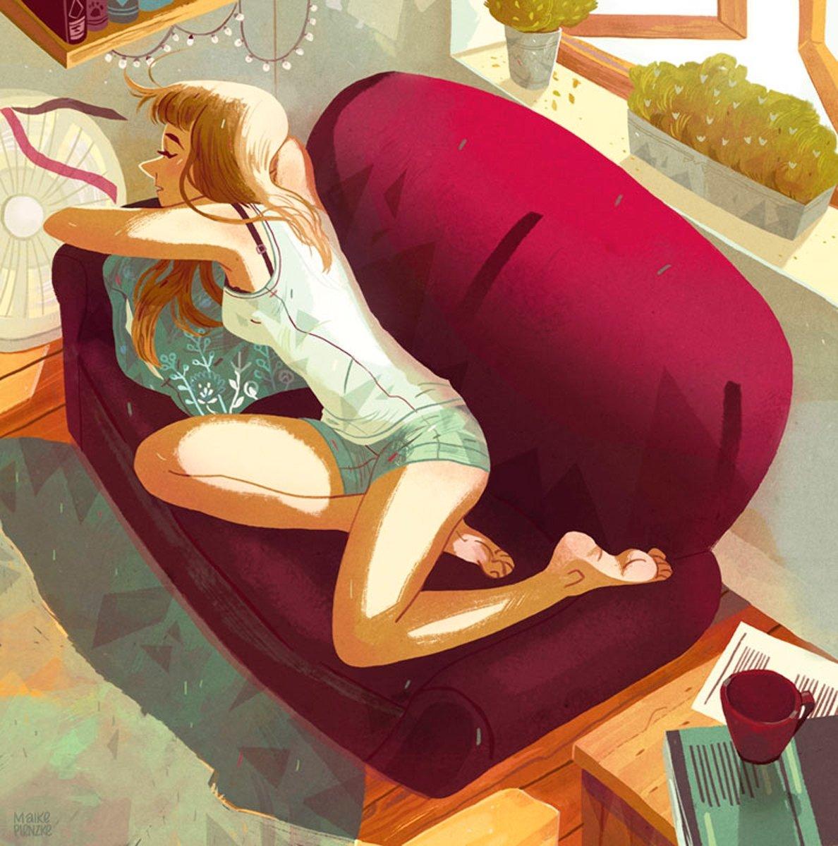 Набор фотографий запечатлевает женщин в их самые интимные моменты отдыха на мягких диванах. Эти снимки показывают естественную красоту без макияжа и формальностей, когда усталость смешивается с удовлетворением от прожитого дня. Модели в удобной домашней одежде или просто в нижнем белье демонстрируют различные грани женственности - от уязвимости до уверенности. Композиции варьируются от крупных планов лиц с закрытыми глазами до общих видов фигур, утопающих в подушках. Освещение играет ключевую роль, создавая атмосферу уюта и близости. Каждая фотография рассказывает о том, как выглядит настоящая релаксация и какие эмоции она вызывает.