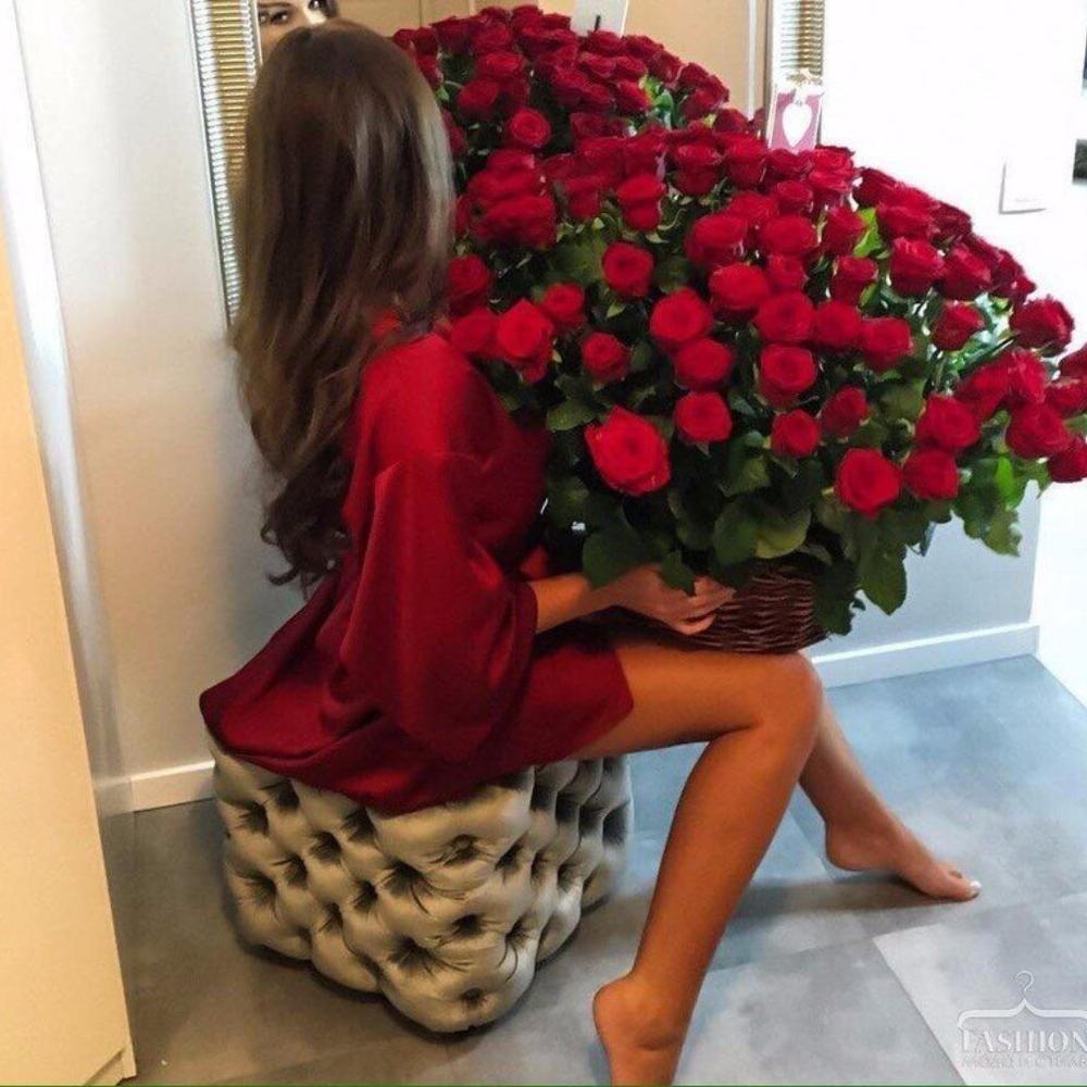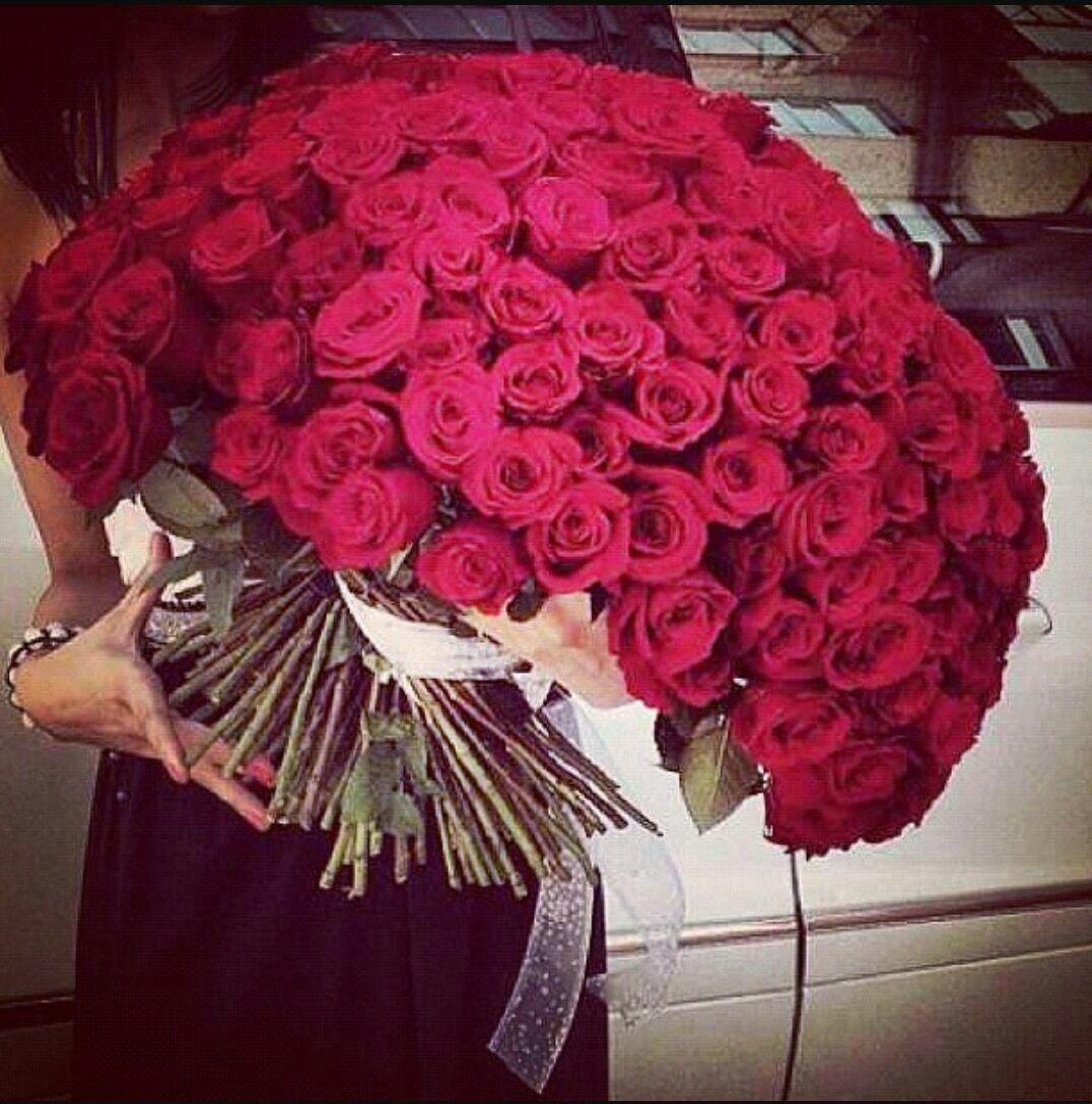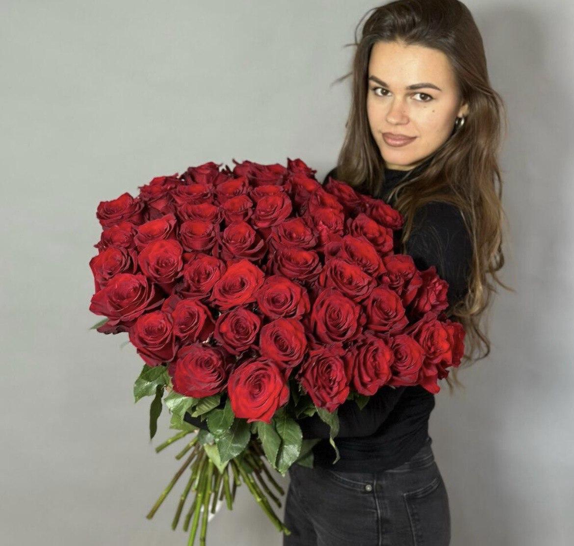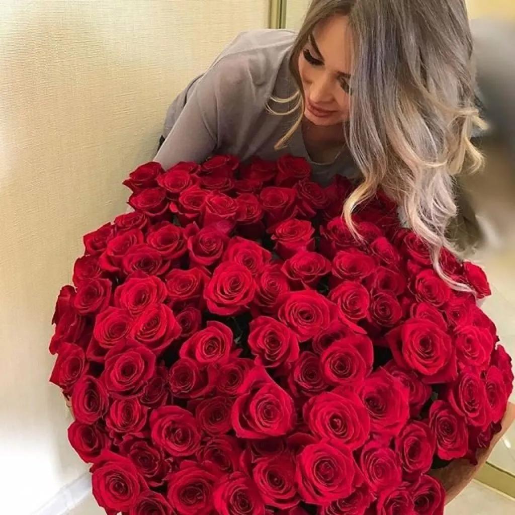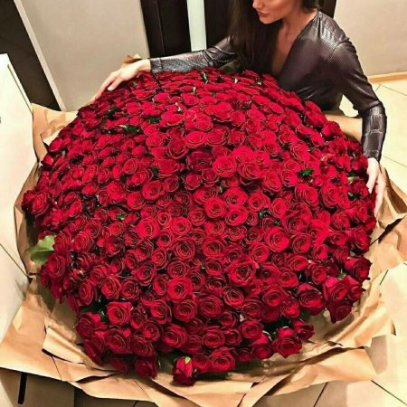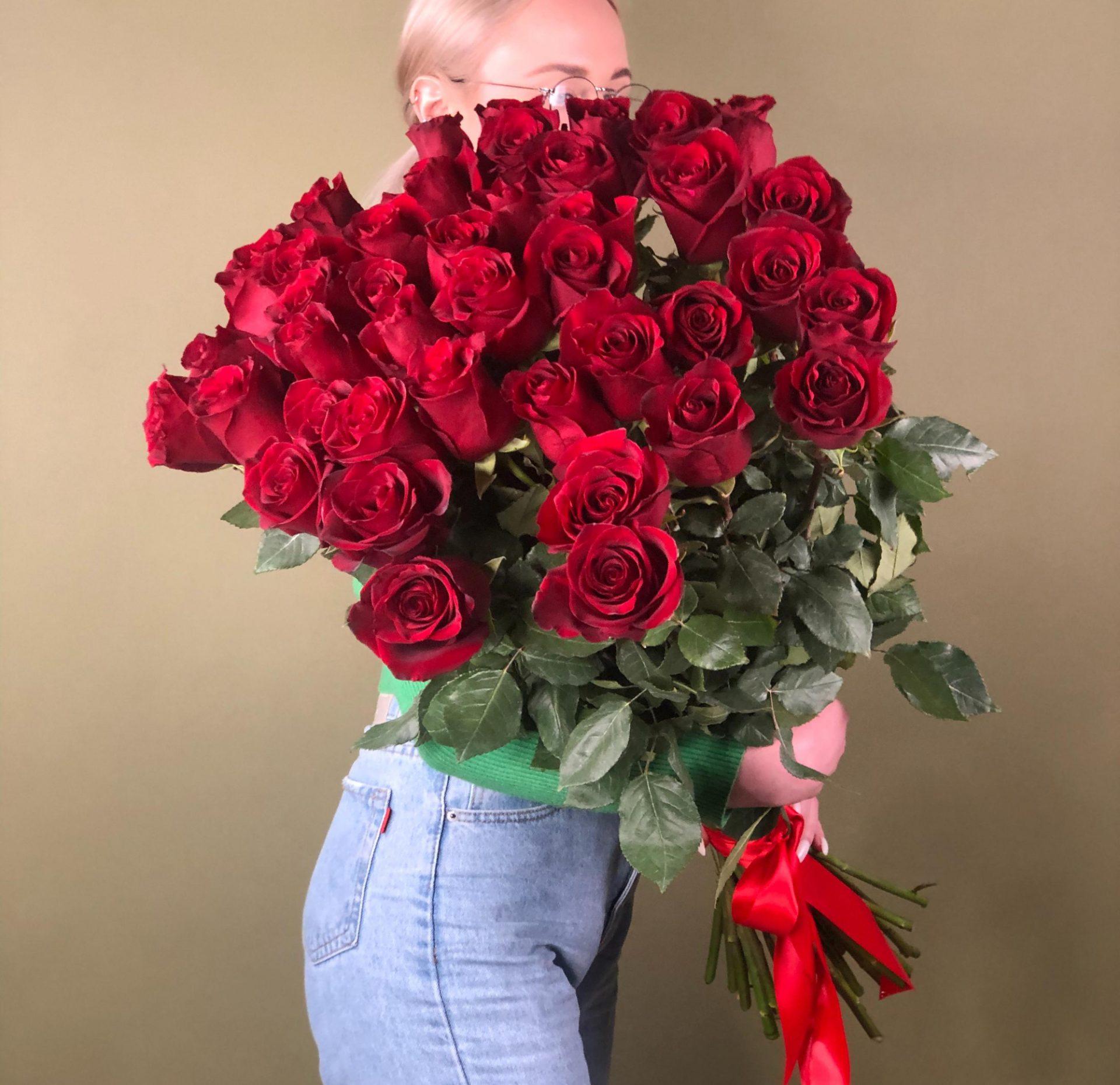 Девушка с огромным букетом роз