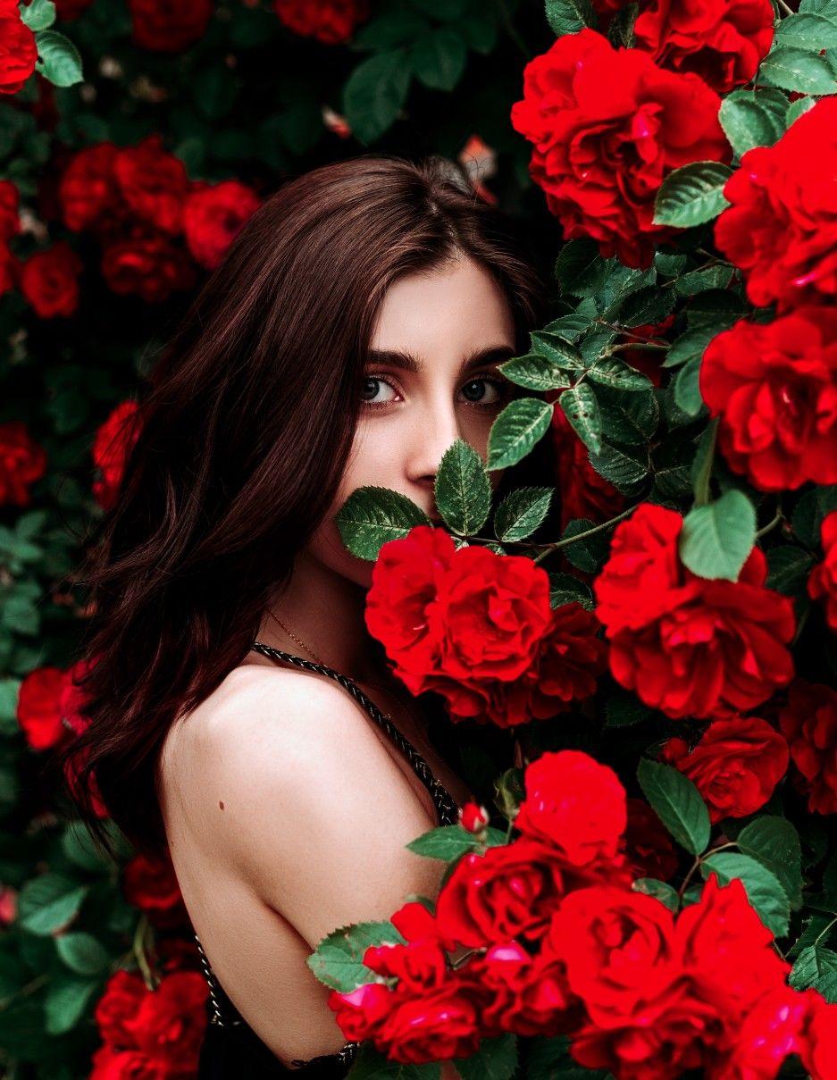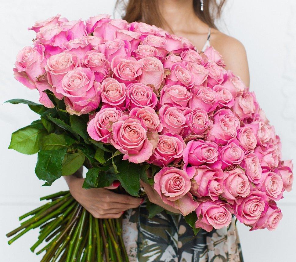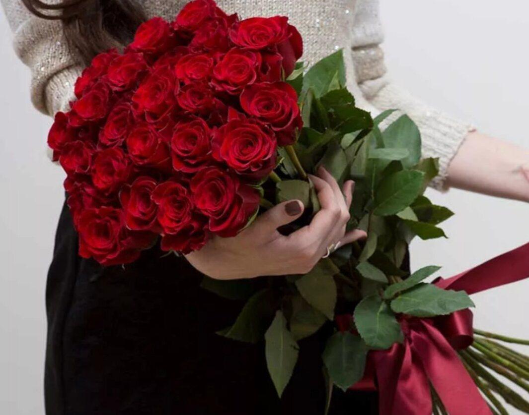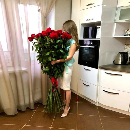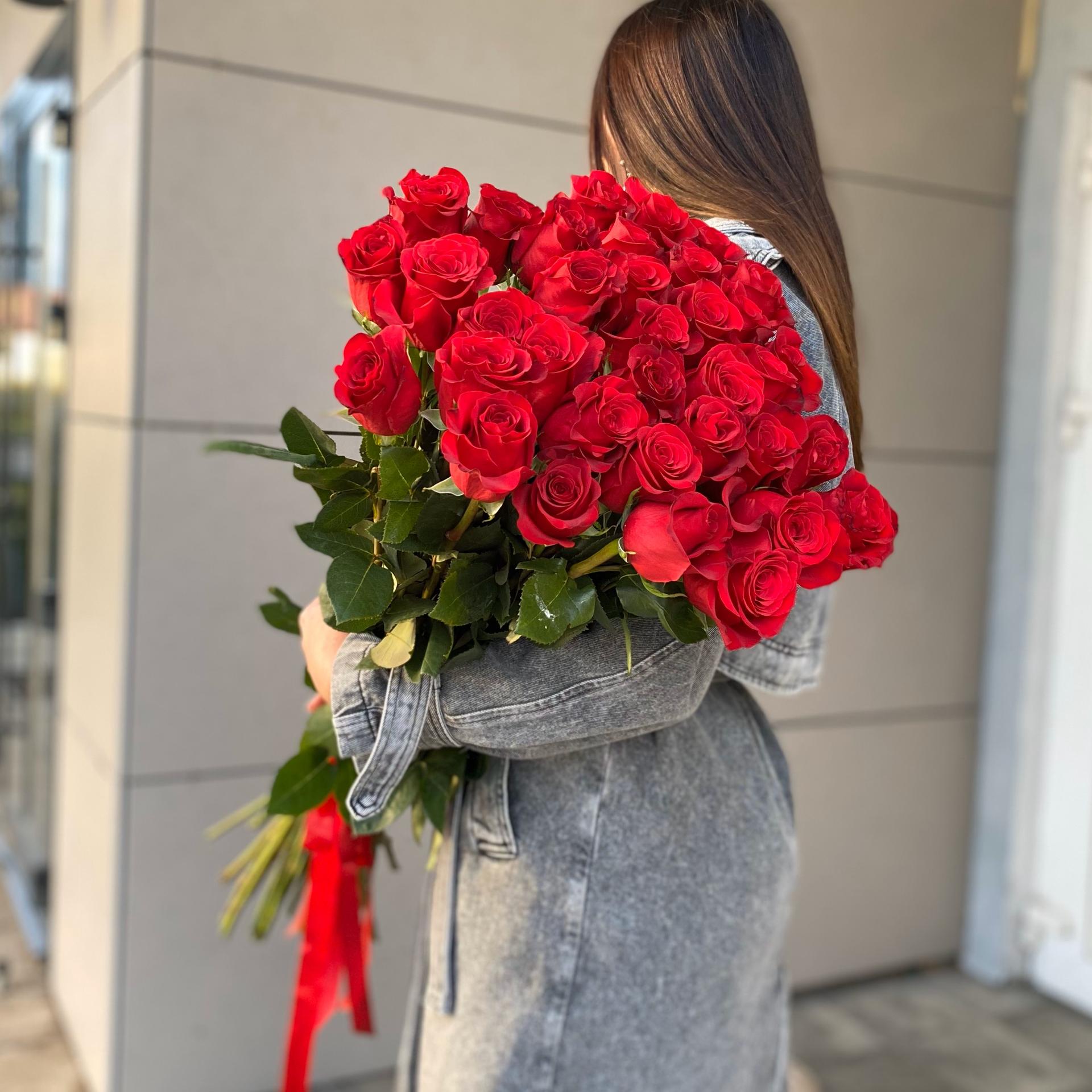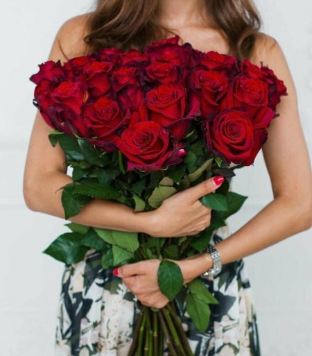 Девушка с огромным букетом роз