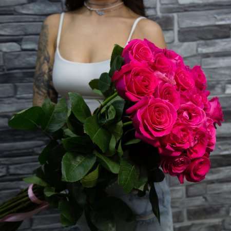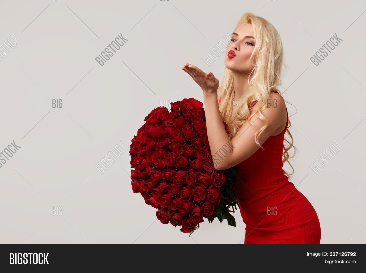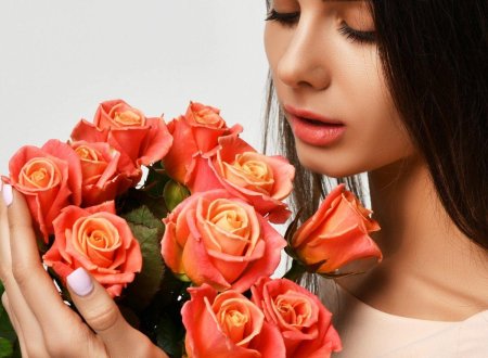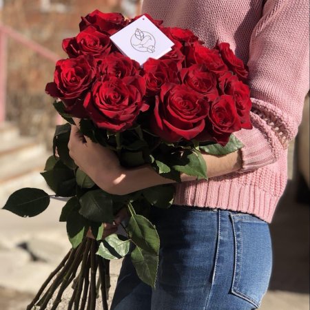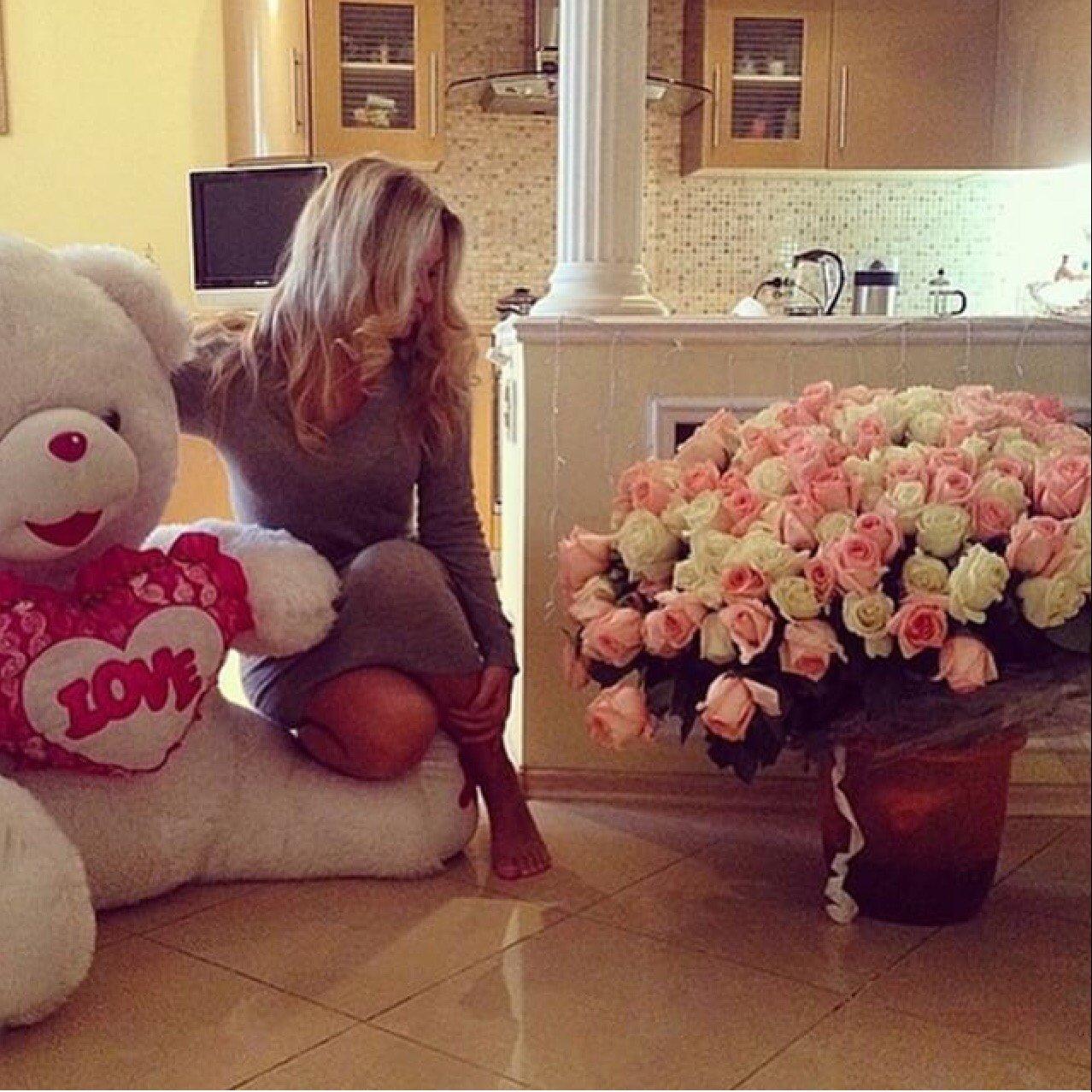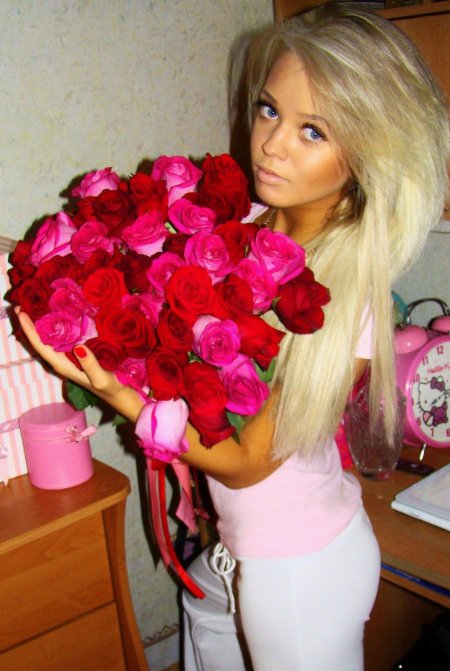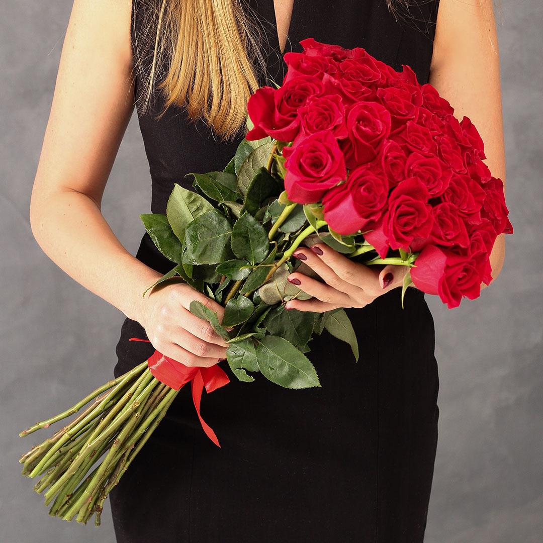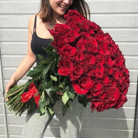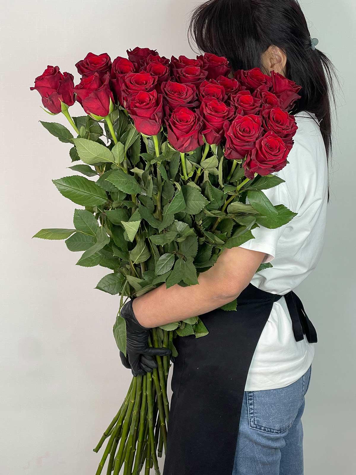 Девушка с огромным букетом роз
