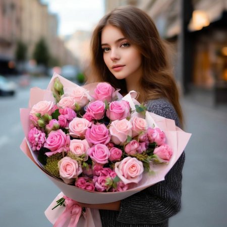 Нежные иллюстрации девушки с огромным букетом роз создают атмосферу романтической мечты и страстной любви, где каждый лепесток становится символом чувств. Художники мастерски передают эмоции - от радостного удивления до задумчивой нежности. Тематические арты демонстрируют различные сцены: от свадебных композиций до casual моментов. Каждая картинка передает атмосферу романтического настроения и цветочного изобилия. Коллекция включает работы в жанрах romance, portrait, floral art. Картинки подчеркивают красоту цветов, эмоциональную выразительность и атмосферу влюбленности. Тематические элементы включают розовые бутоны, нежные позы, мягкое освещение и атмосферу романтического счастья.