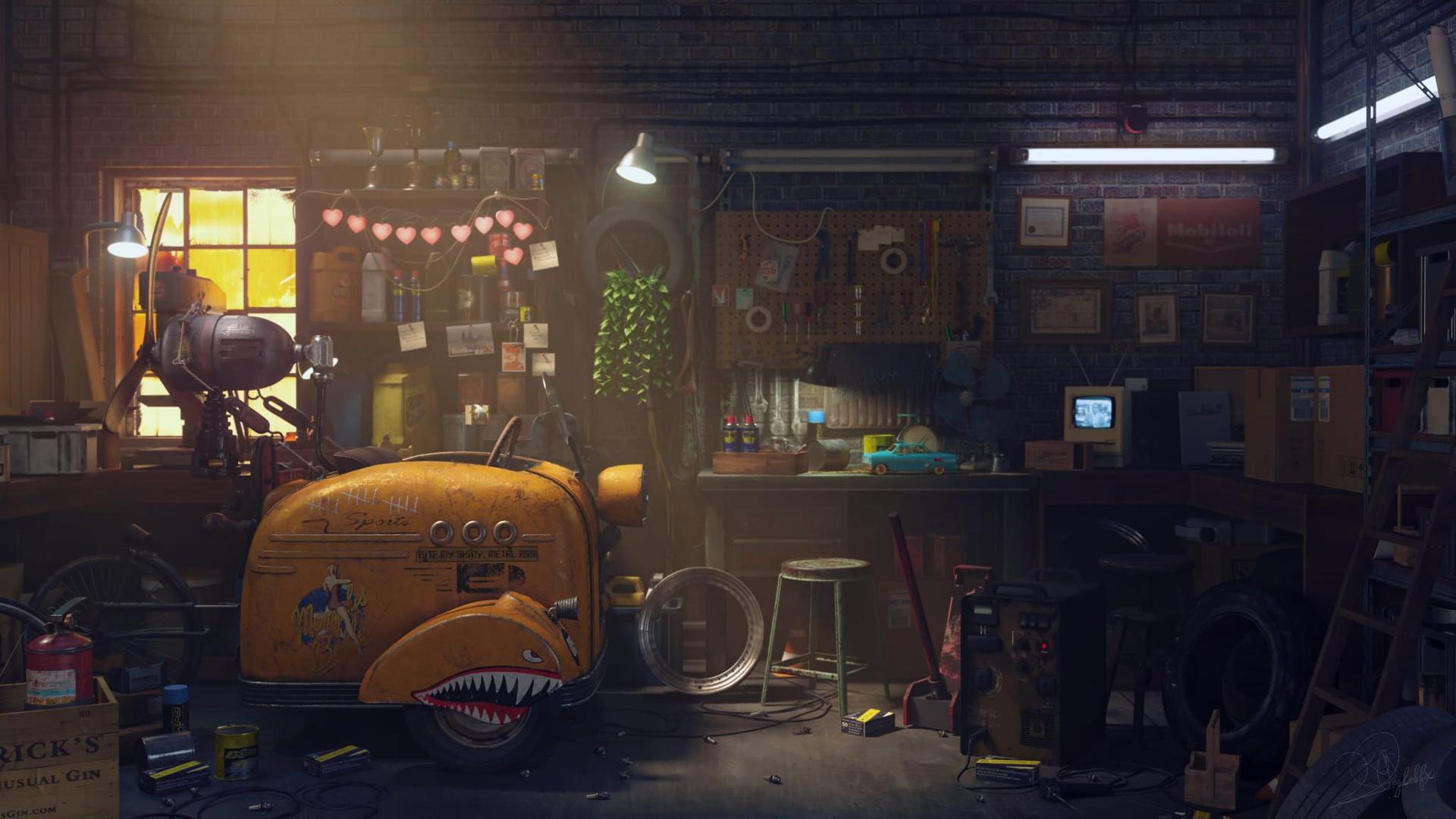 Дизельпанковые арты интерьера