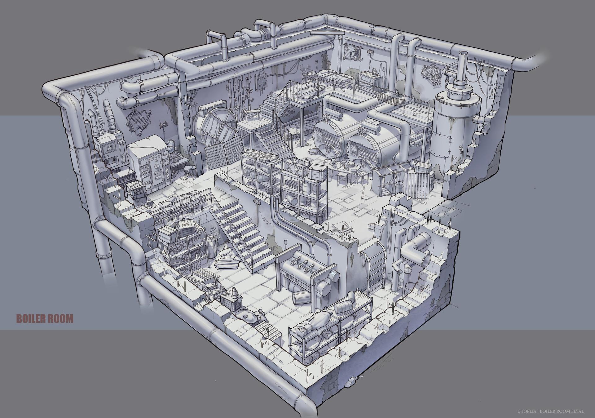Исследуйте коллекцию дизельпанковых артов интерьера, где жилые помещения преобразуются в индустриальные пространства. Эти иллюстрации демонстрируют гармонию между функциональностью и эстетикой. Комнаты предстают как инженерные шедевры.