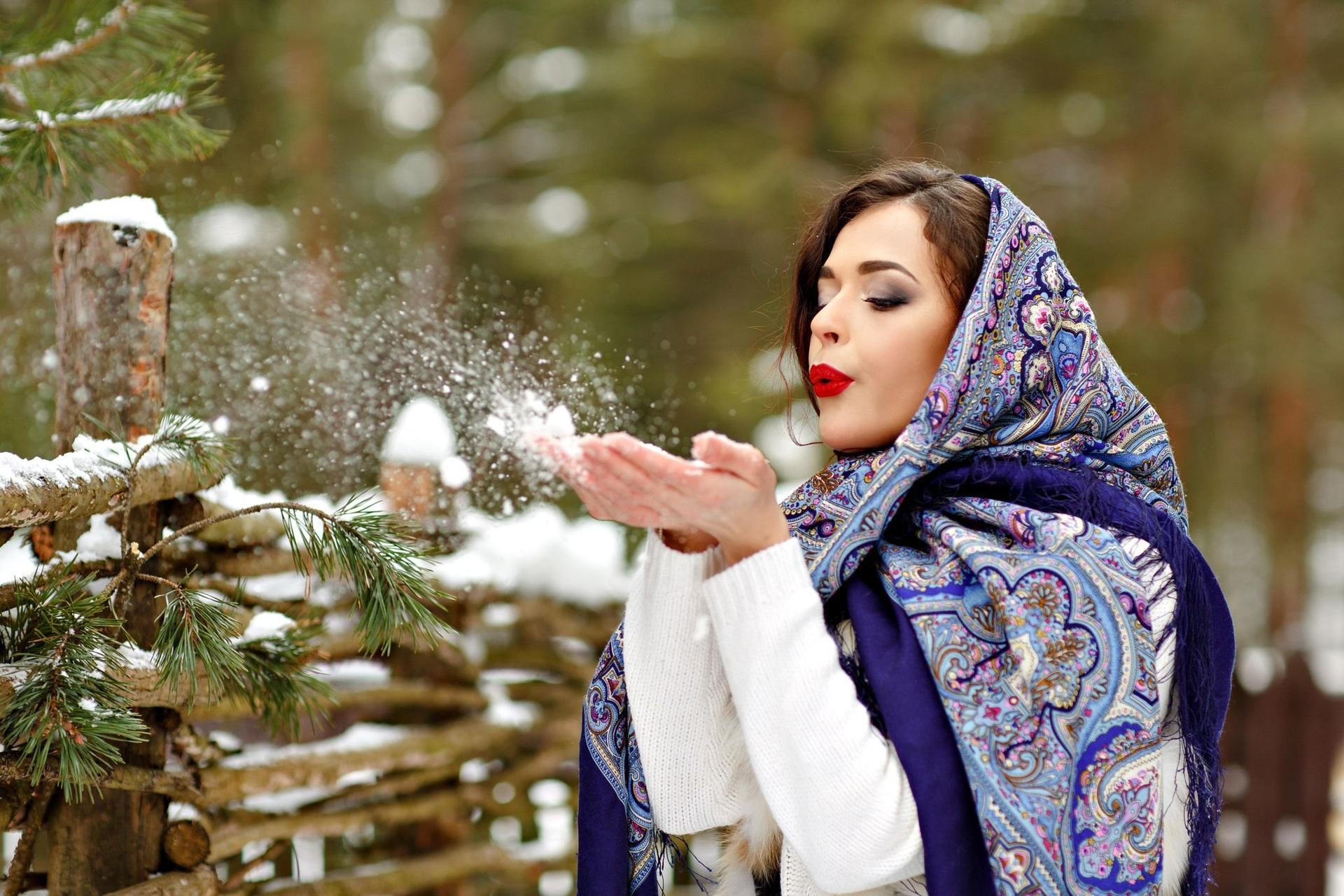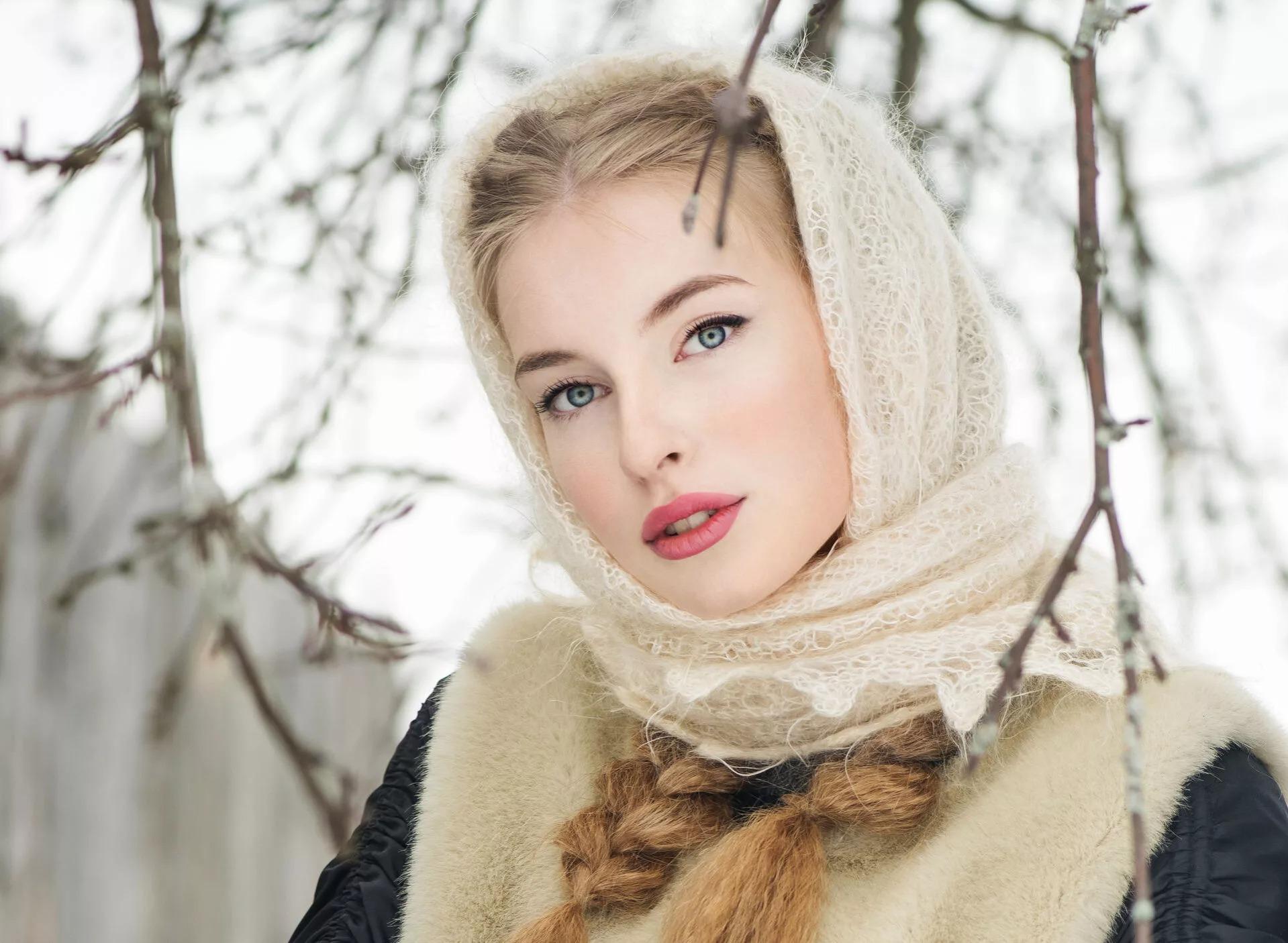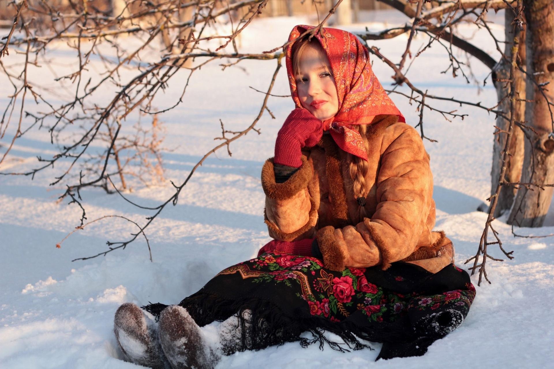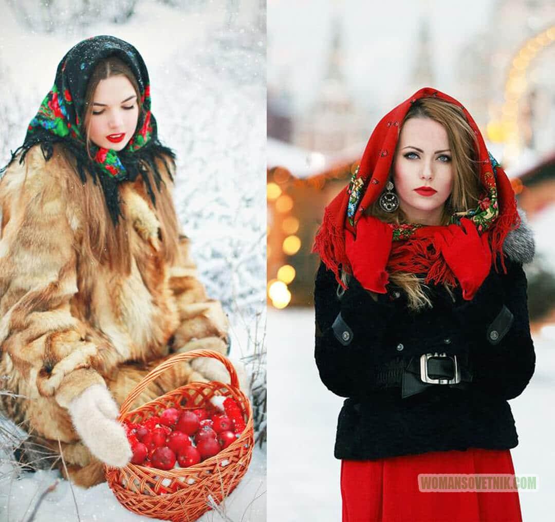 Девушки в платках зимой