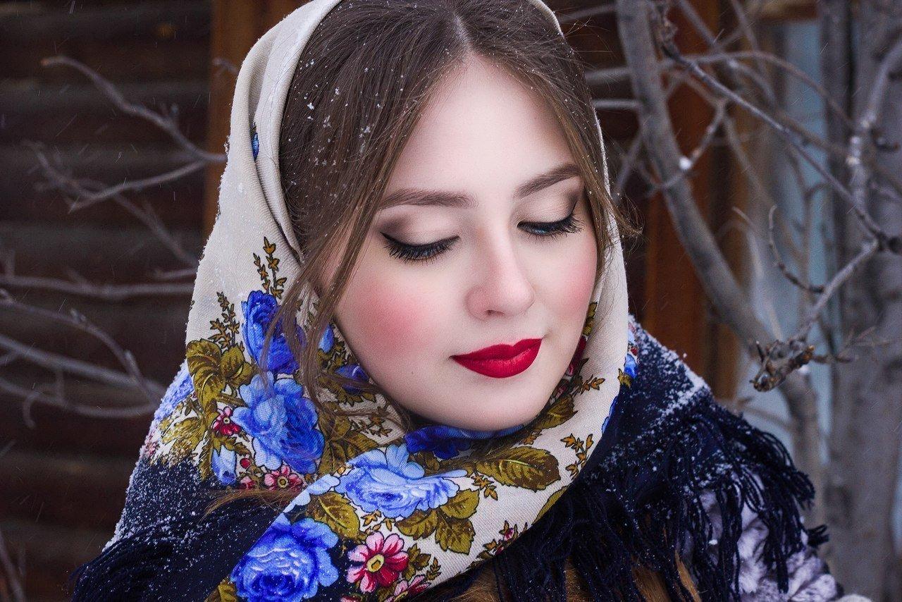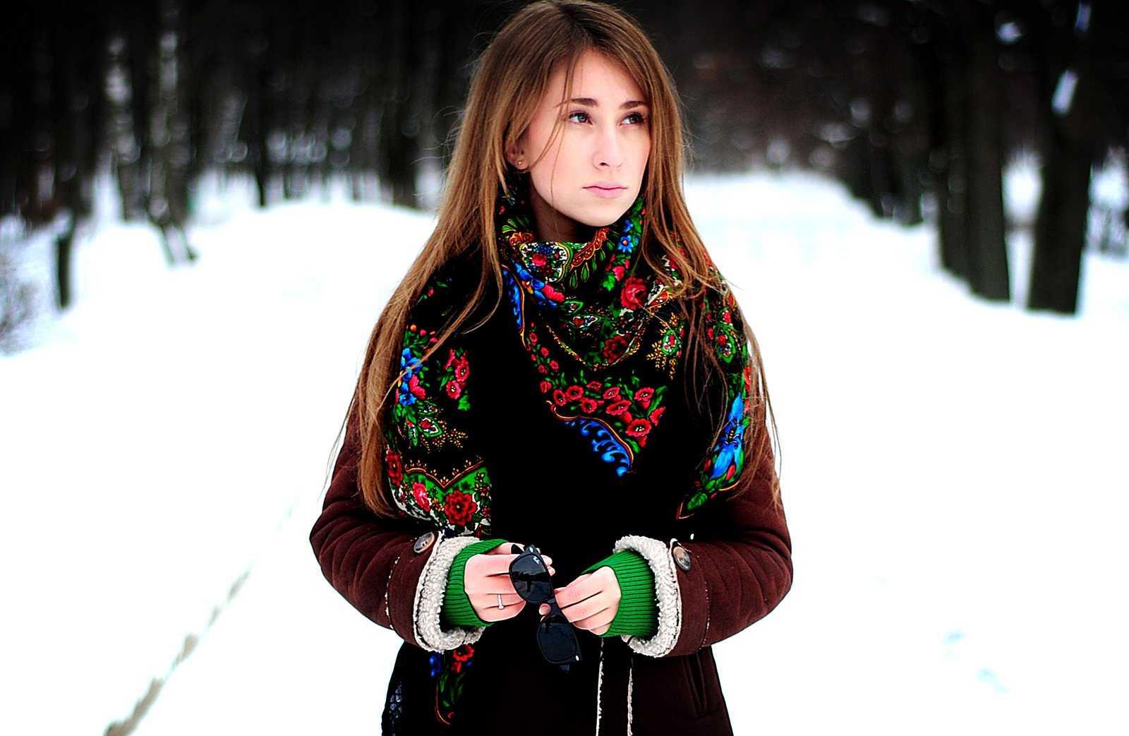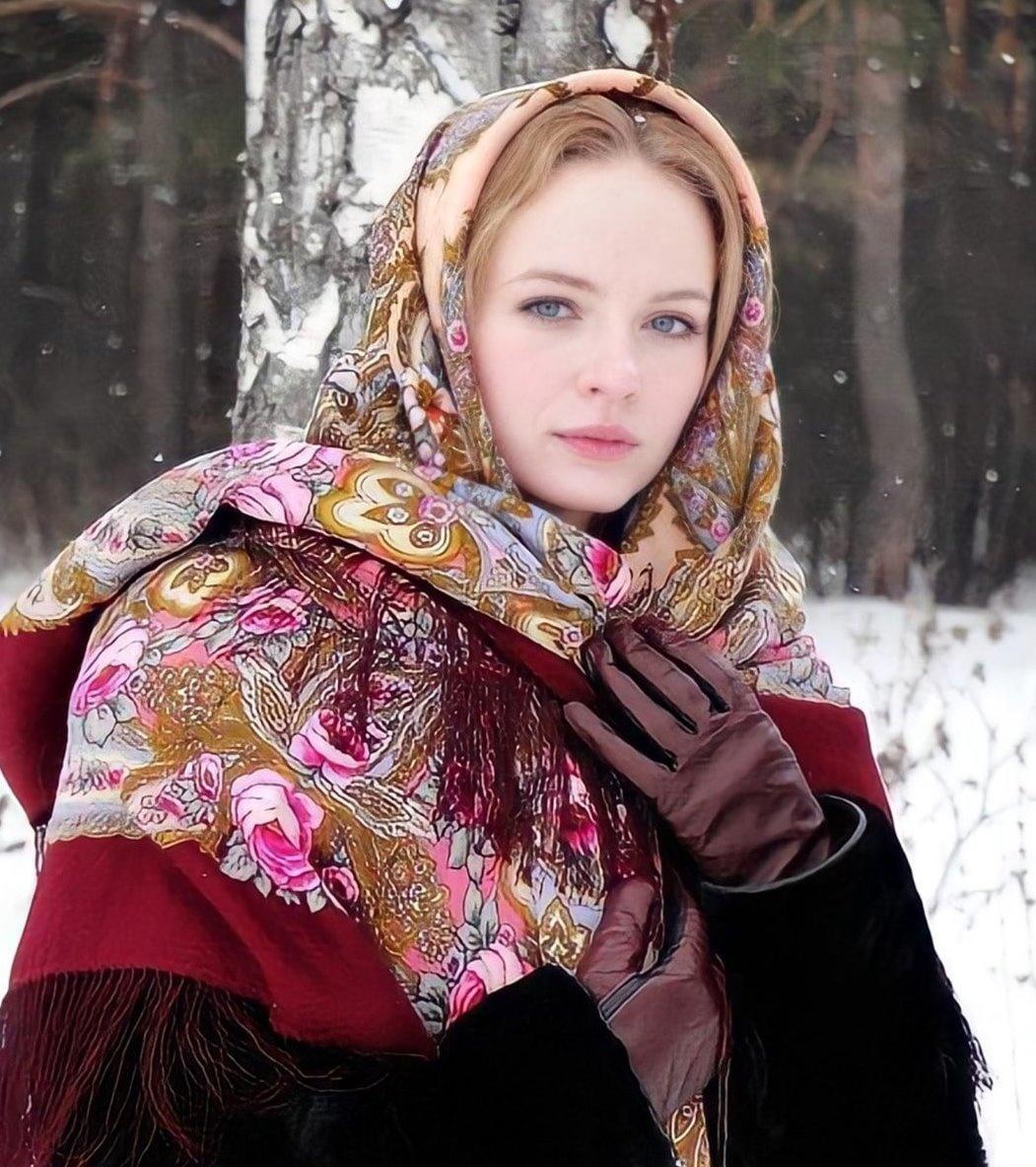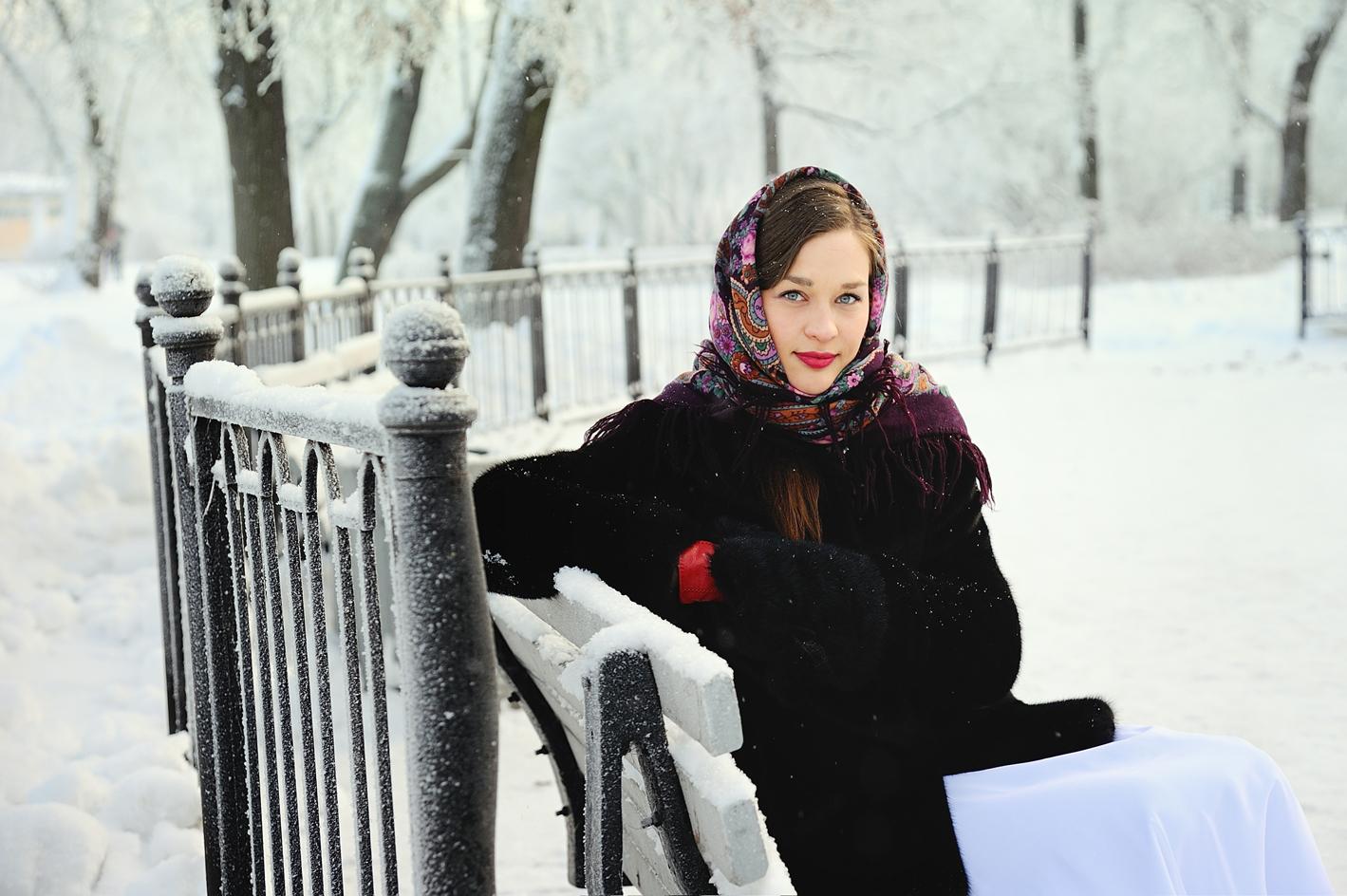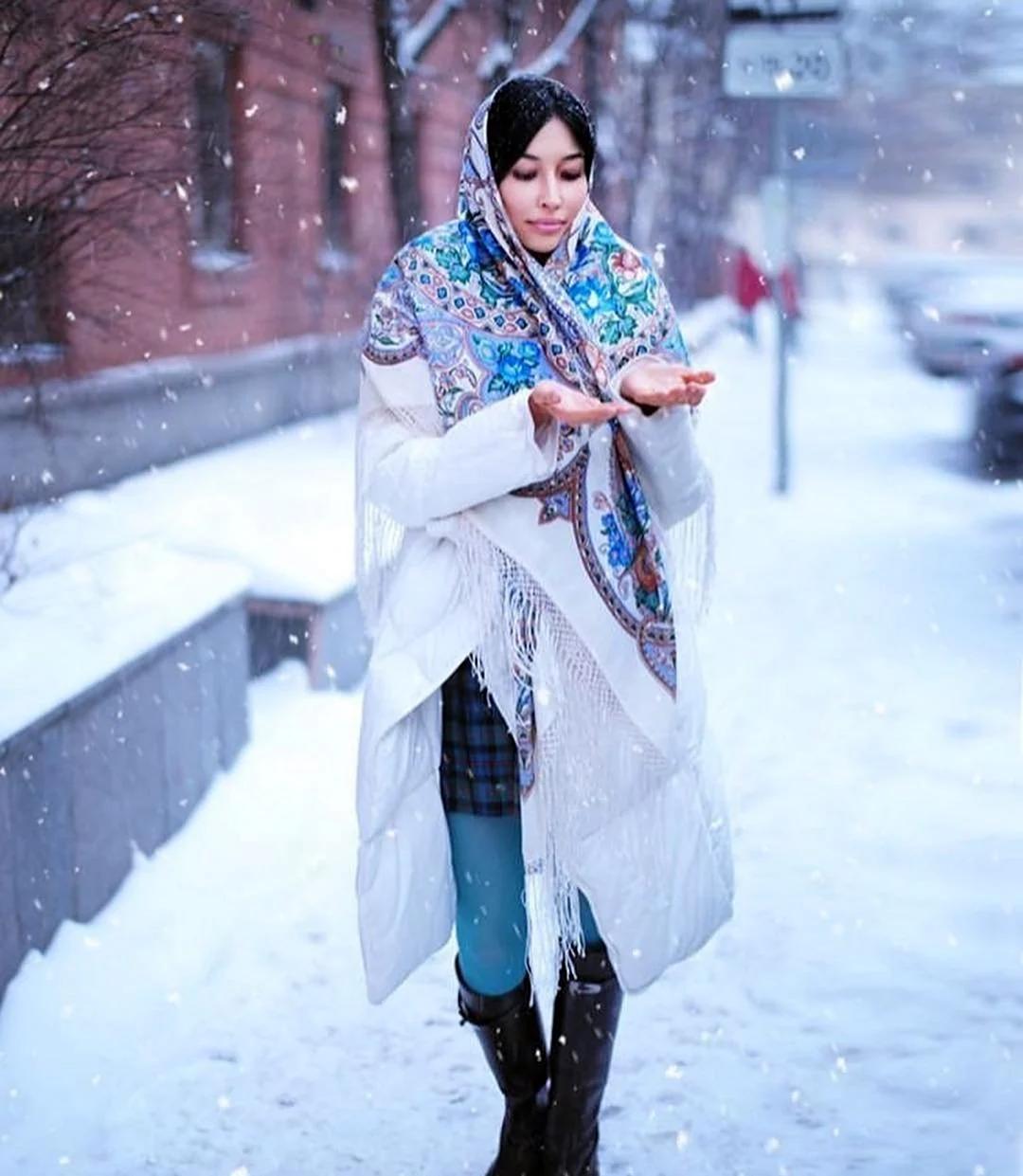 Девушки в платках зимой