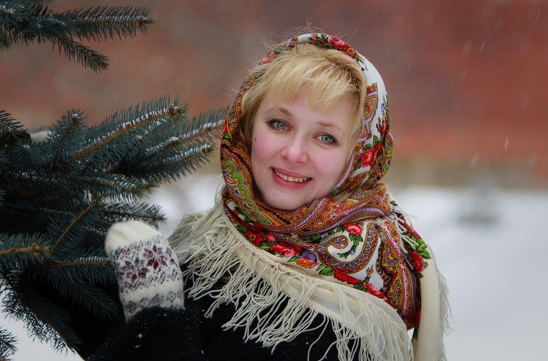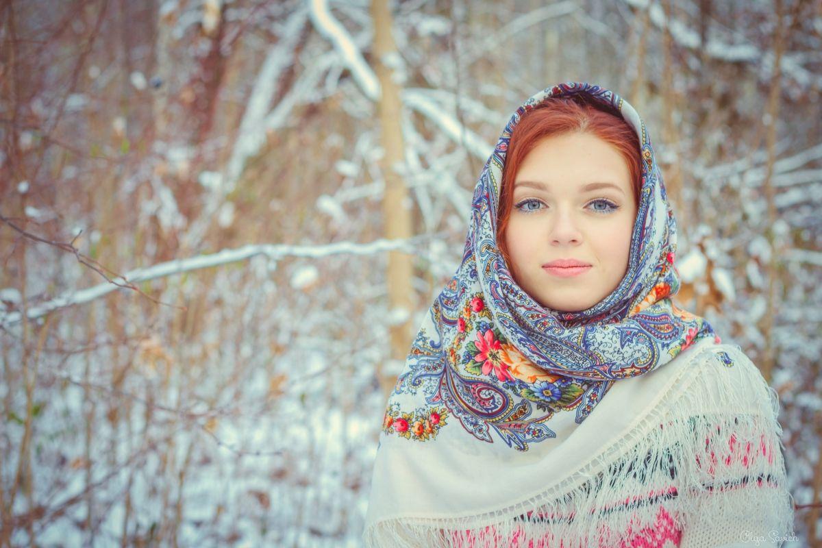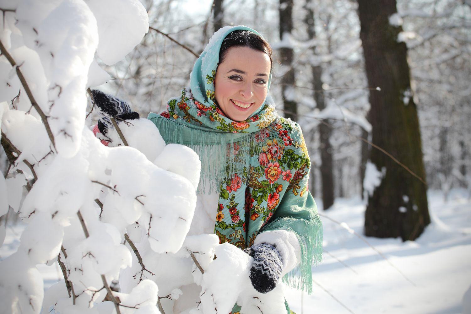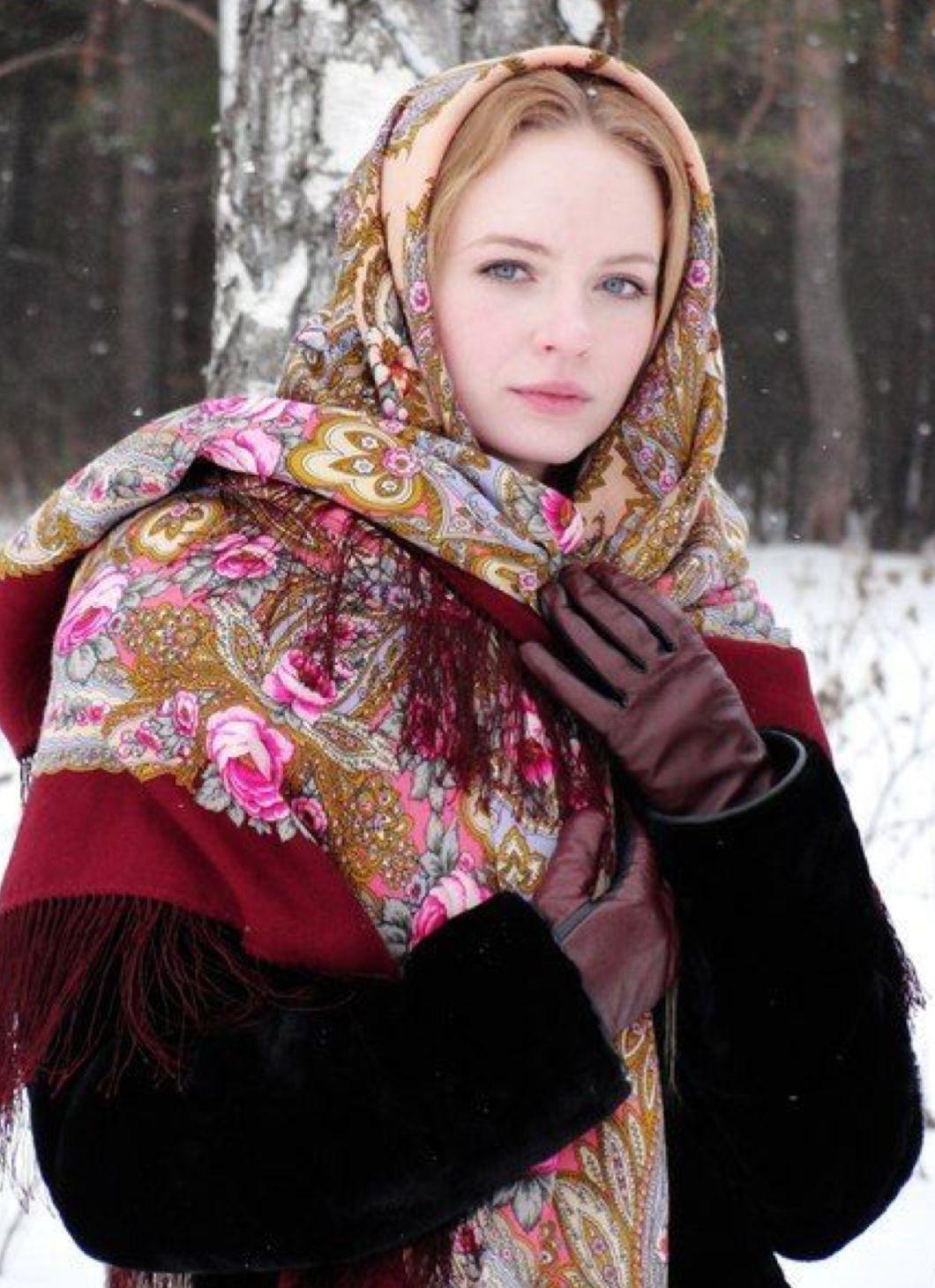 Девушки в платках зимой