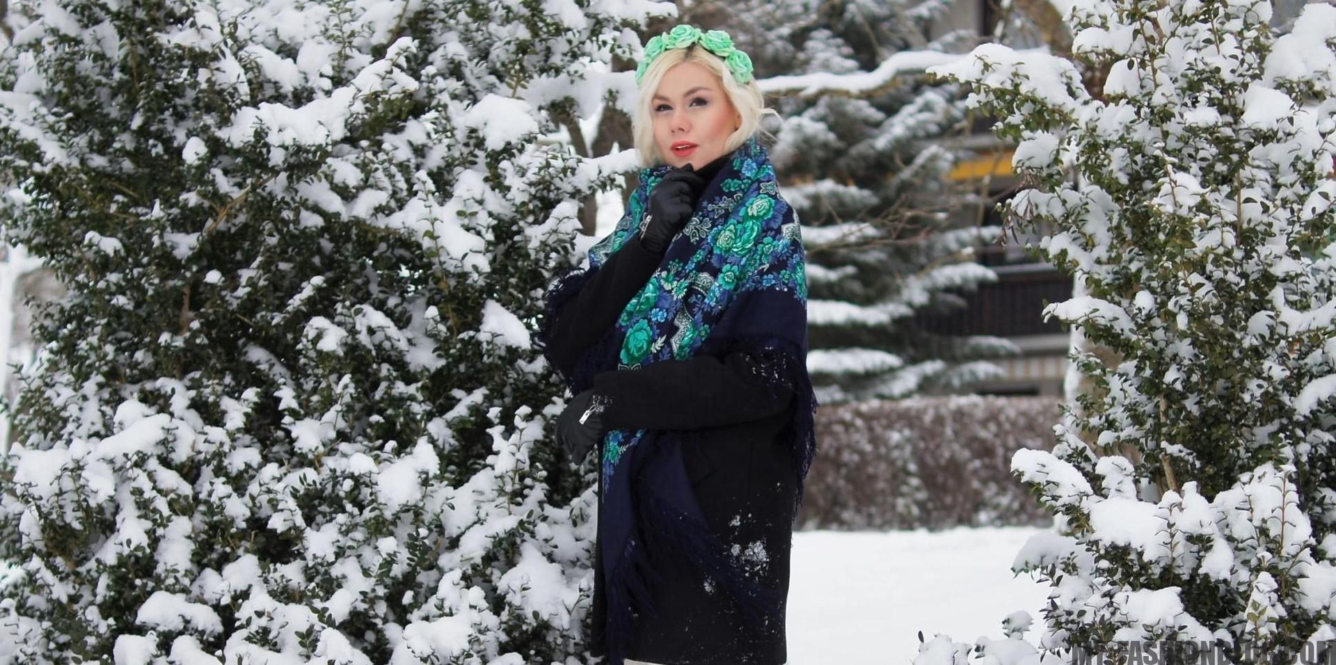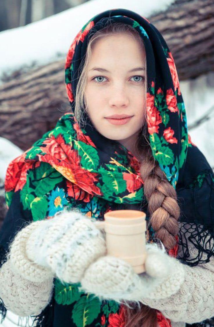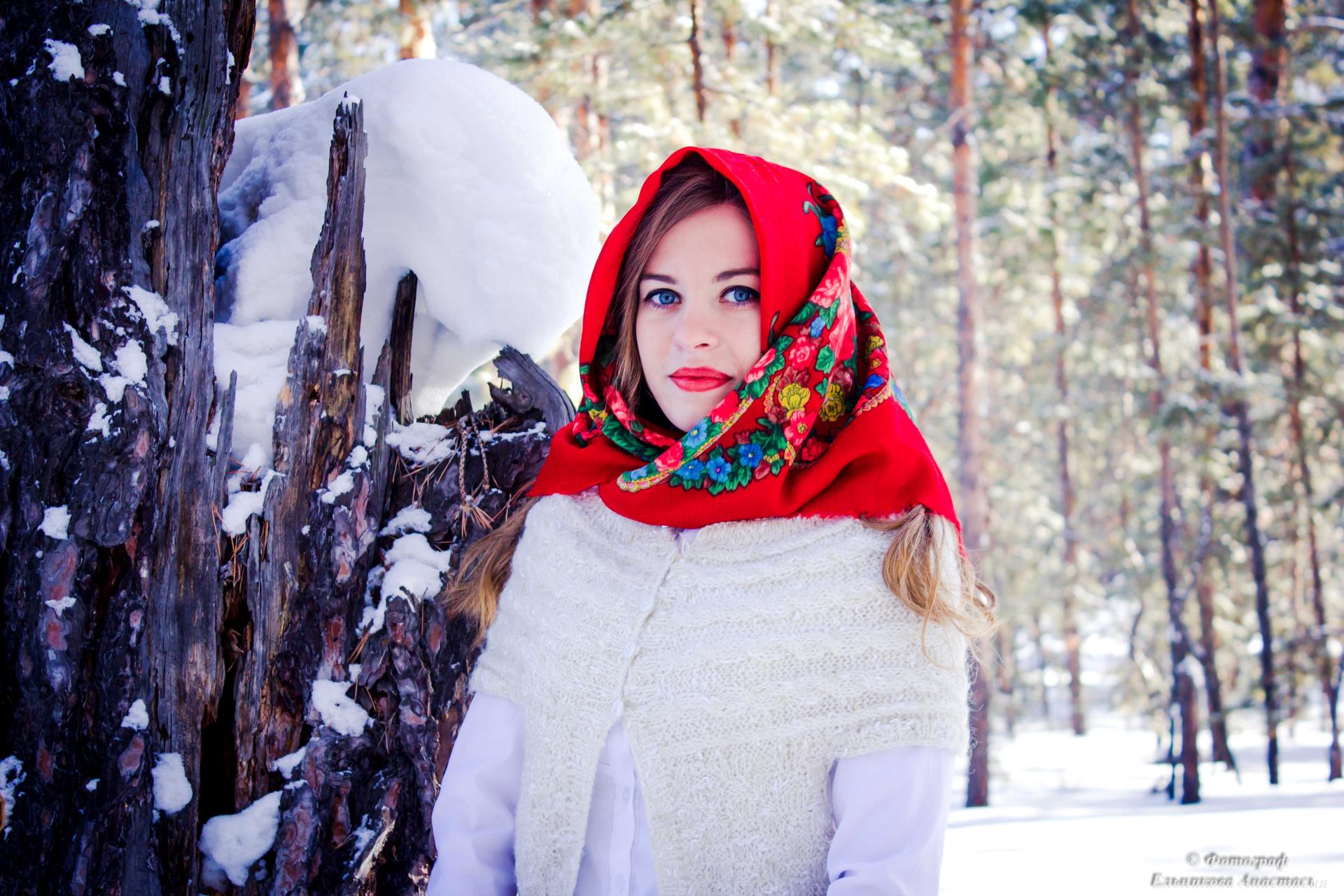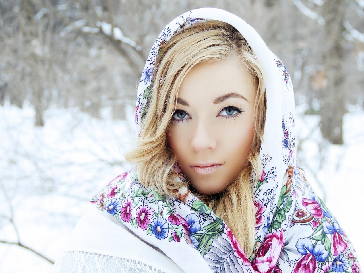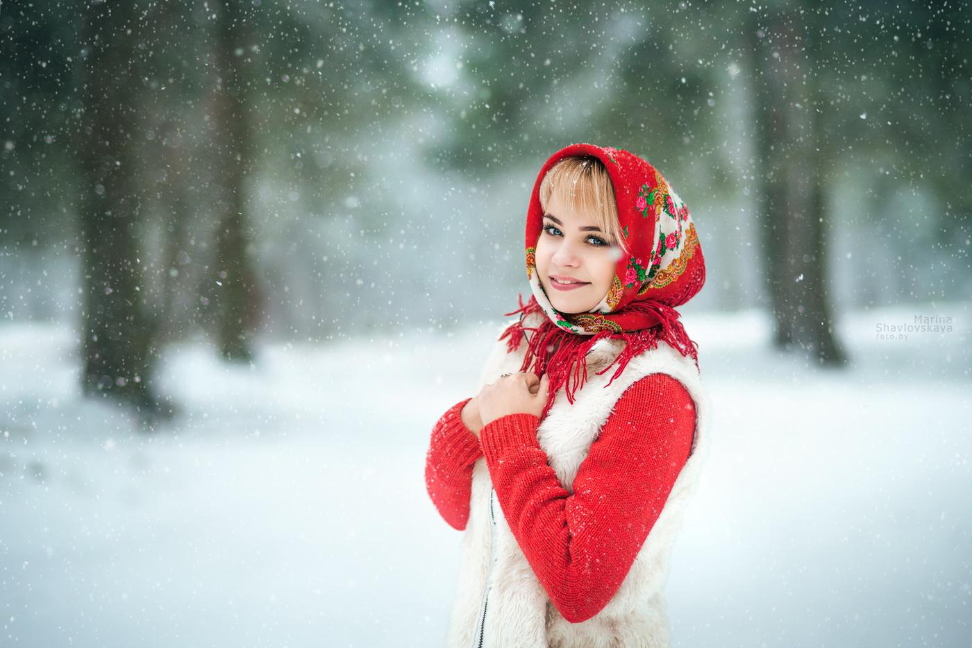Девушки в платках зимой