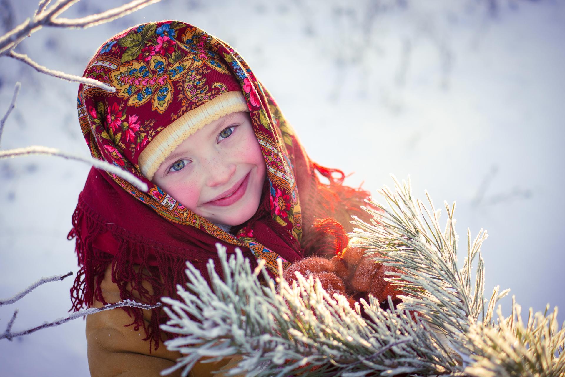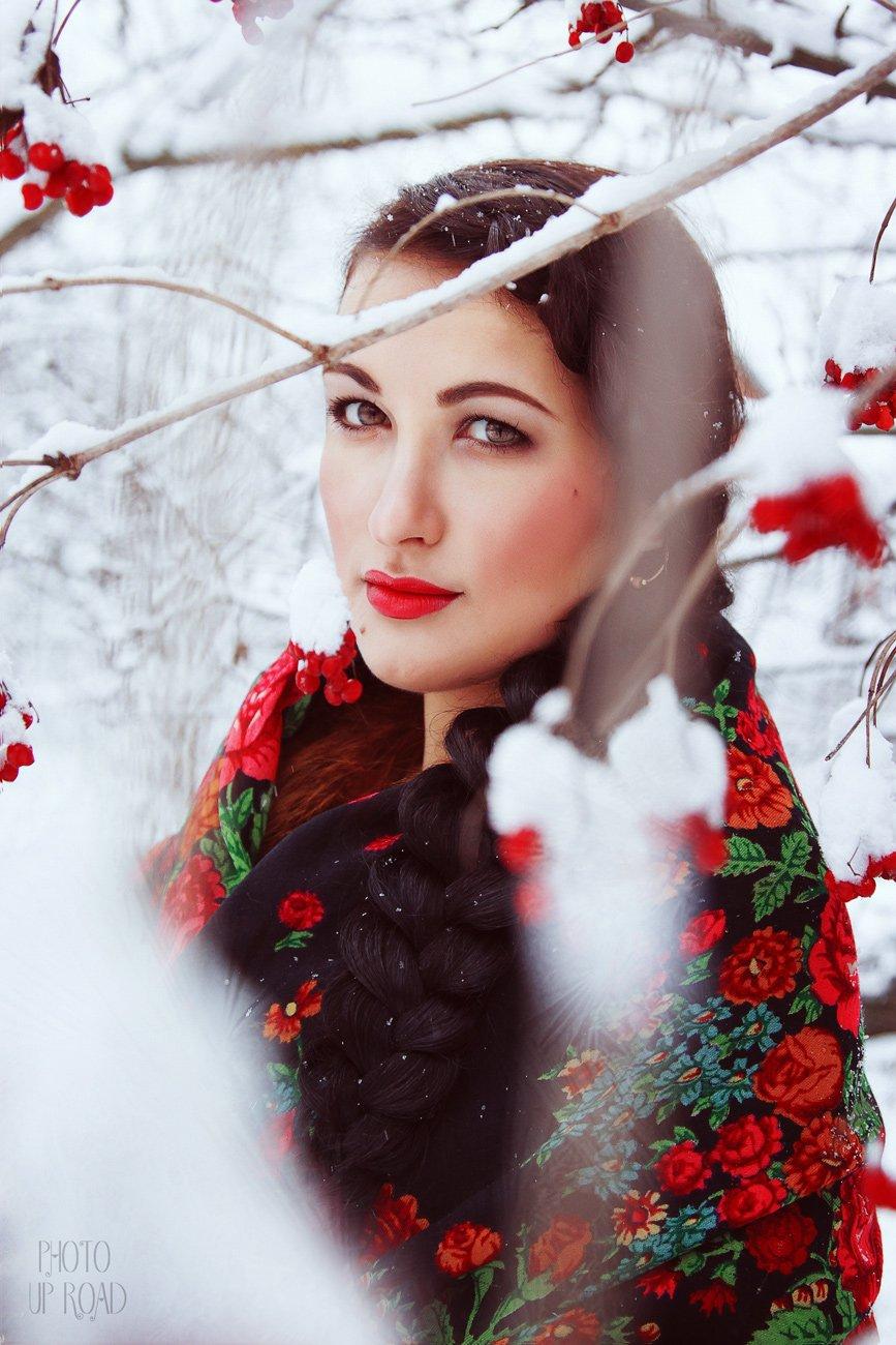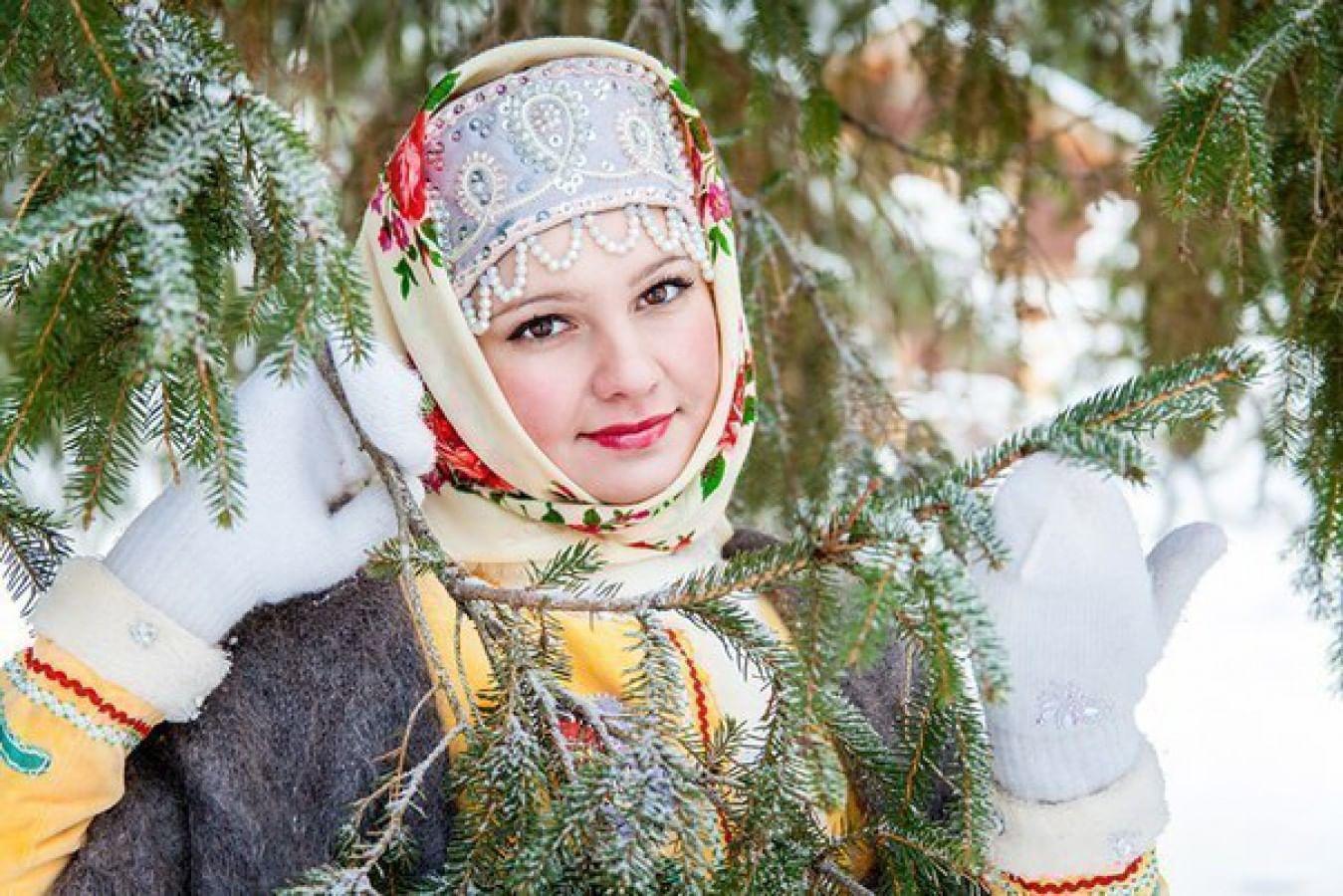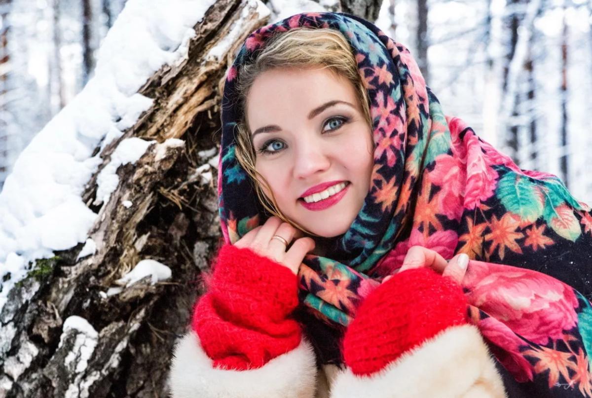 Девушки в платках зимой