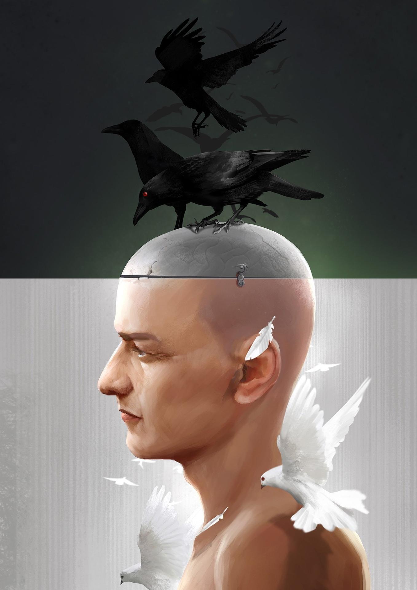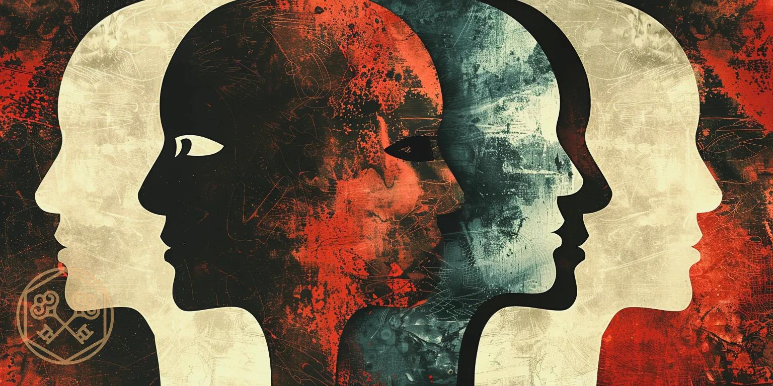 Коллекция иллюстраций раздвоения личности погружает нас в таинственный мир психологических тем, где одно тело вмещает несколько личностей. Художники создали мощные визуальные метафоры внутреннего конфликта и множественной идентичности. Вы увидите разнообразные интерпретации: от буквального разделения фигуры на части до более абстрактных композиций с переплетающимися образами. Арты демонстрируют разные аспекты этого феномена - борьбу за контроль, мирное сосуществование или хаотичное смешение личностей. Некоторые иллюстрации используют зеркала и отражения для символического представления раздвоения, другие показывают множественные лица или тела в одной композиции. Цветовые решения варьируются от контрастных черно-белых схем до сложных палитр, отражающих эмоциональную турбулентность. Каждый арт побуждает задуматься о сложности человеческой психики, границах личности и возможности существования нескольких Я в одном теле. Эти изображения исследуют темы идентичности и внутреннего мира человека.