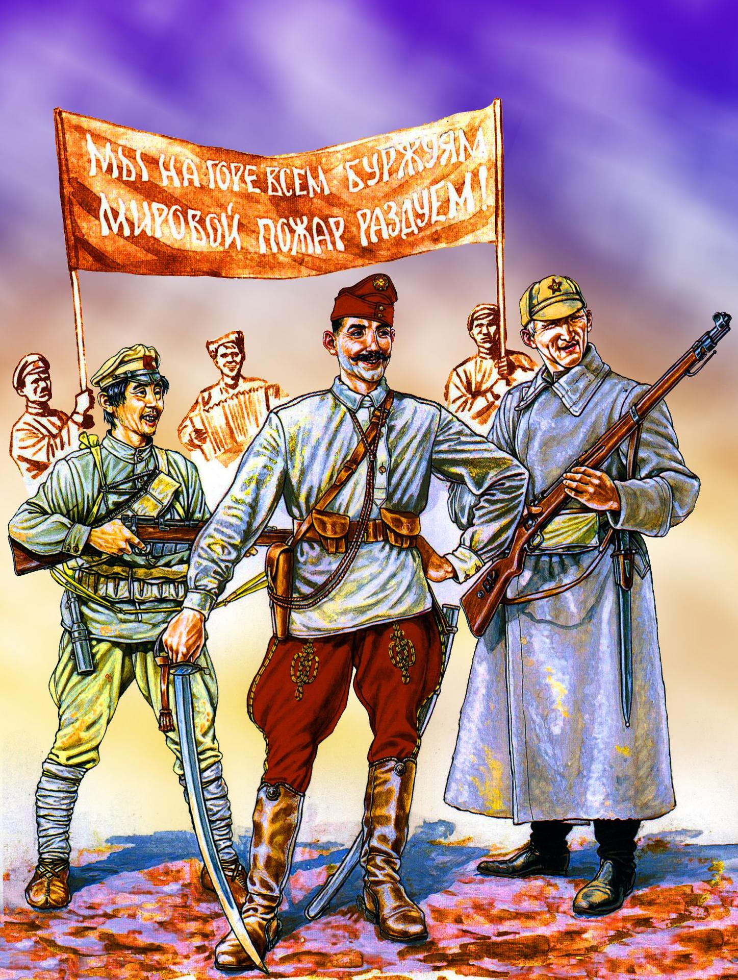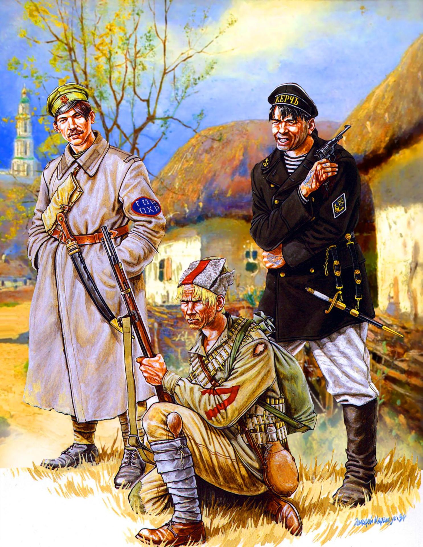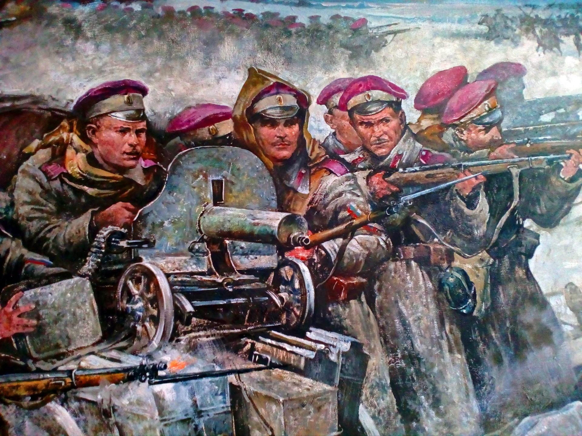 Коллекция иллюстраций Гражданской войны в России переносит нас в бурную эпоху 1917-1922 годов, полную драматизма и противоречий. Художники создали мощные образы, отражающие сложность того периода - от революционных энтузиастов до последних защитников старого мира. Арты демонстрируют различные стороны конфликта: городские бои, крестьянские восстания, казачьи отряды и интервенцию иностранных сил. Вы увидите портреты исторических фигур - красных командиров, белых офицеров и простых солдат с обеих сторон. Некоторые иллюстрации фокусируются на батальных сценах с динамикой и хаосом войны, другие показывают более интимные моменты - размышления солдат, семейные истории и последствия конфликта. Цветовые решения варьируются от мрачных серых тонов разрухи до ярких вспышек революционной символики. Каждый арт рассказывает о той эпохе, когда брат шел на брата, и о тех идеалах, за которые люди жертвовали жизнью. Эти изображения помогают понять сложность российской истории XX века.
