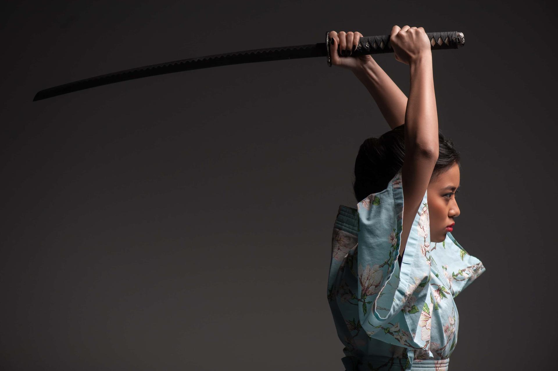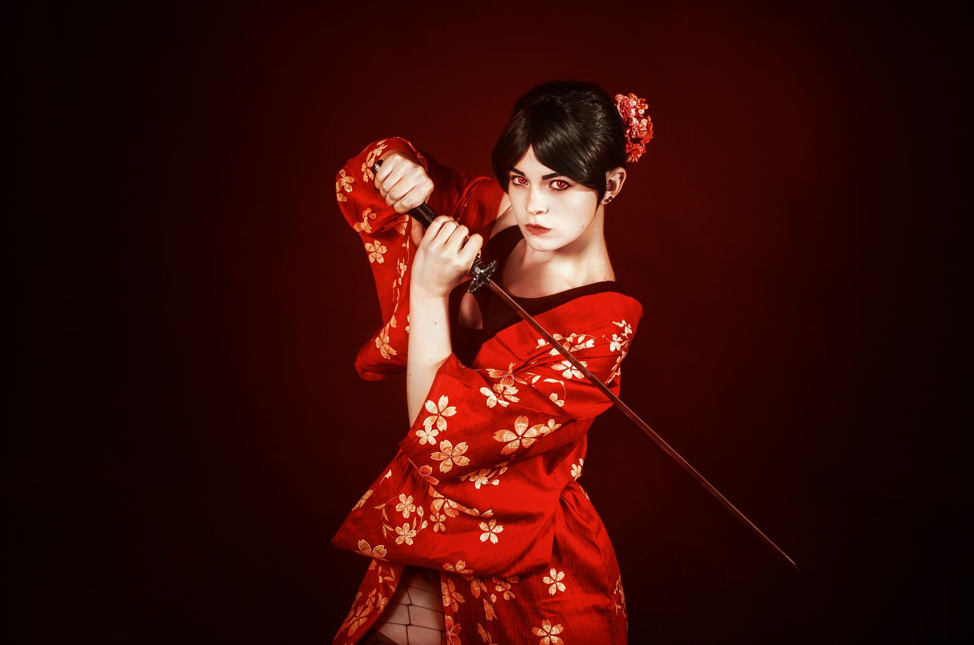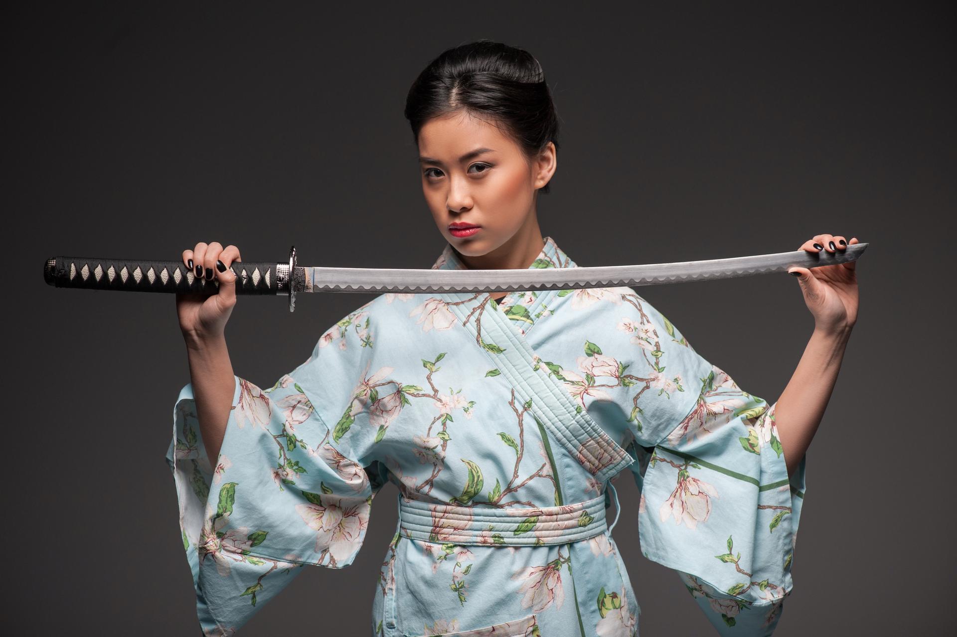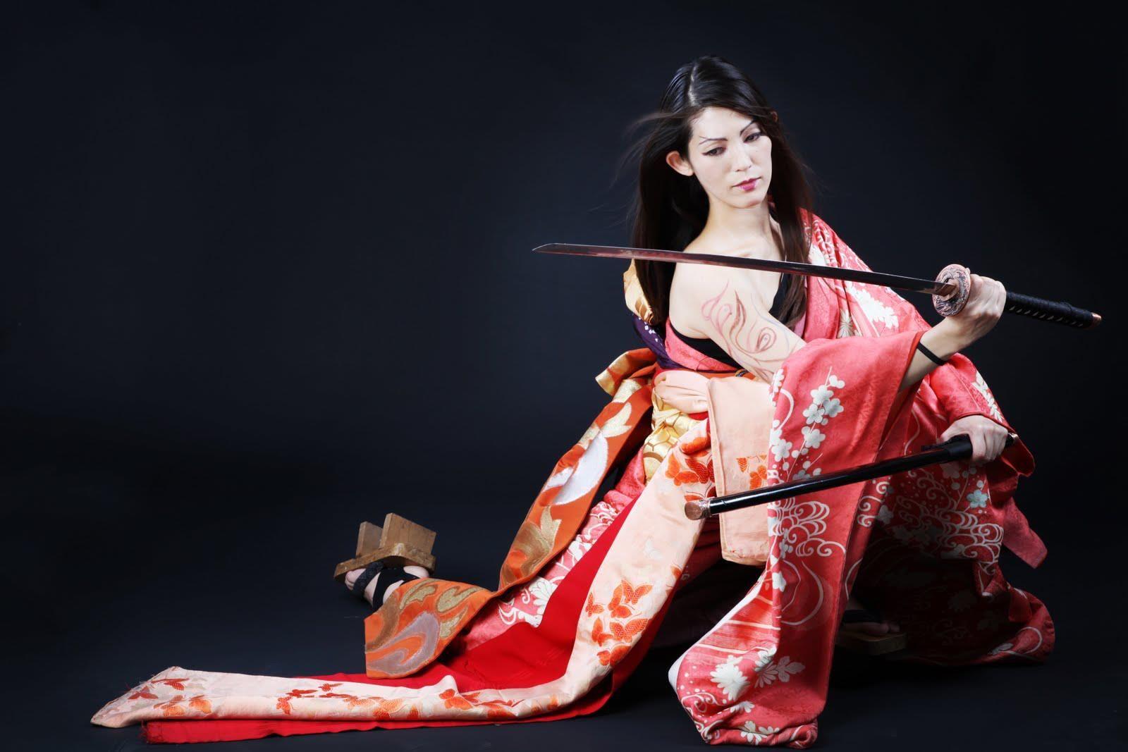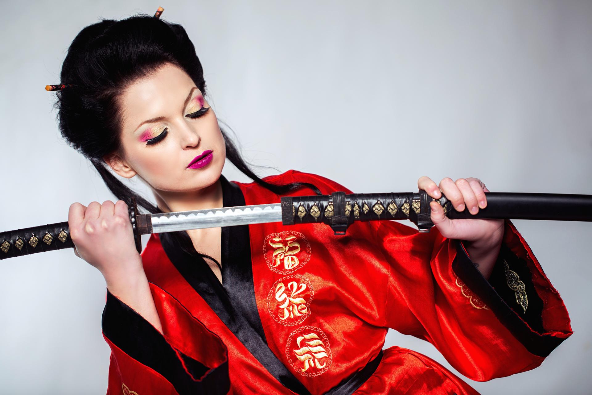 Девушки в кимоно с катанами