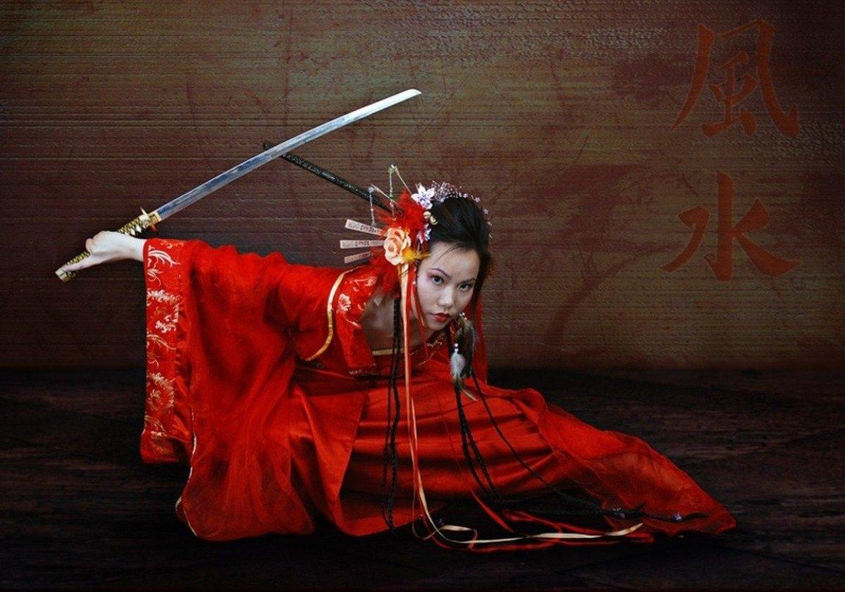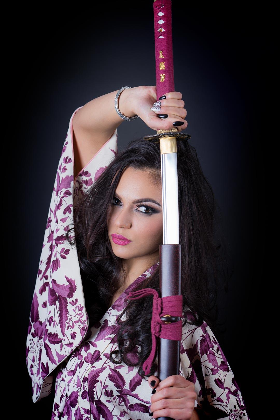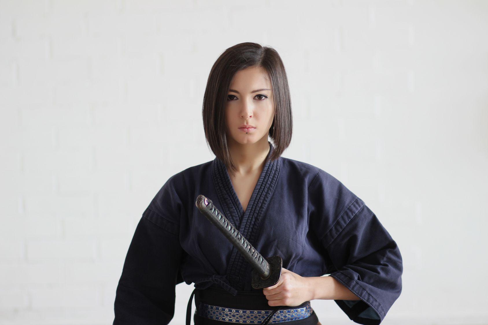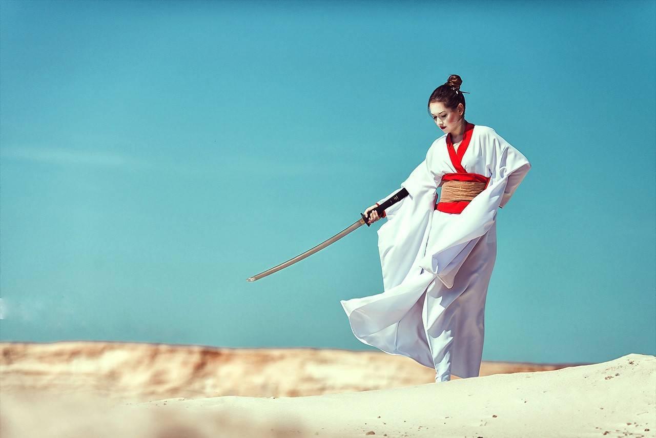 Девушки в кимоно с катанами