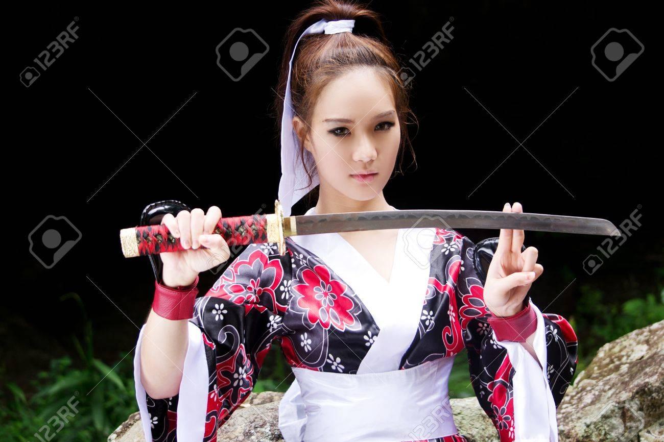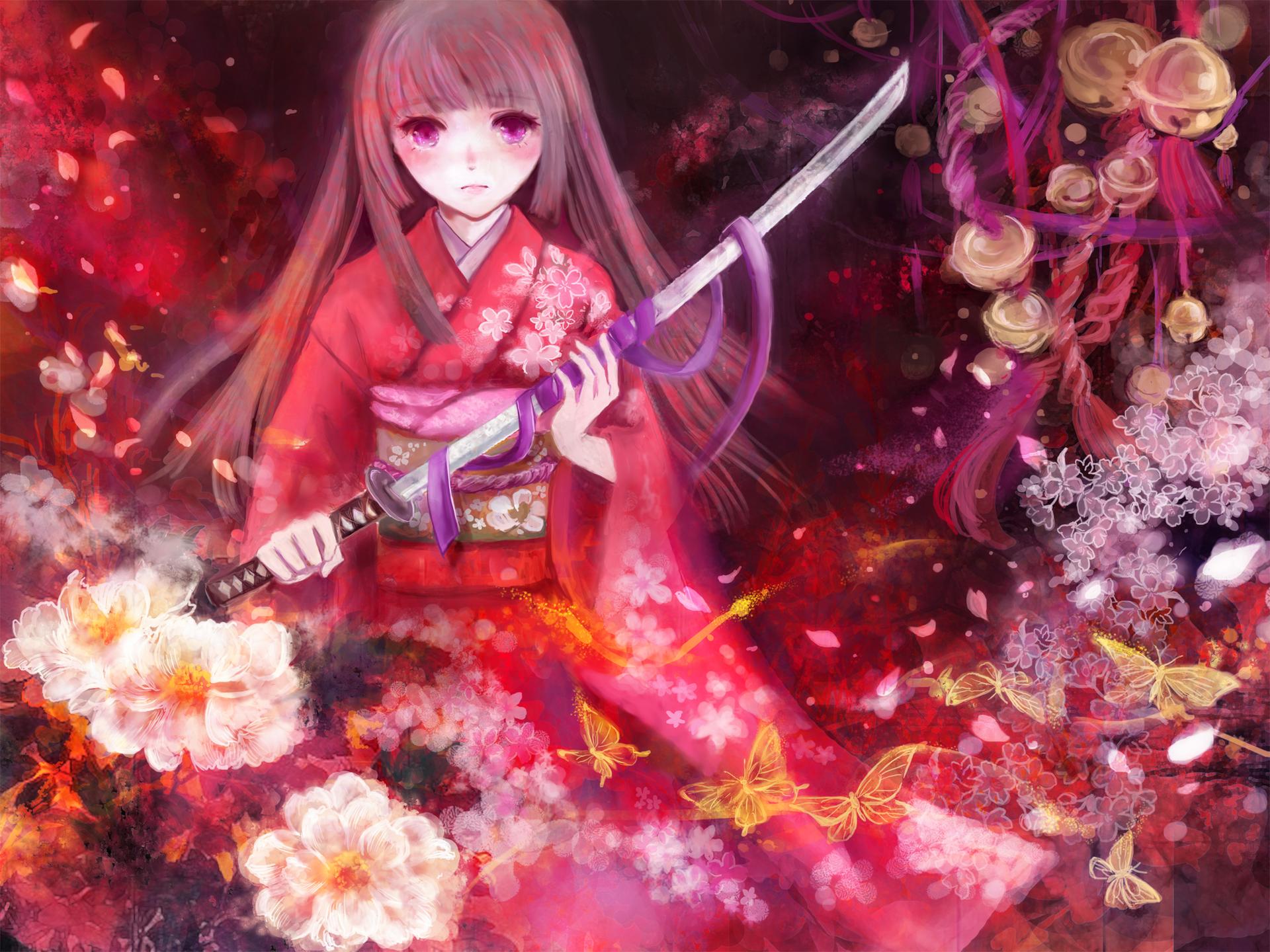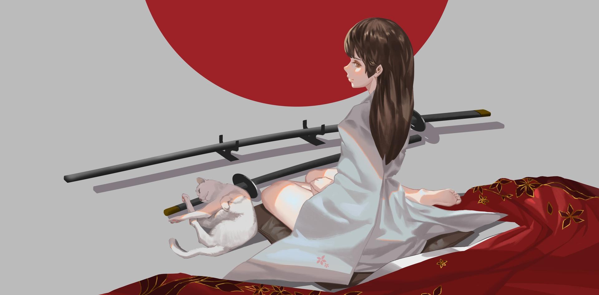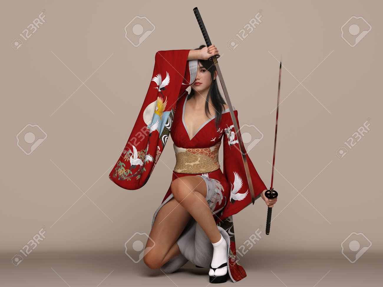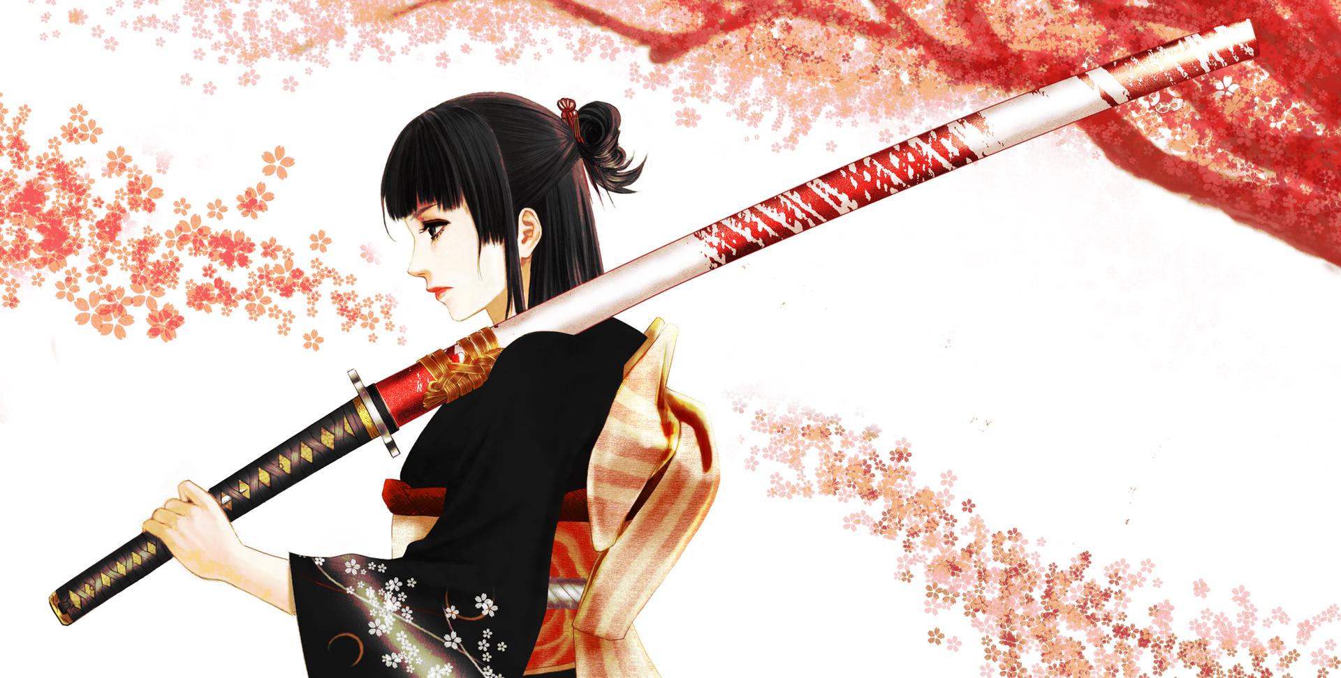 Девушки в кимоно с катанами