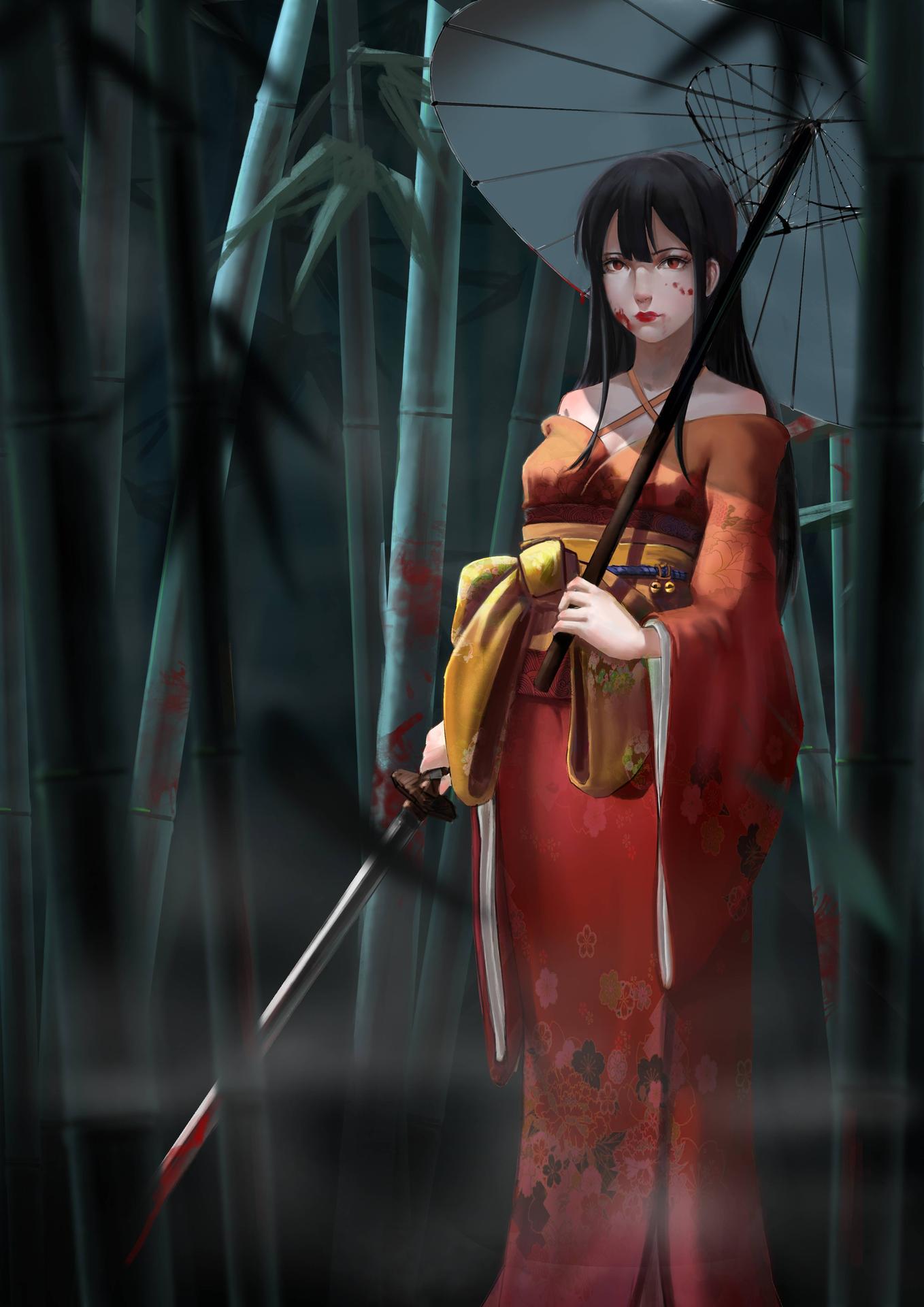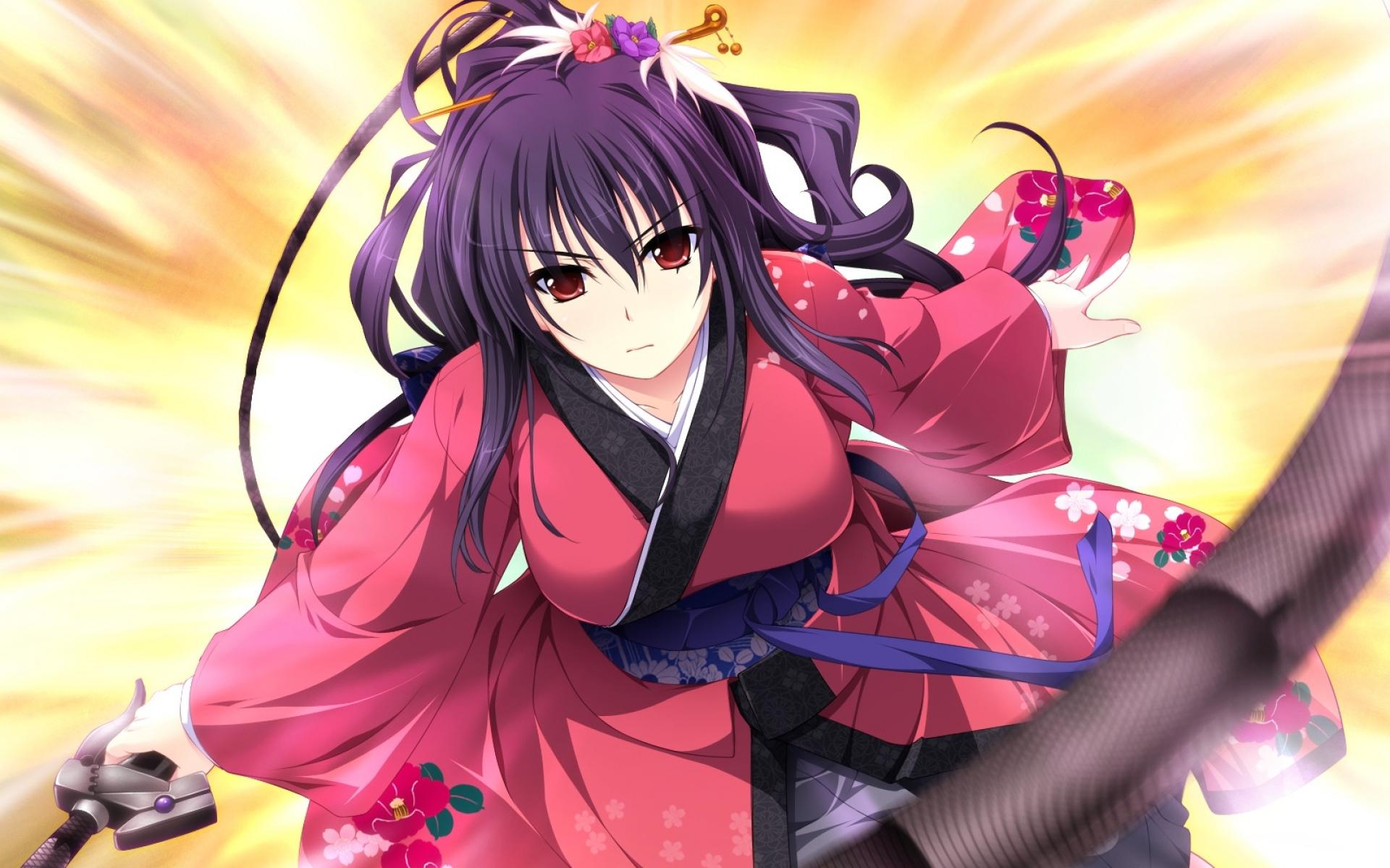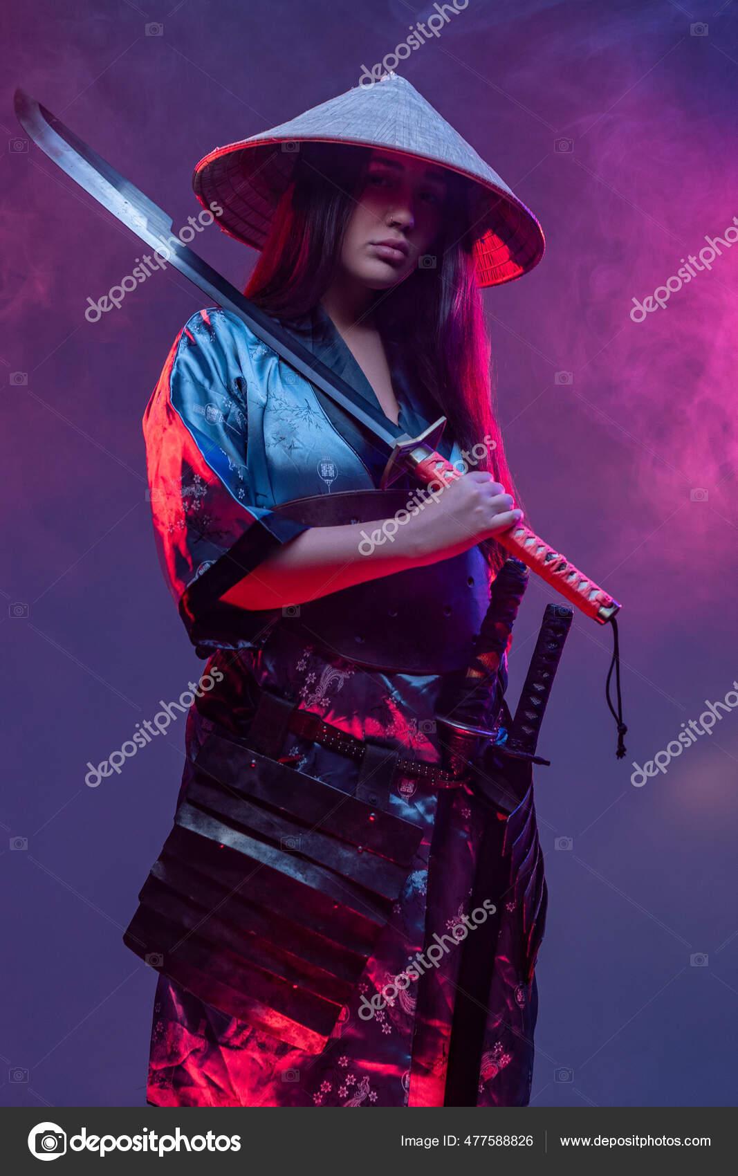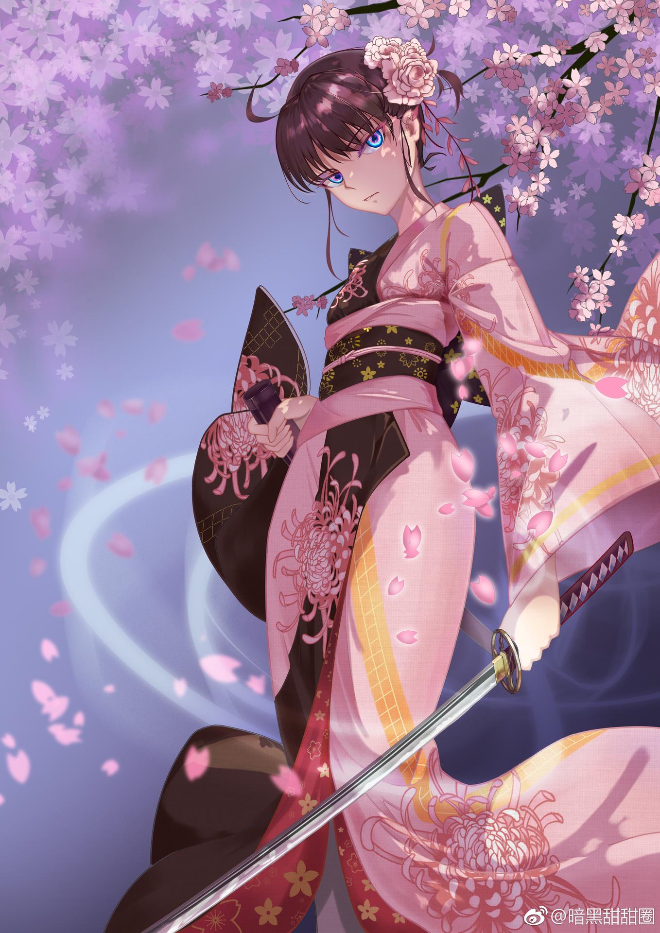 Девушки в кимоно с катанами