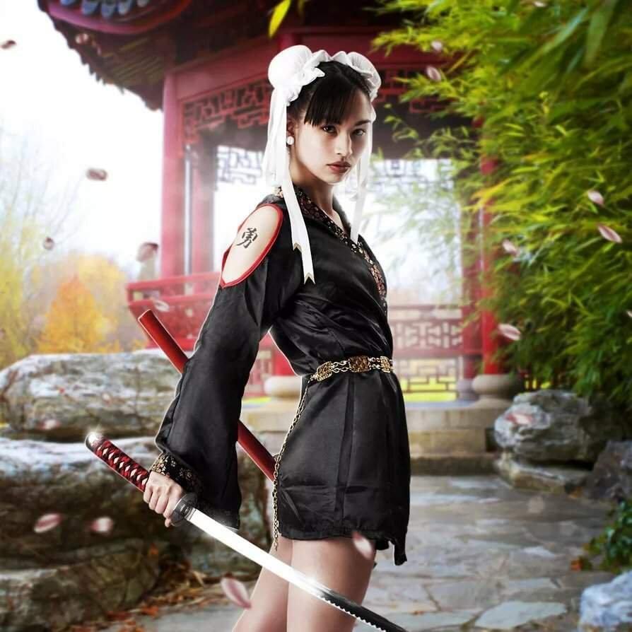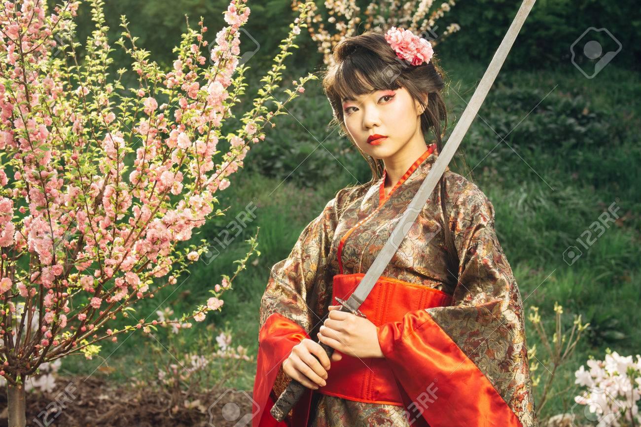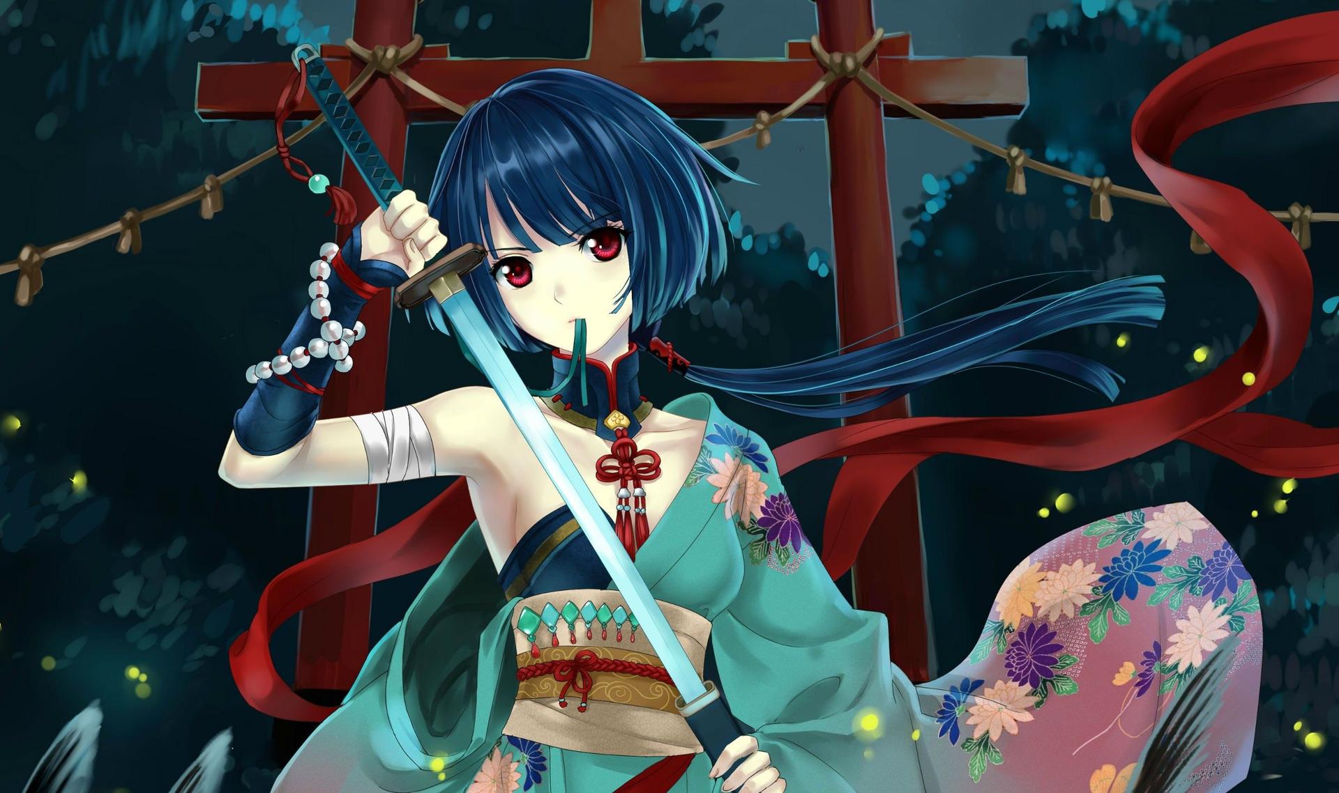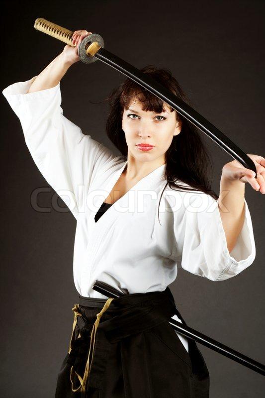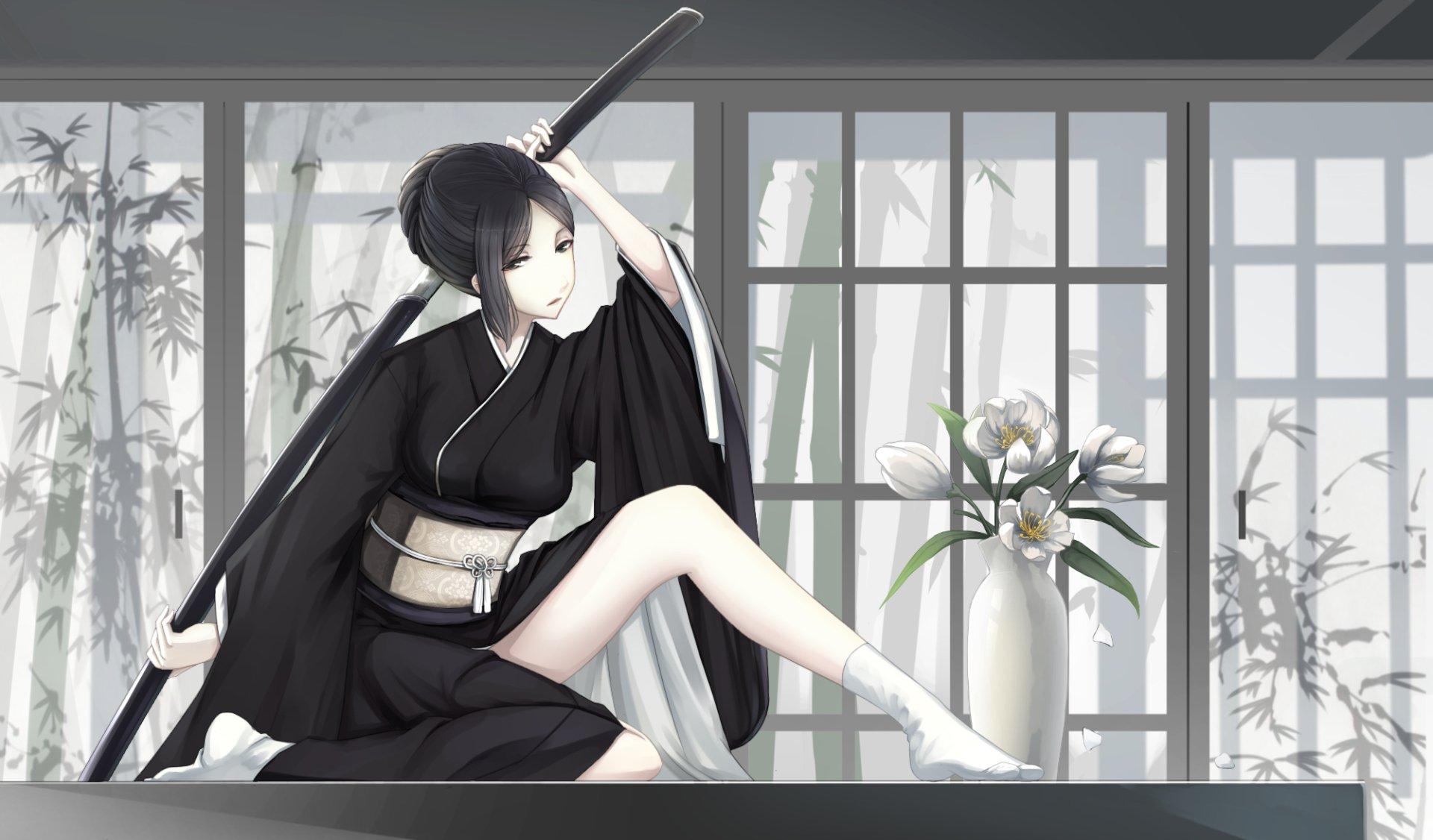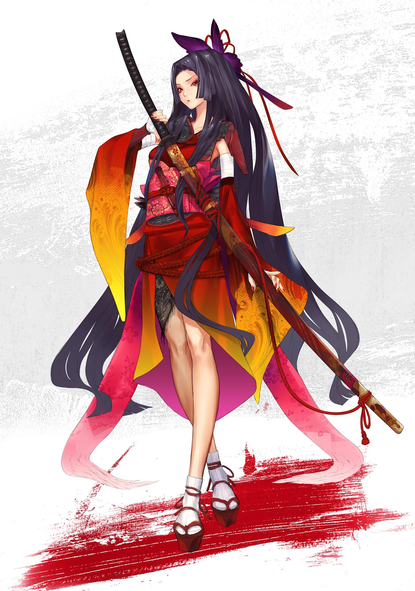 Девушки в кимоно с катанами