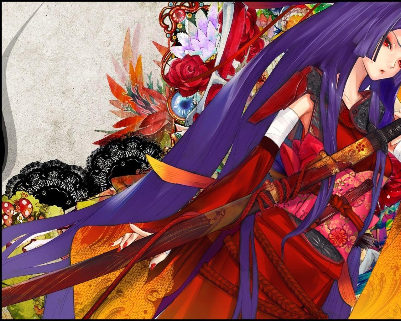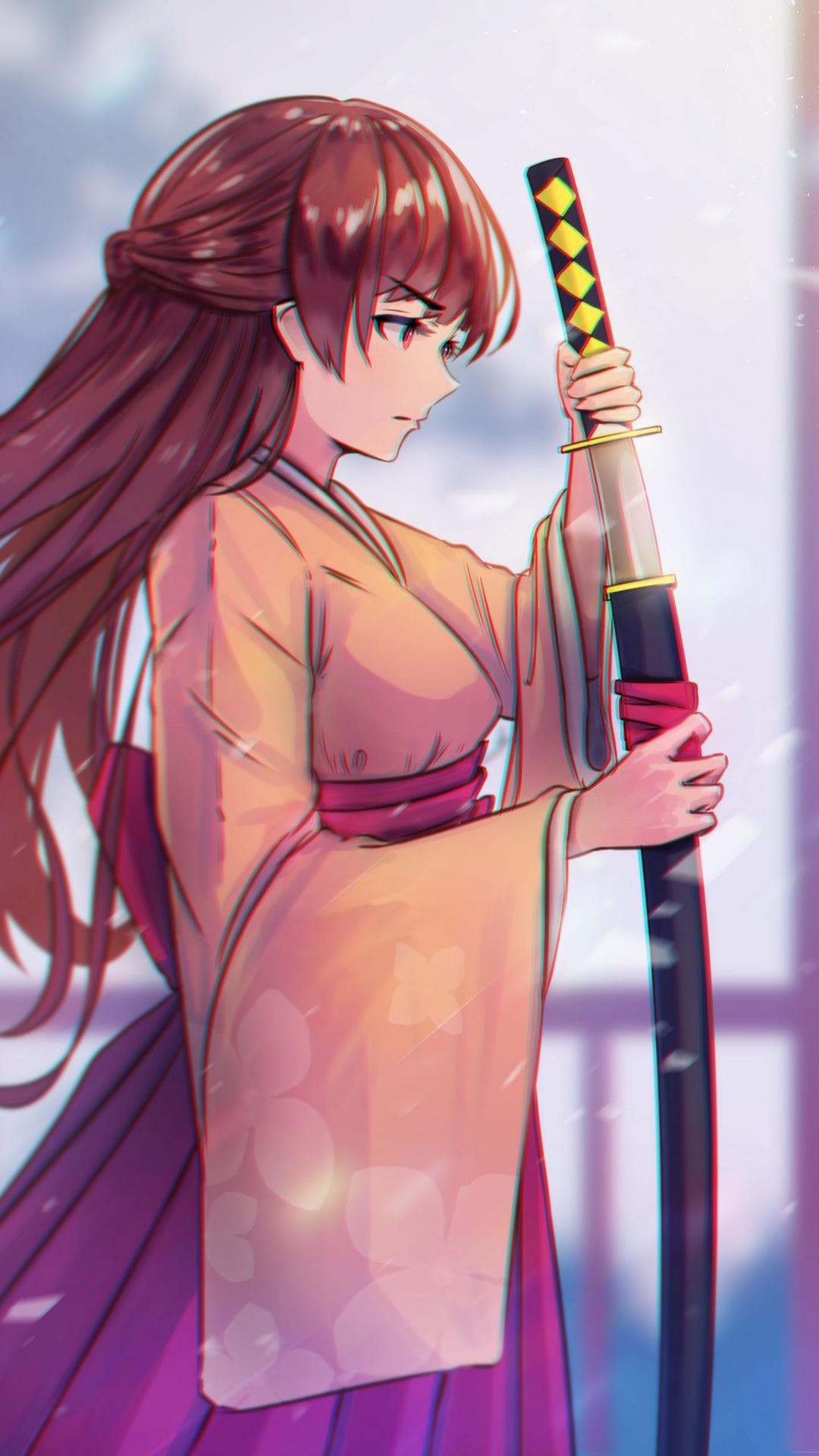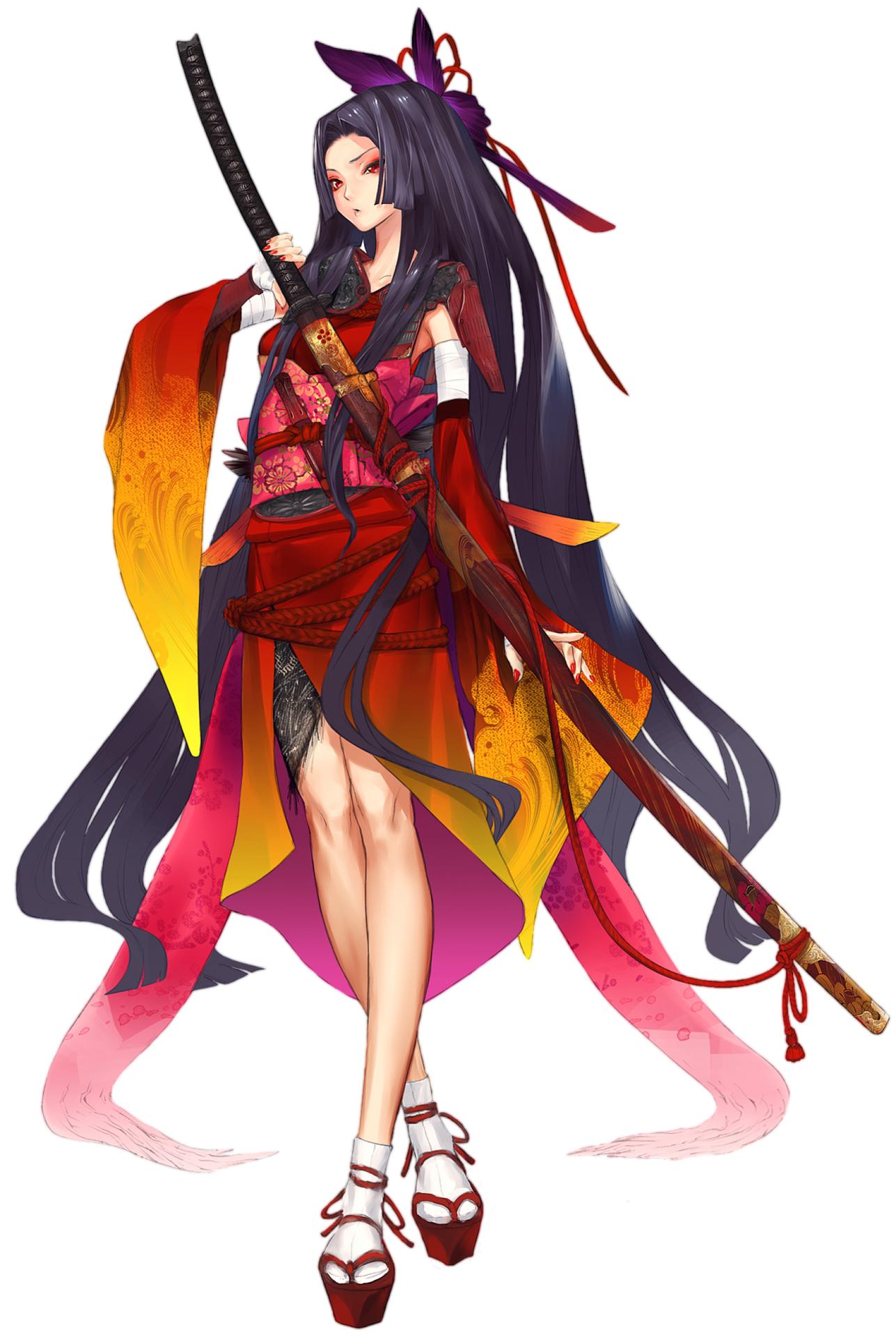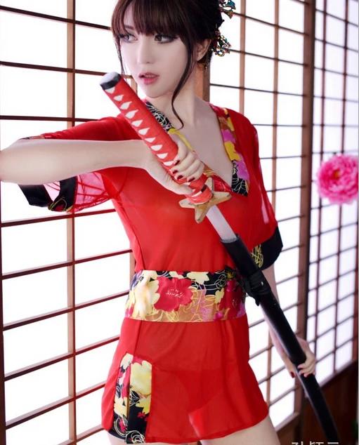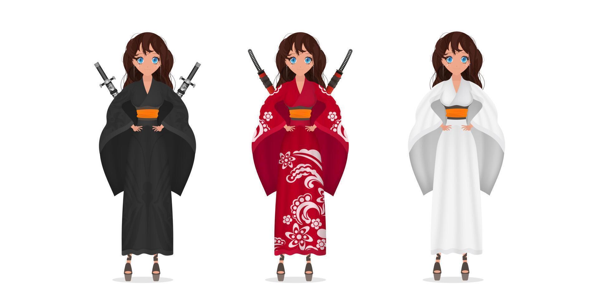 Девушки в кимоно с катанами