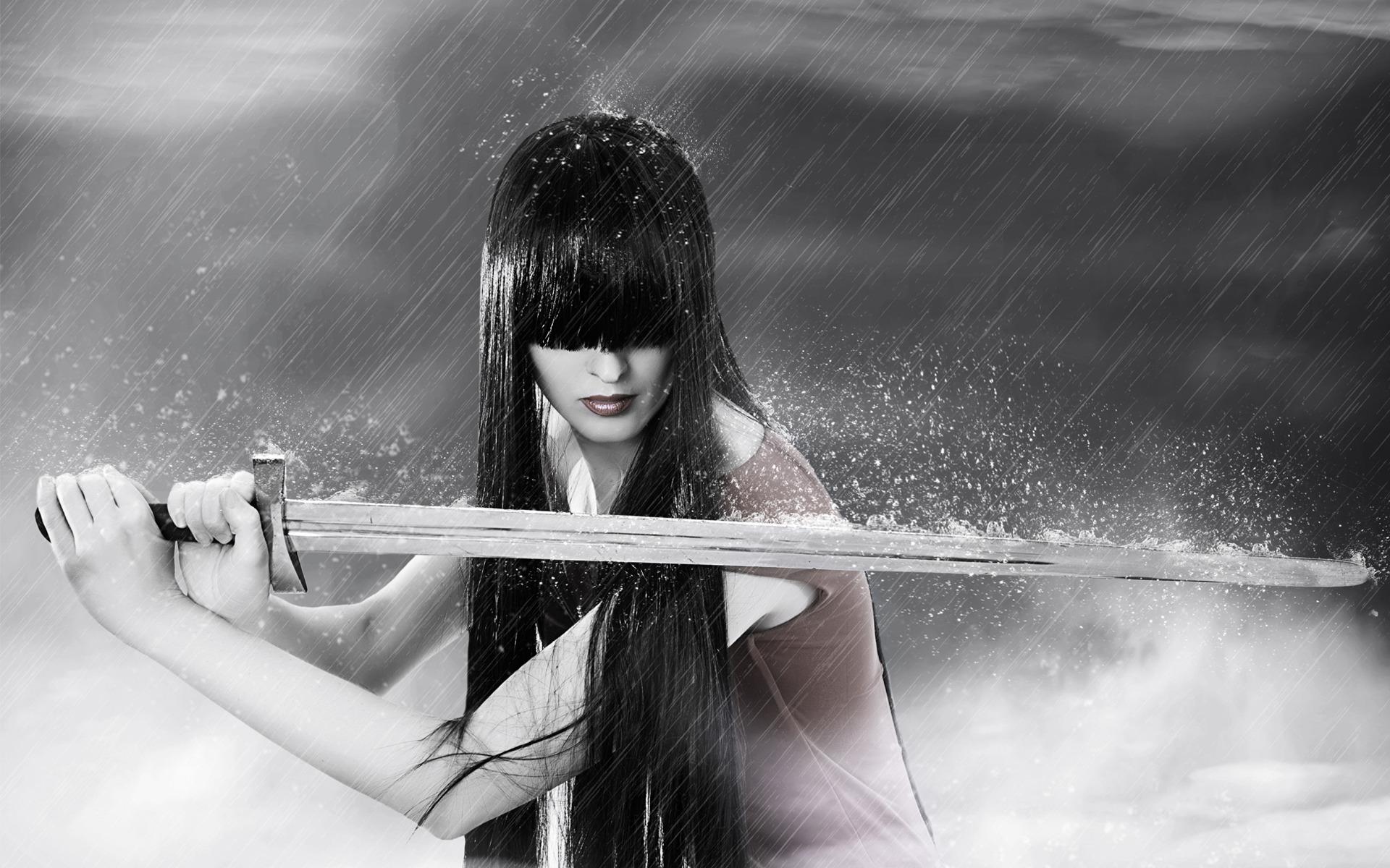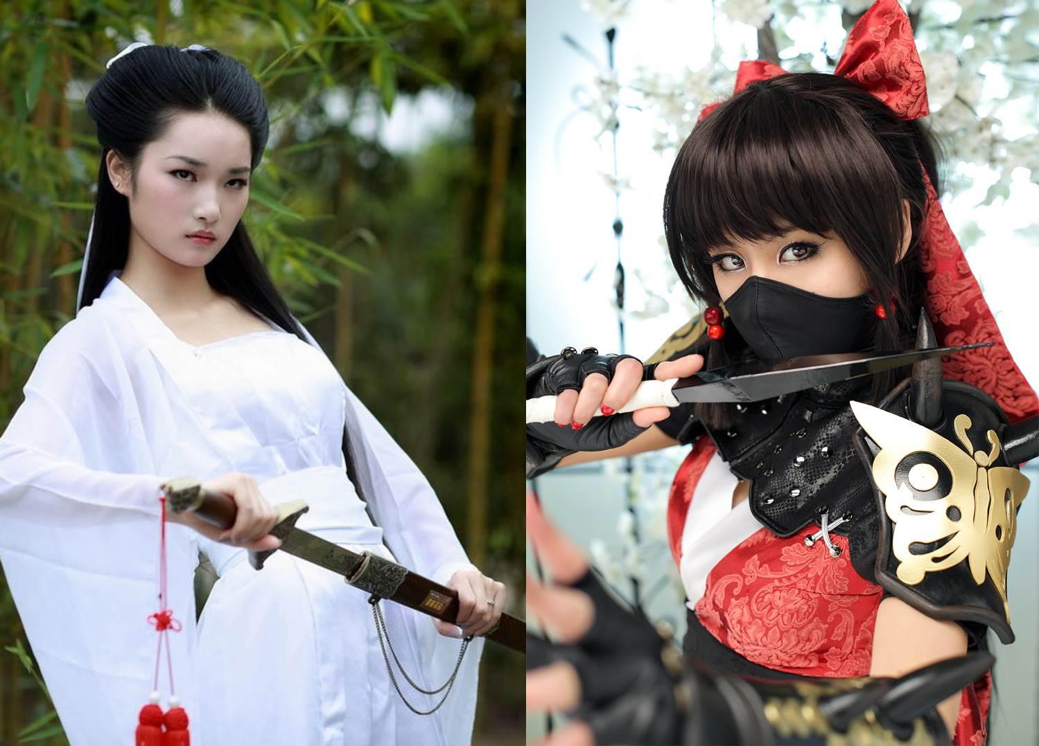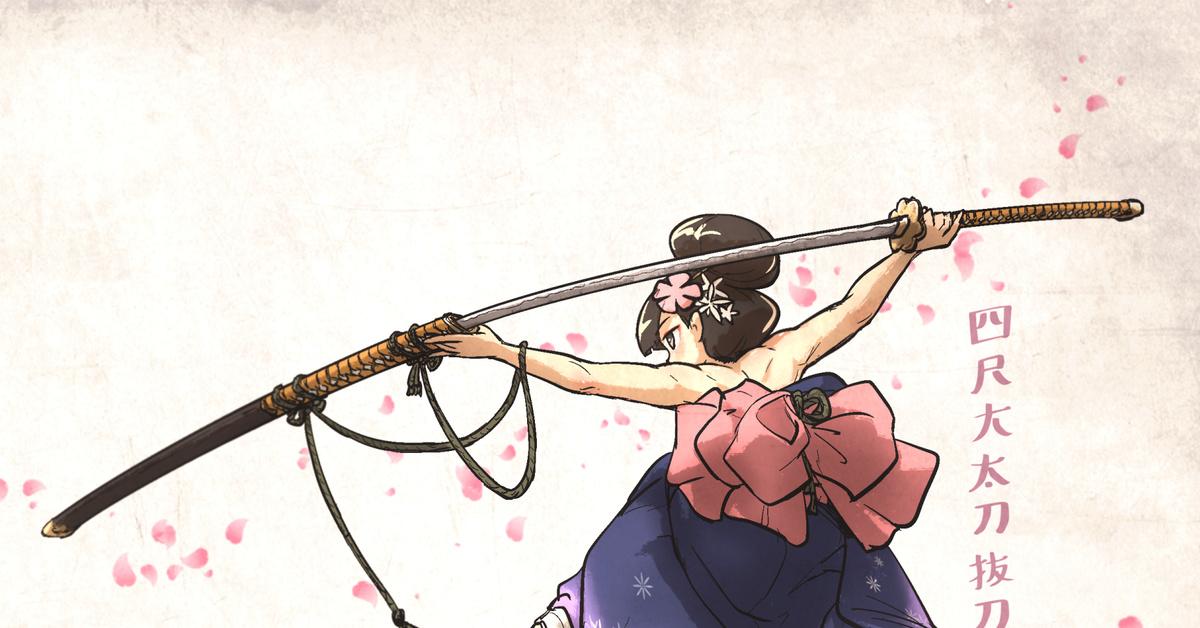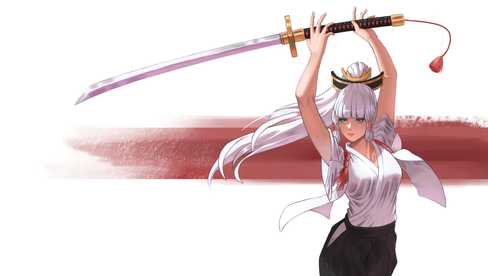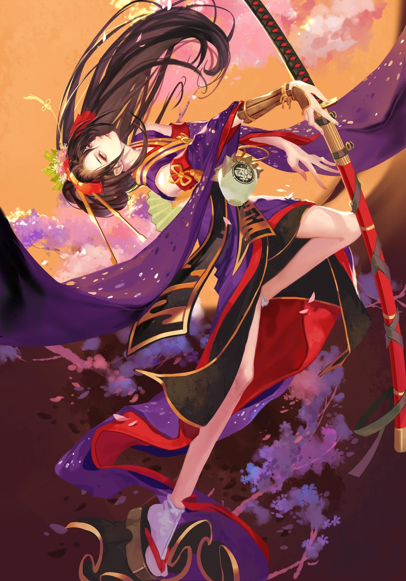Девушки в кимоно с катанами