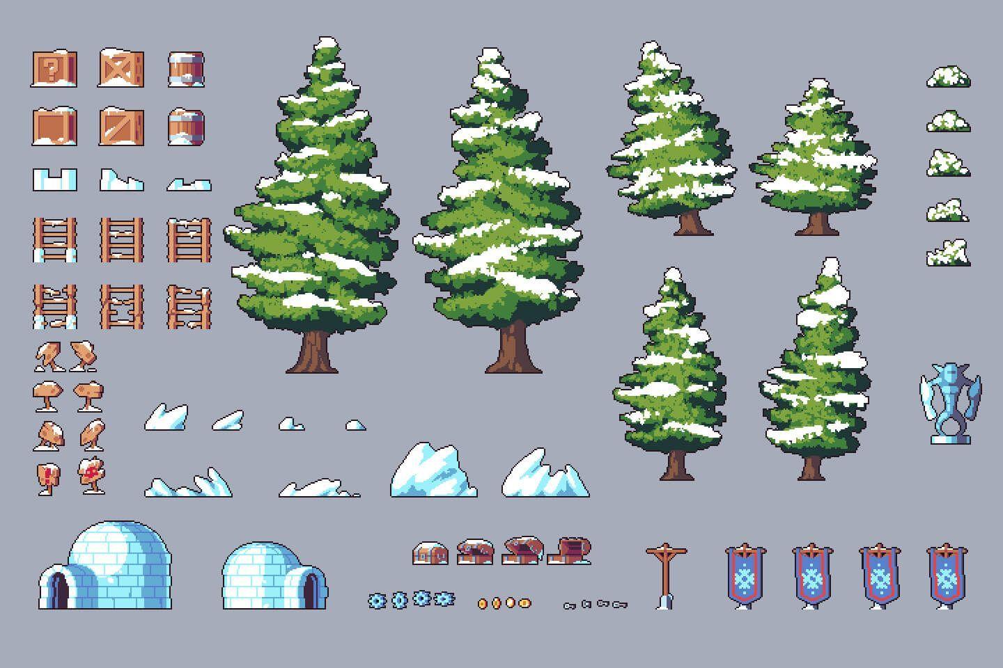 Пиксельные арты зимы