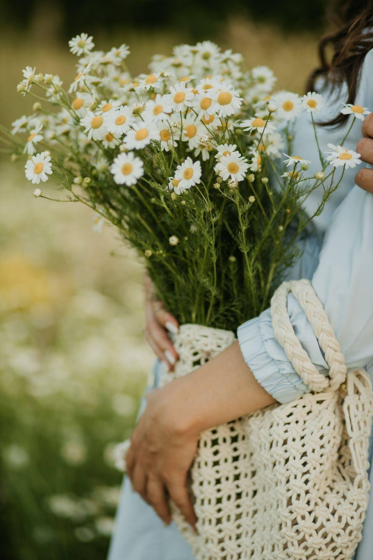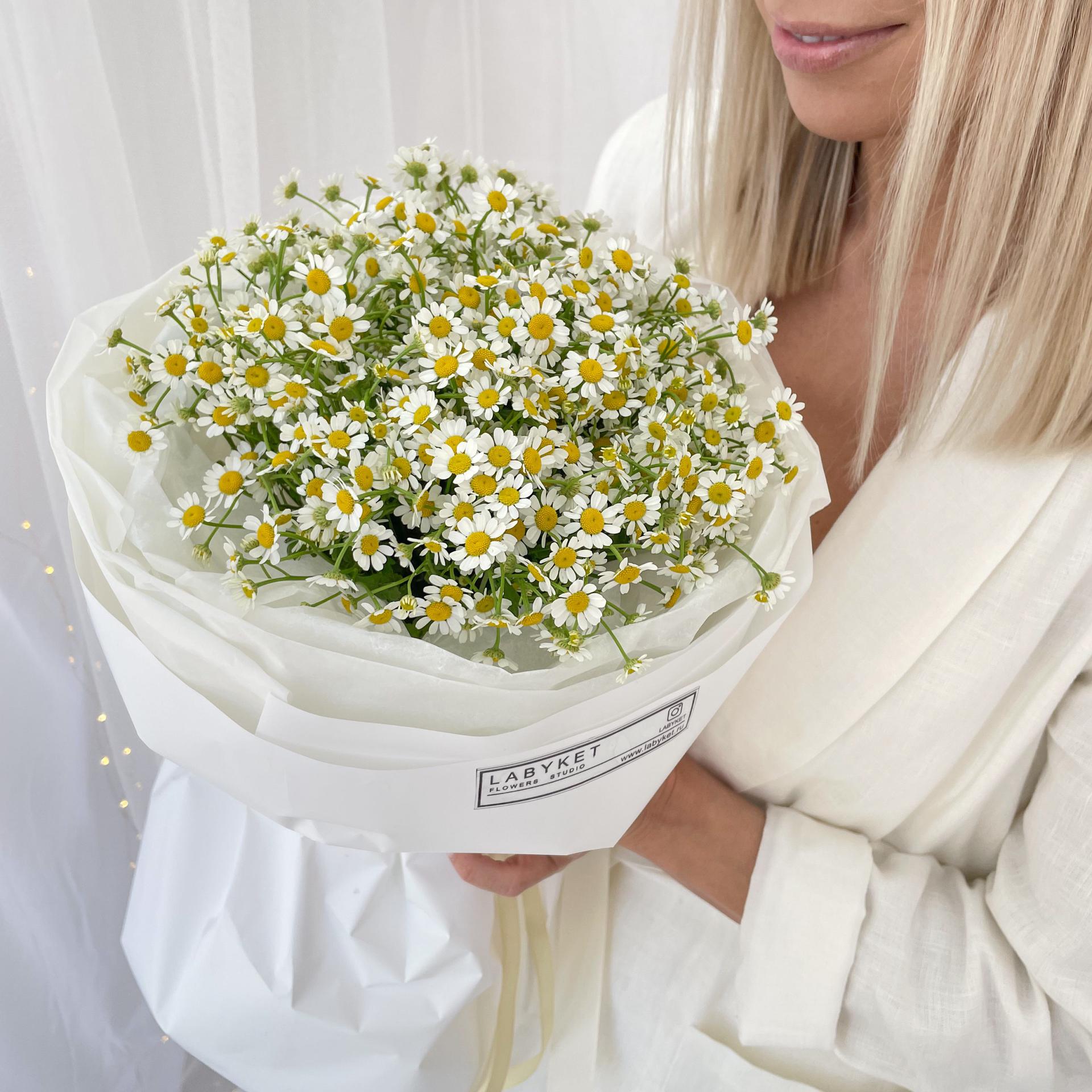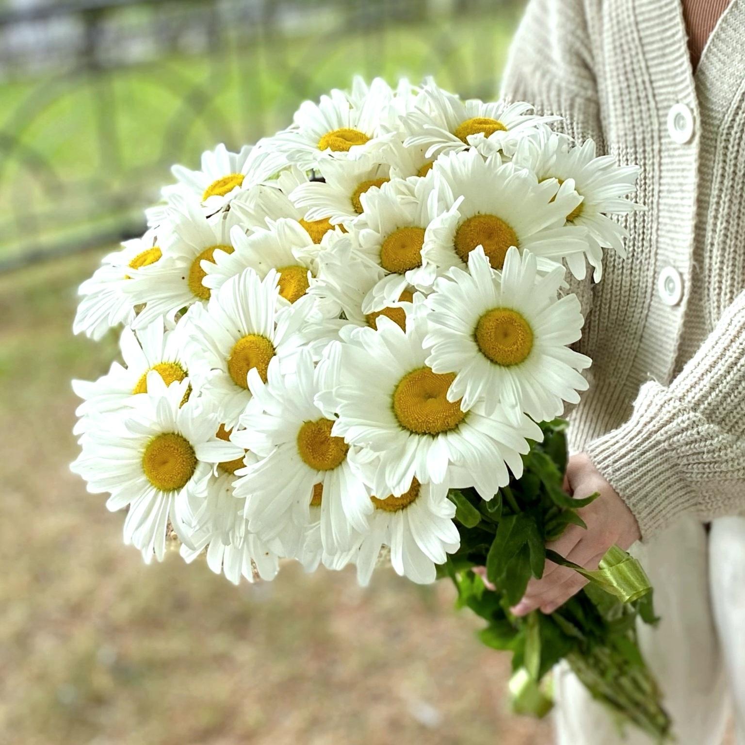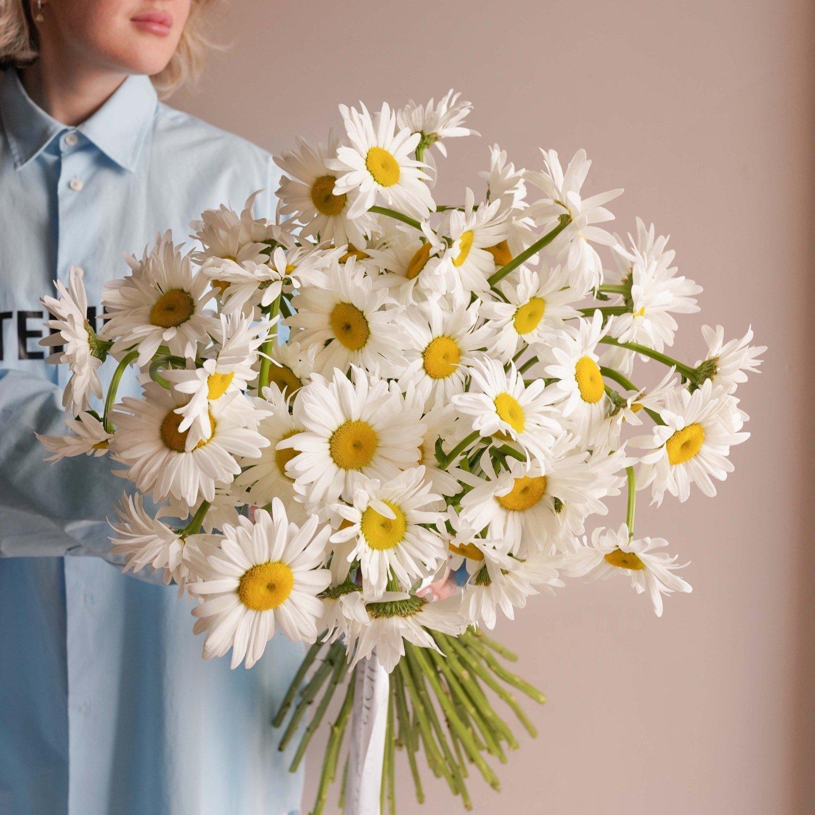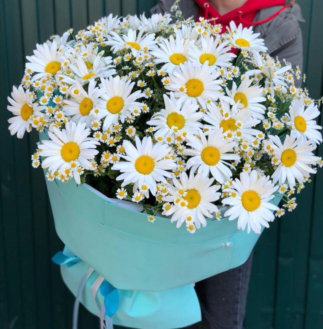 Женщины с букетами ромашек