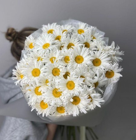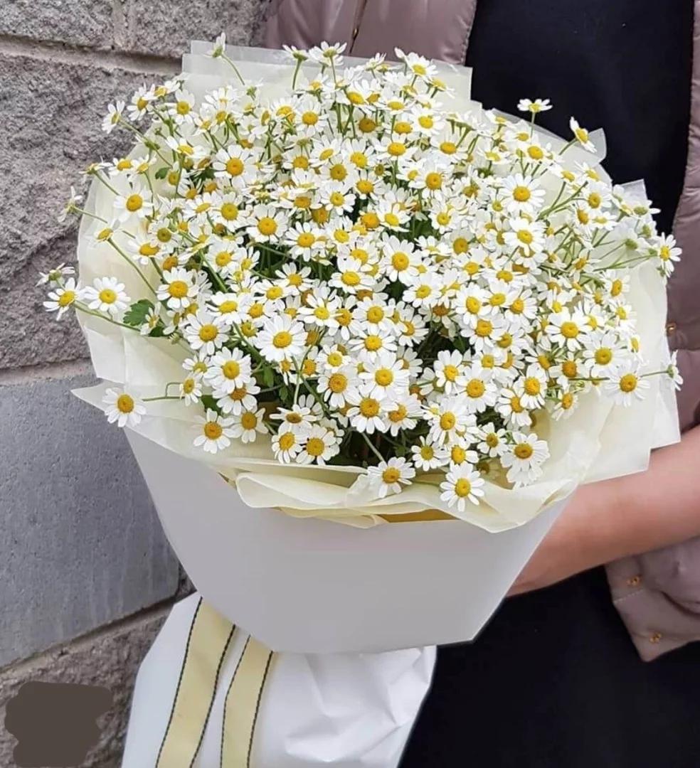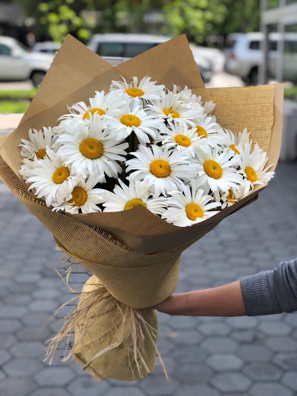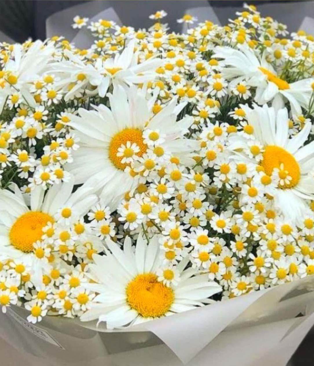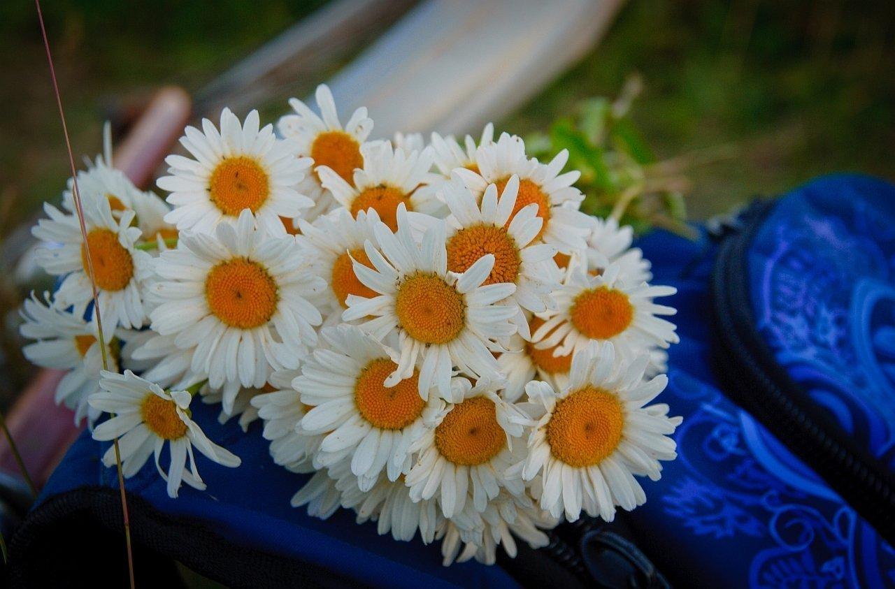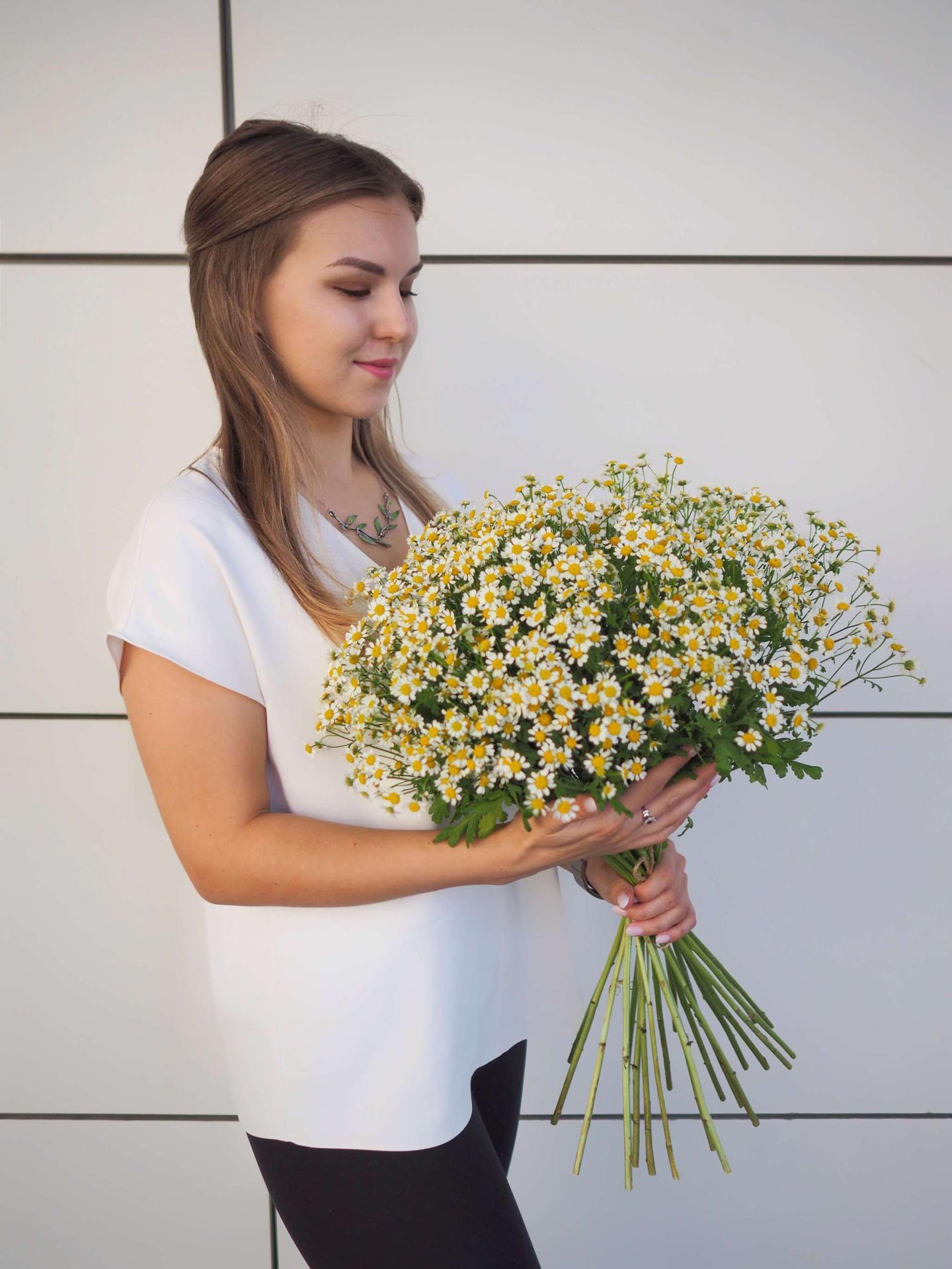 Женщины с букетами ромашек