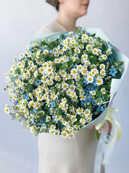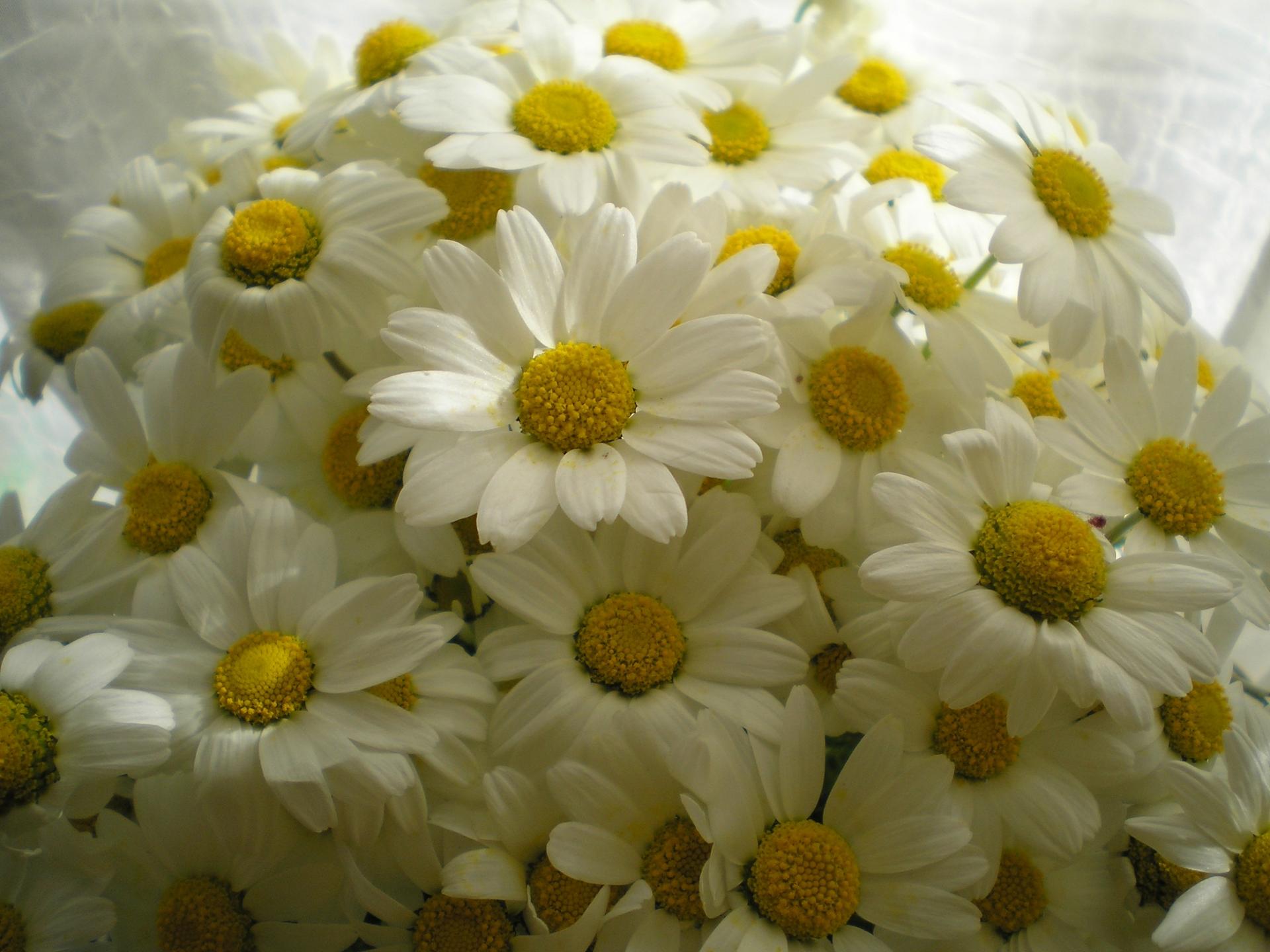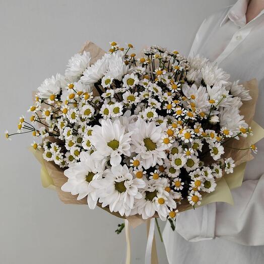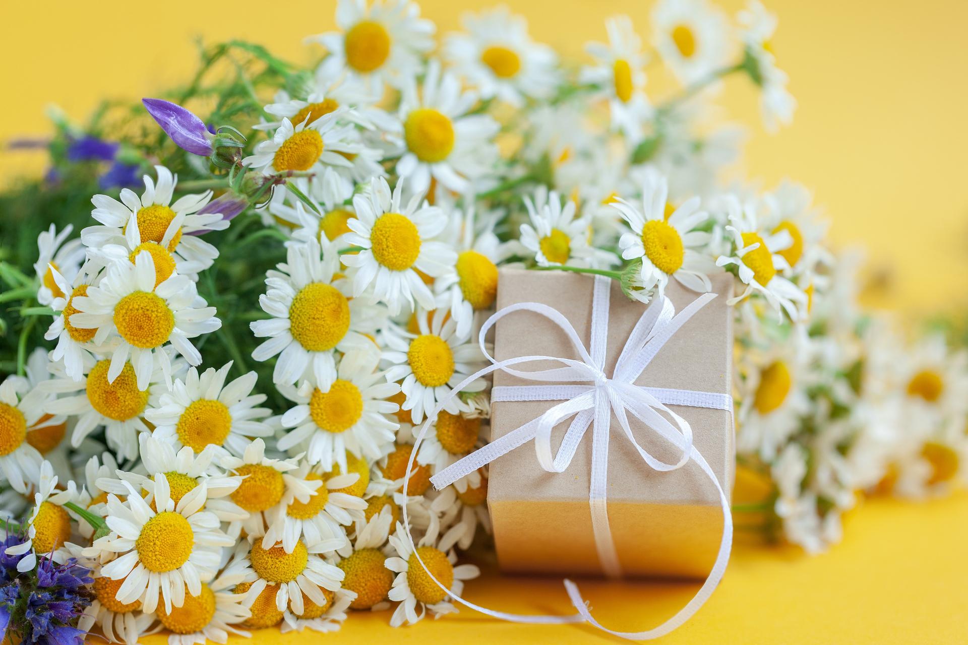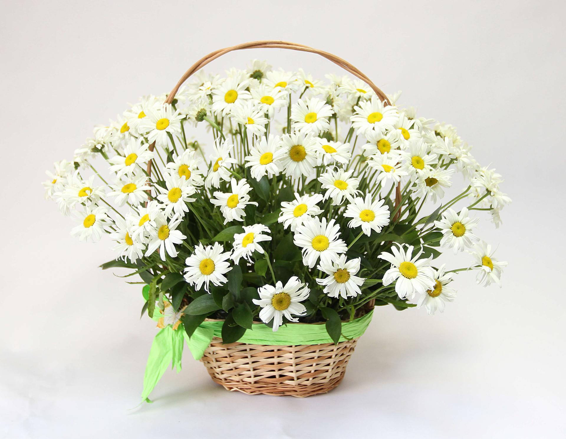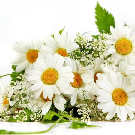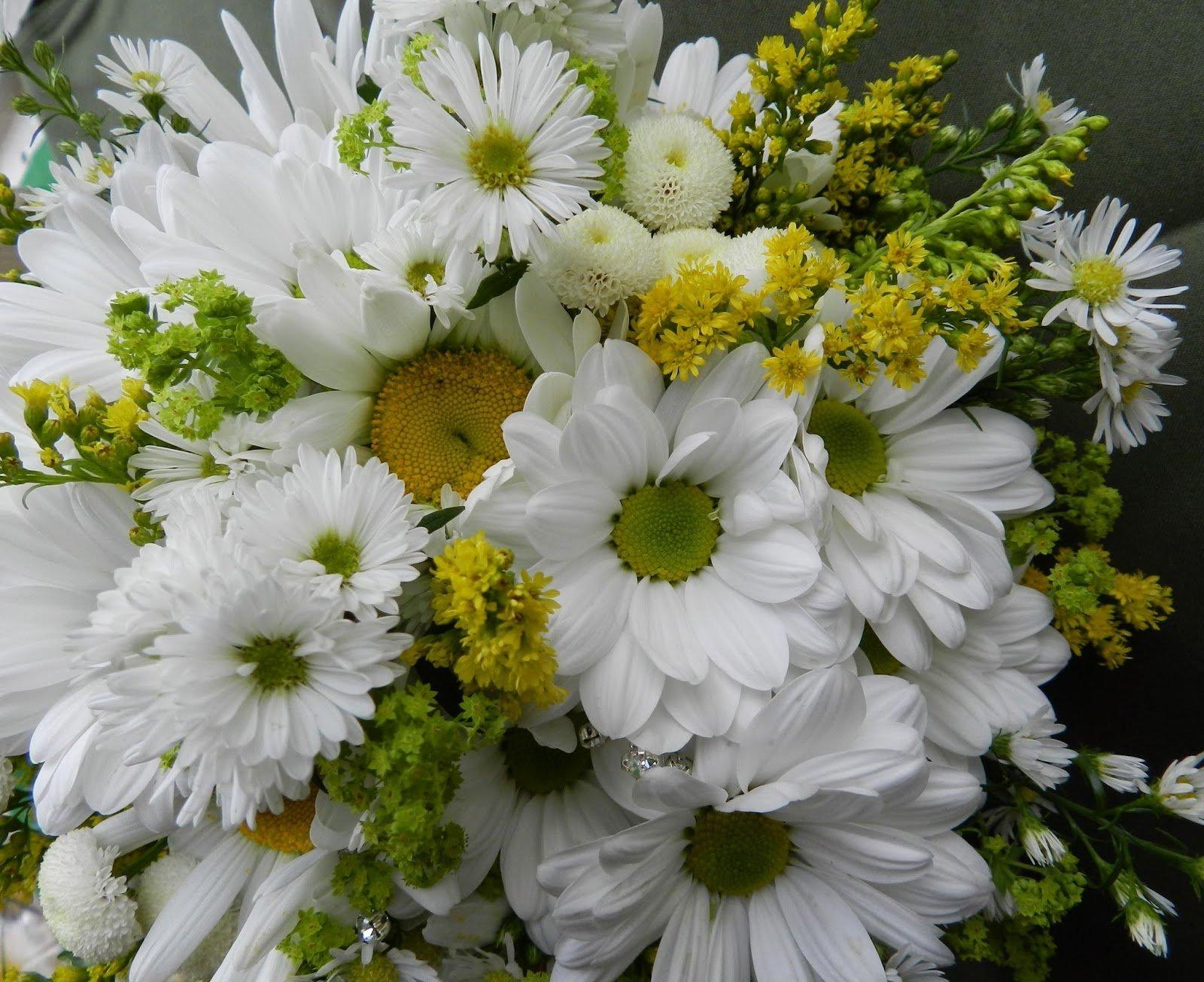 Женщины с букетами ромашек