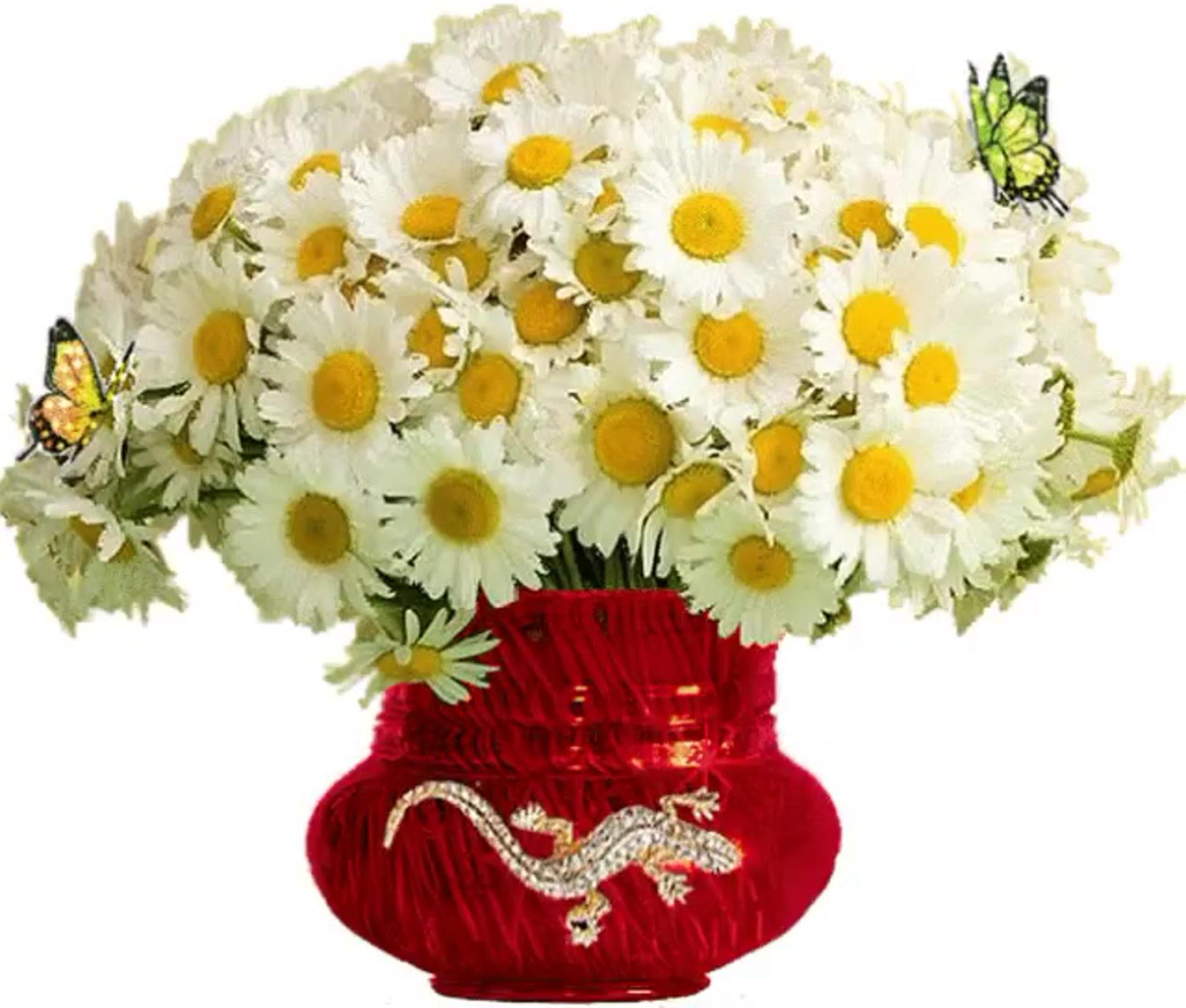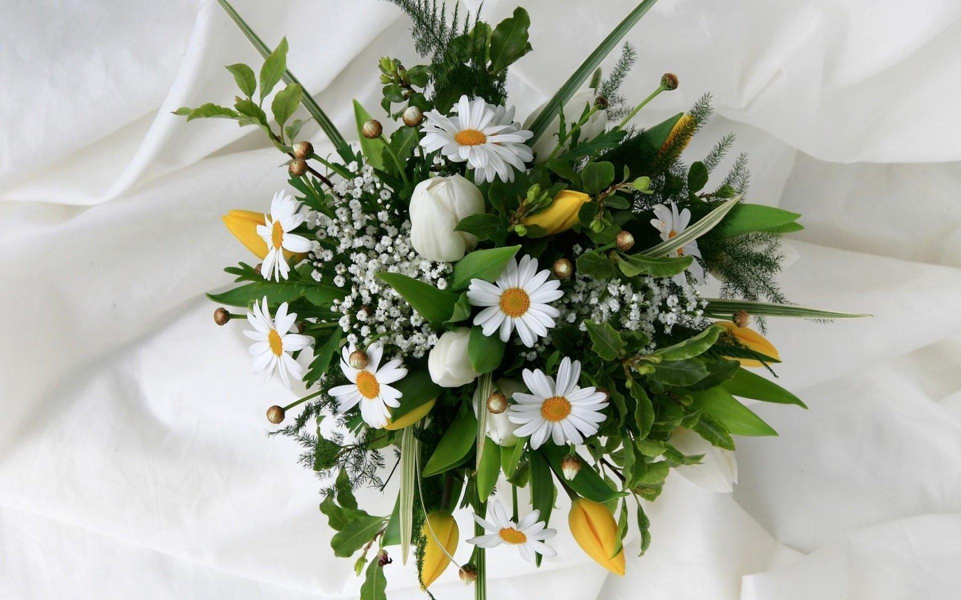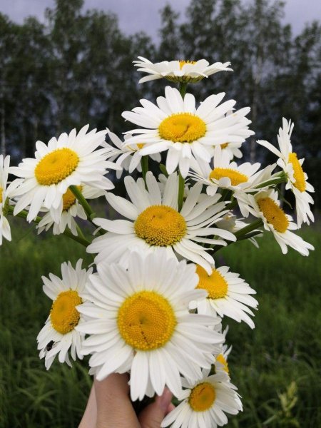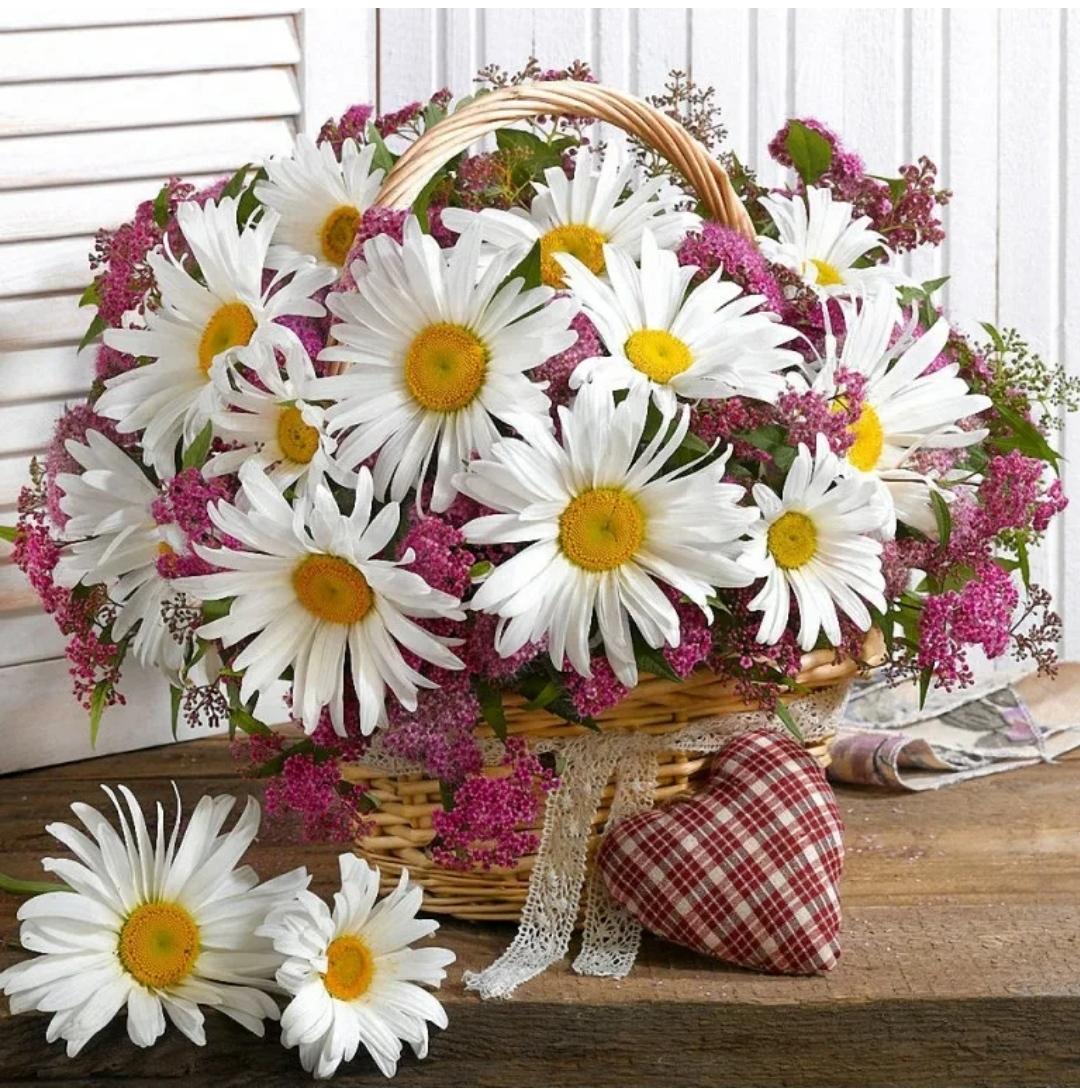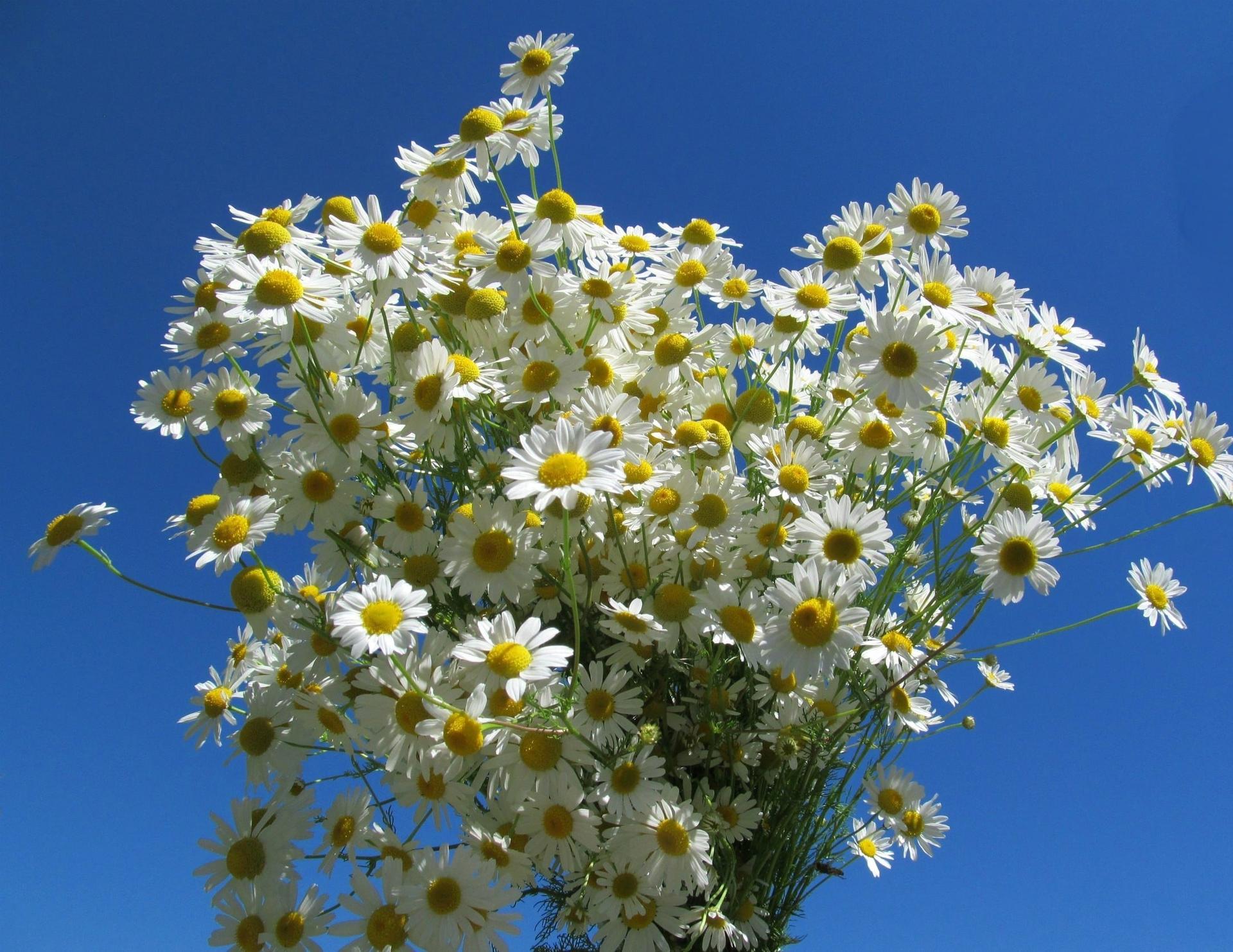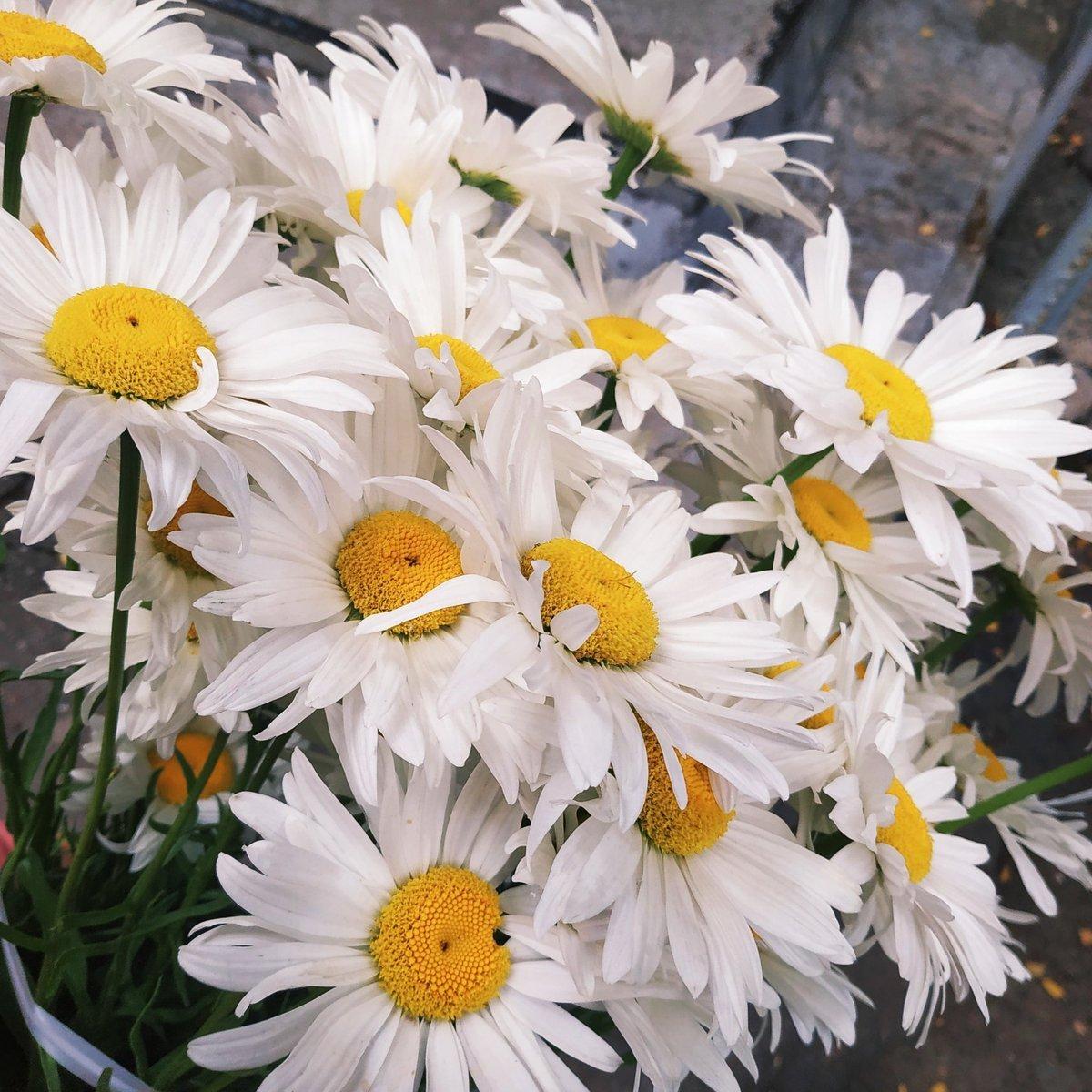 Женщины с букетами ромашек