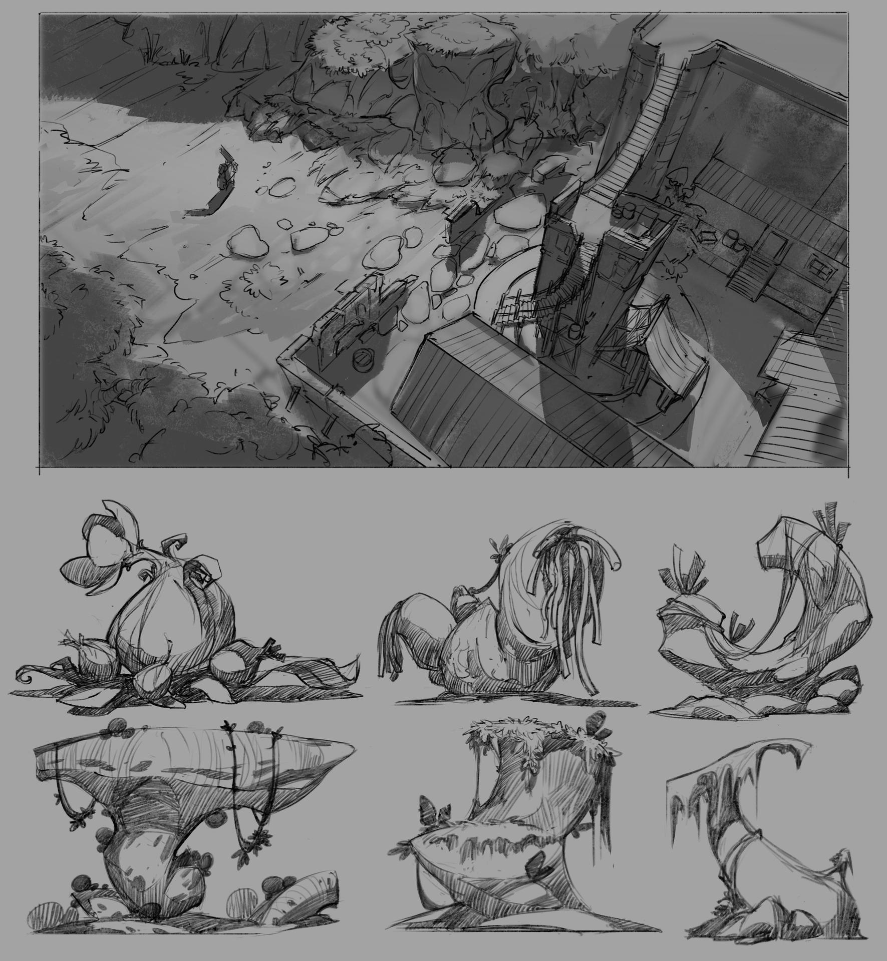 Карандашные концепт-арты растений