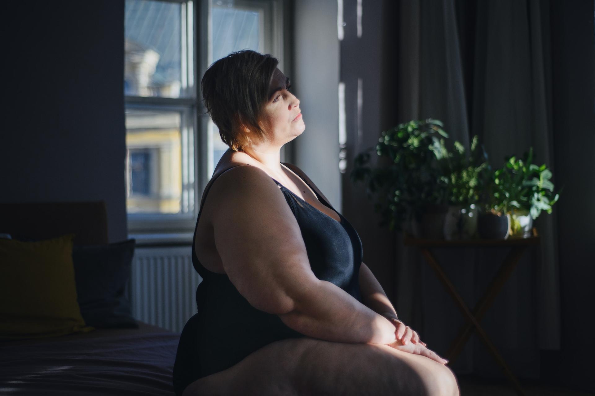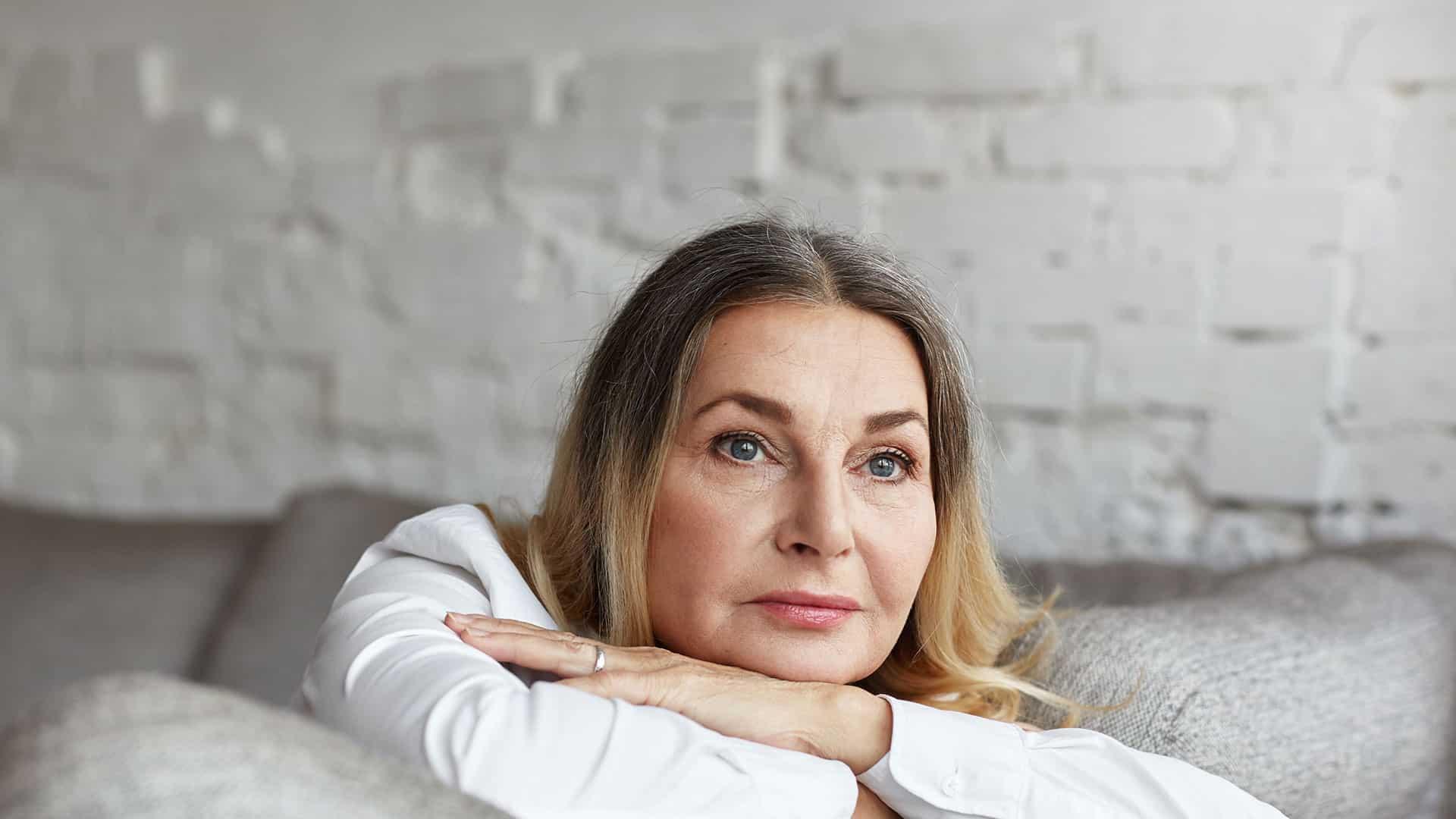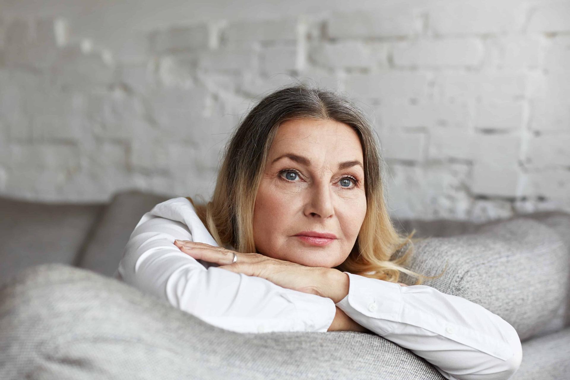Грустная немолодая женщина