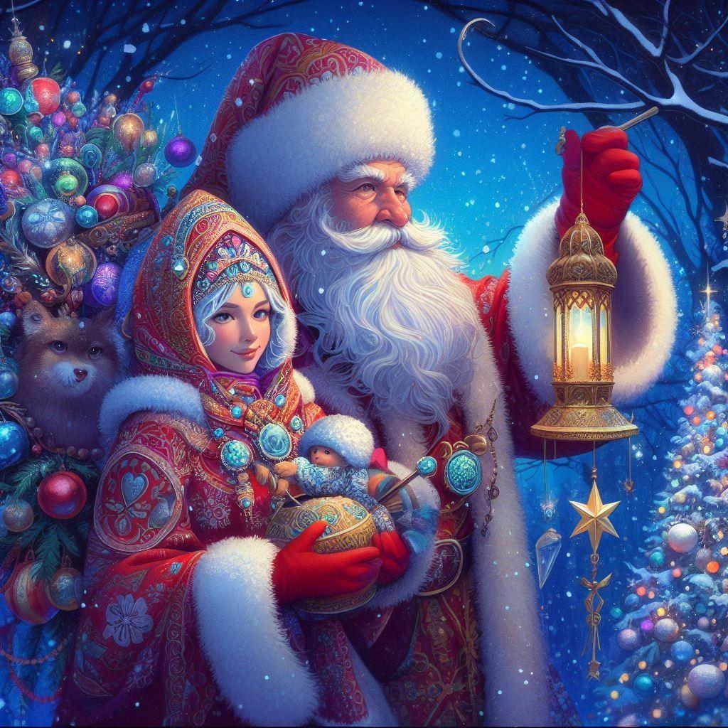 Галерея иллюстраций Деда Мороза и Снегурочки переносит зрителя в мир новогоднего волшебства. Художники создают теплые композиции с традиционными персонажами праздника. Тематические арты варьируются от классических портретов до фантастических сцен. Особое внимание уделяется деталям: костюмы, аксессуары, зимний пейзаж. Каждая работа исследует темы праздника, волшебства и семейных традиций. Коллекция демонстрирует влияние фольклора на современное искусство.