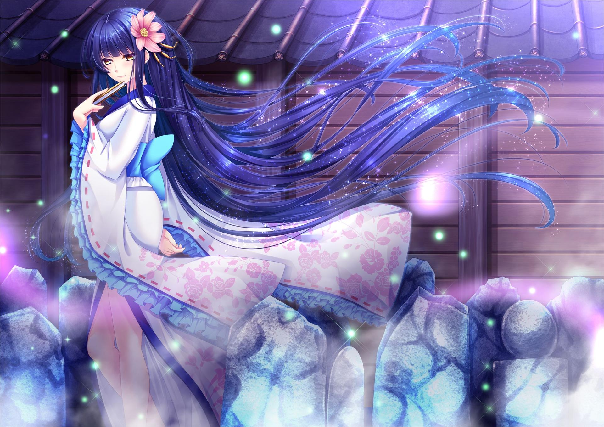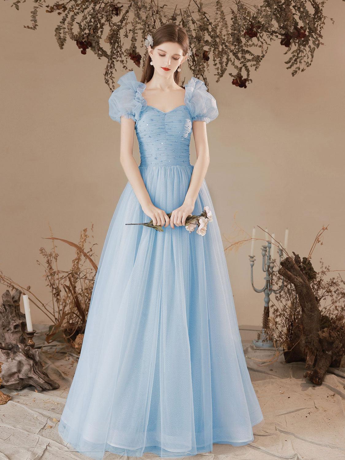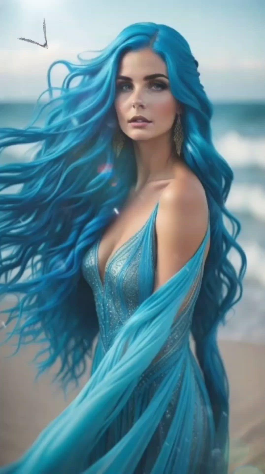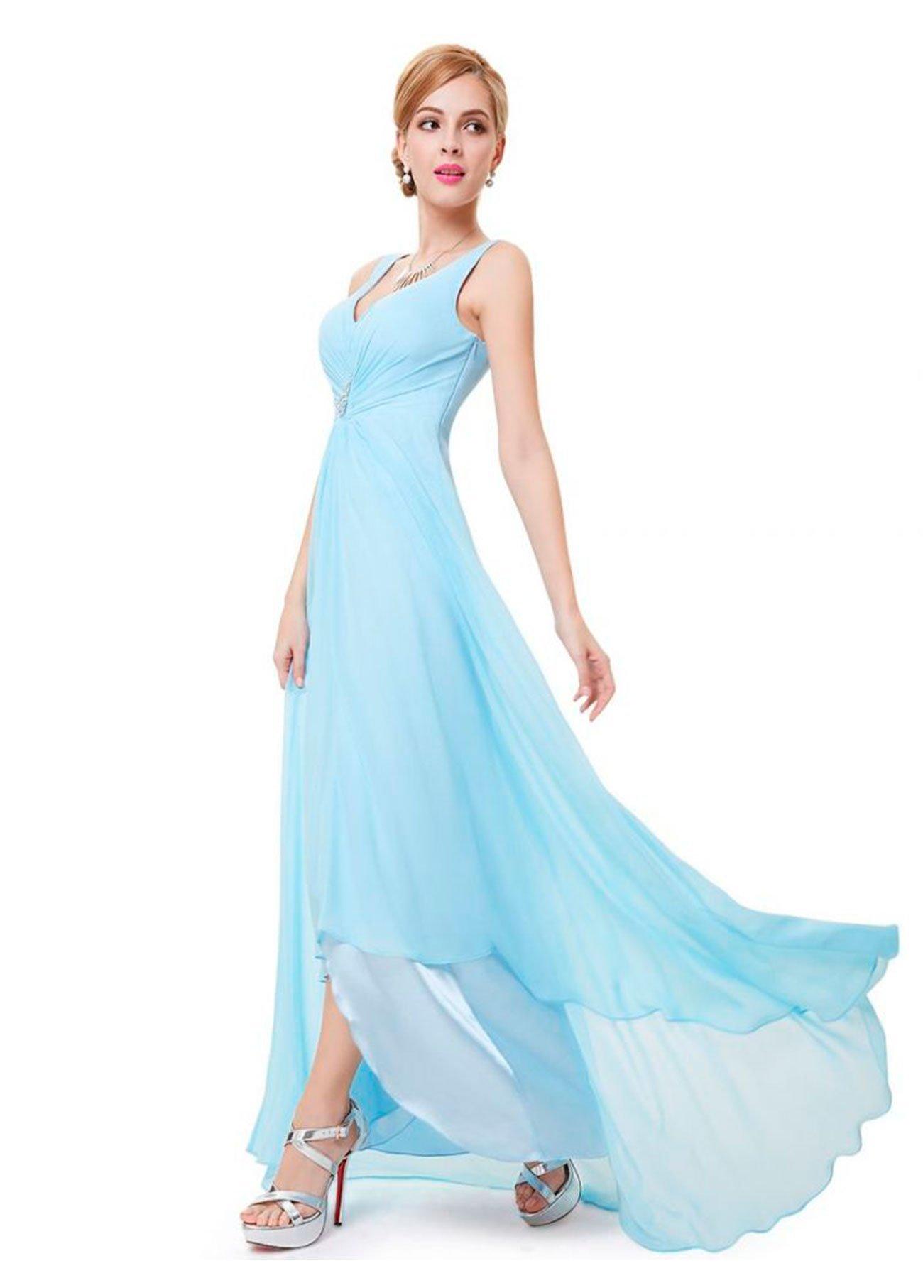 Девушки с длинными волосами в голубых платьях