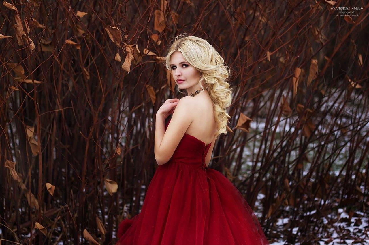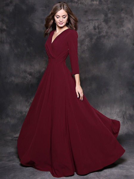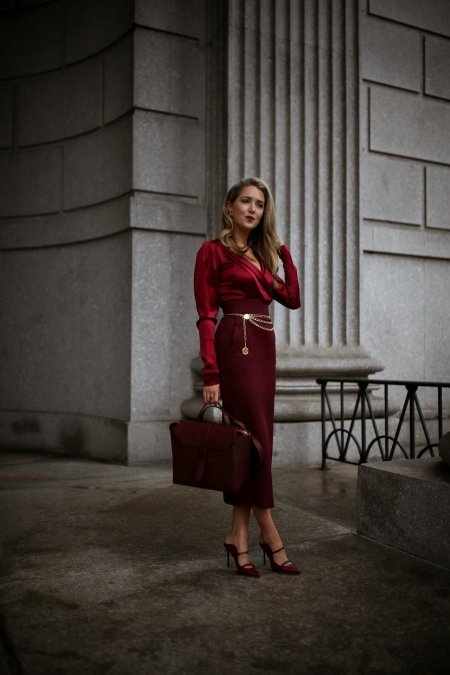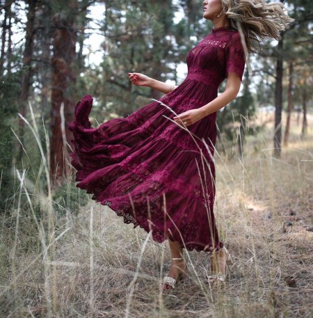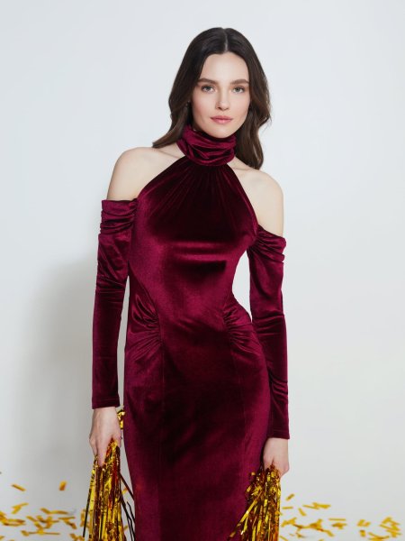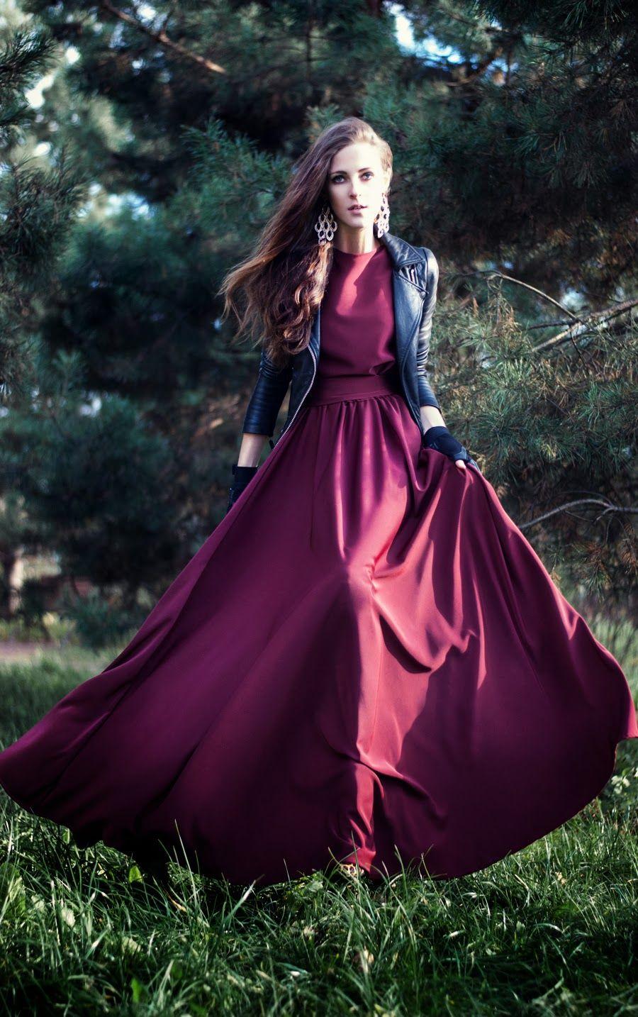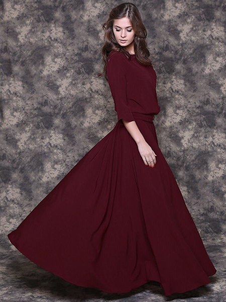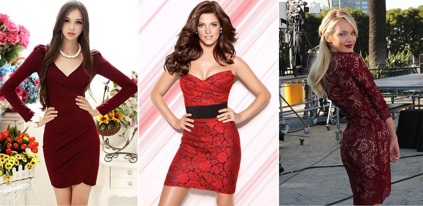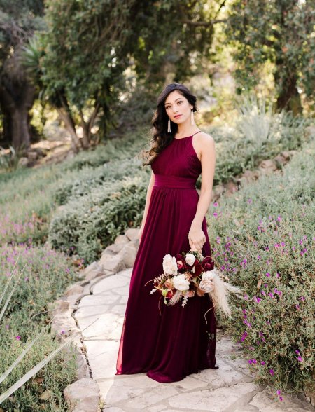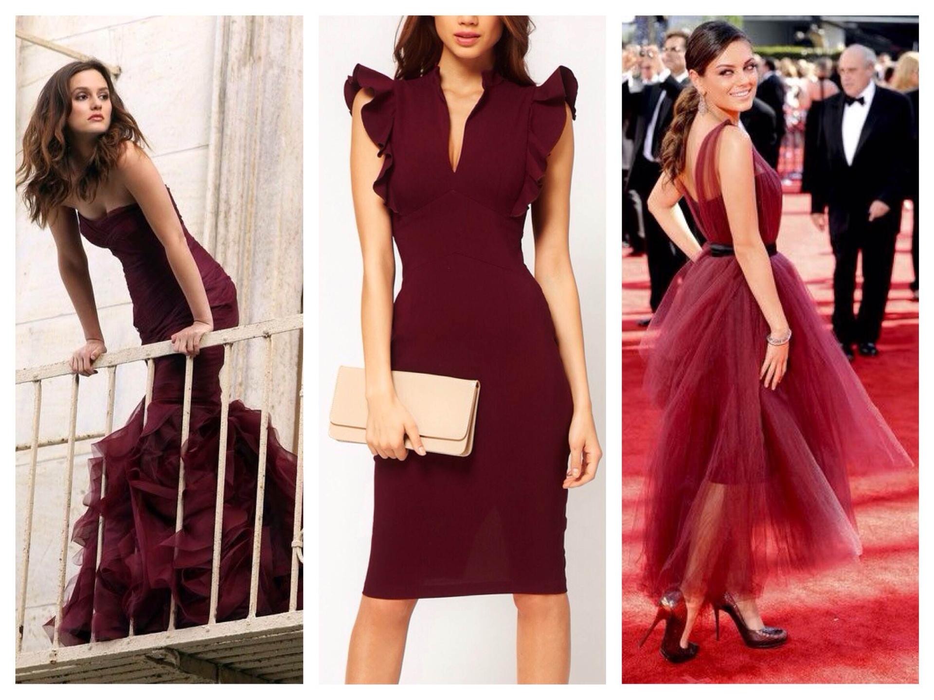Девушки в бордовых платьях