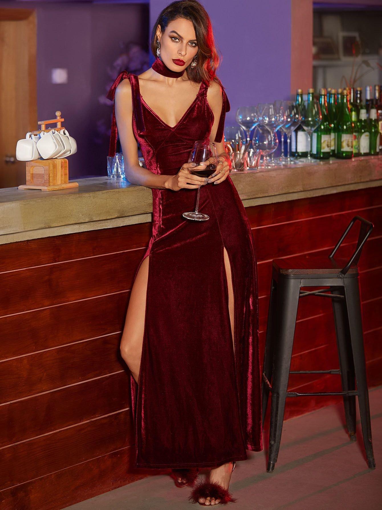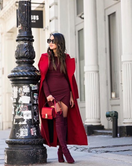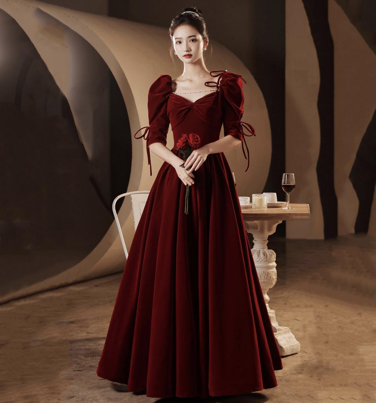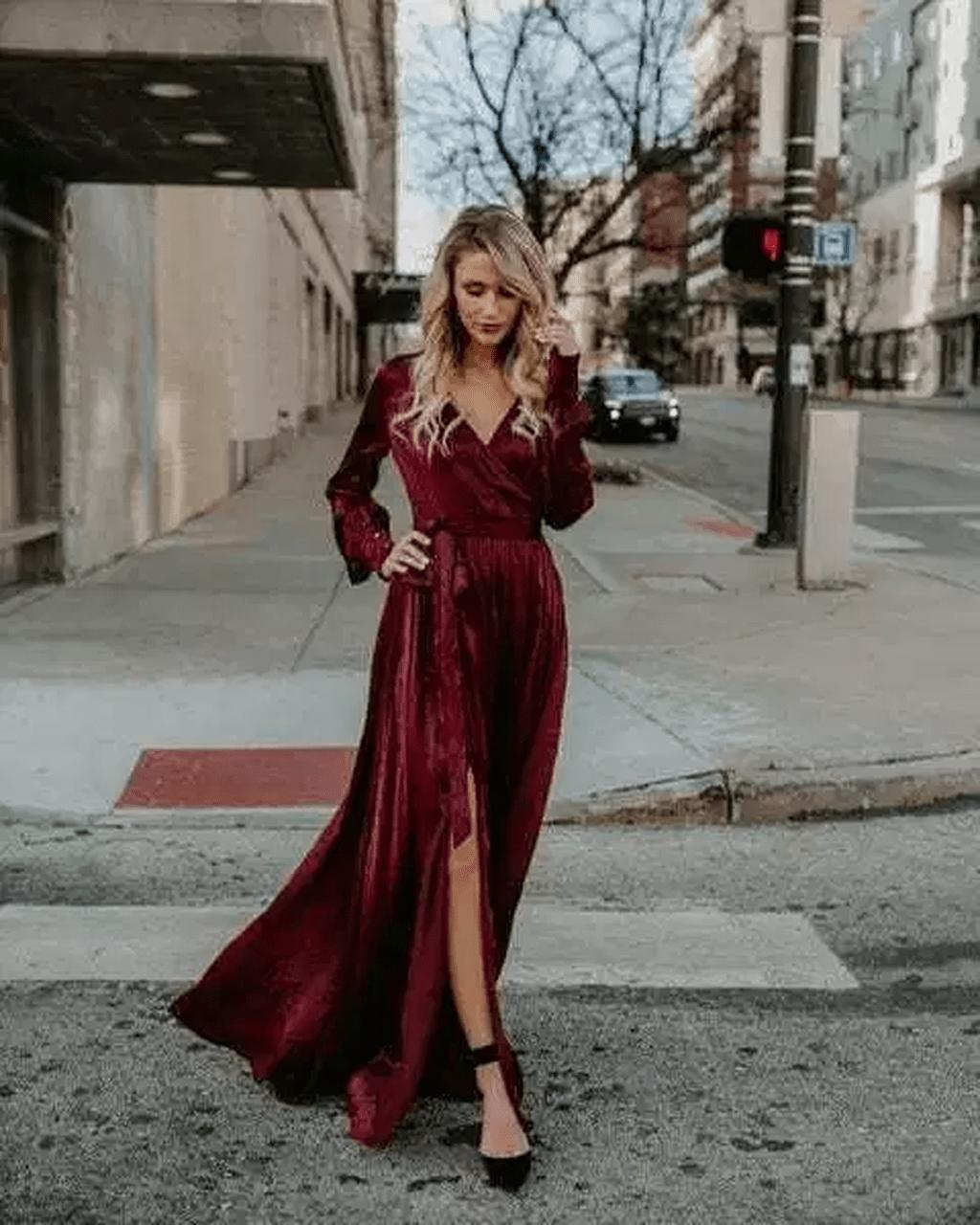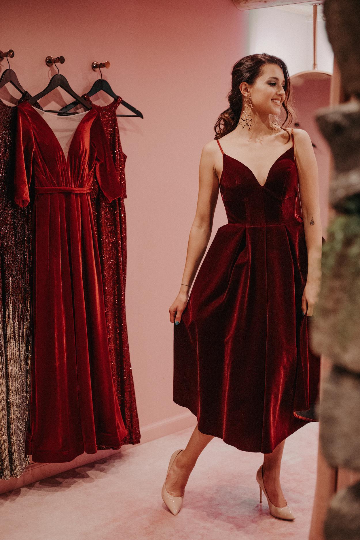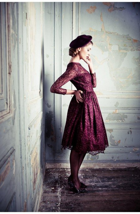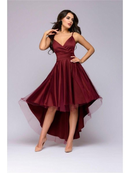 Девушки в бордовых платьях
