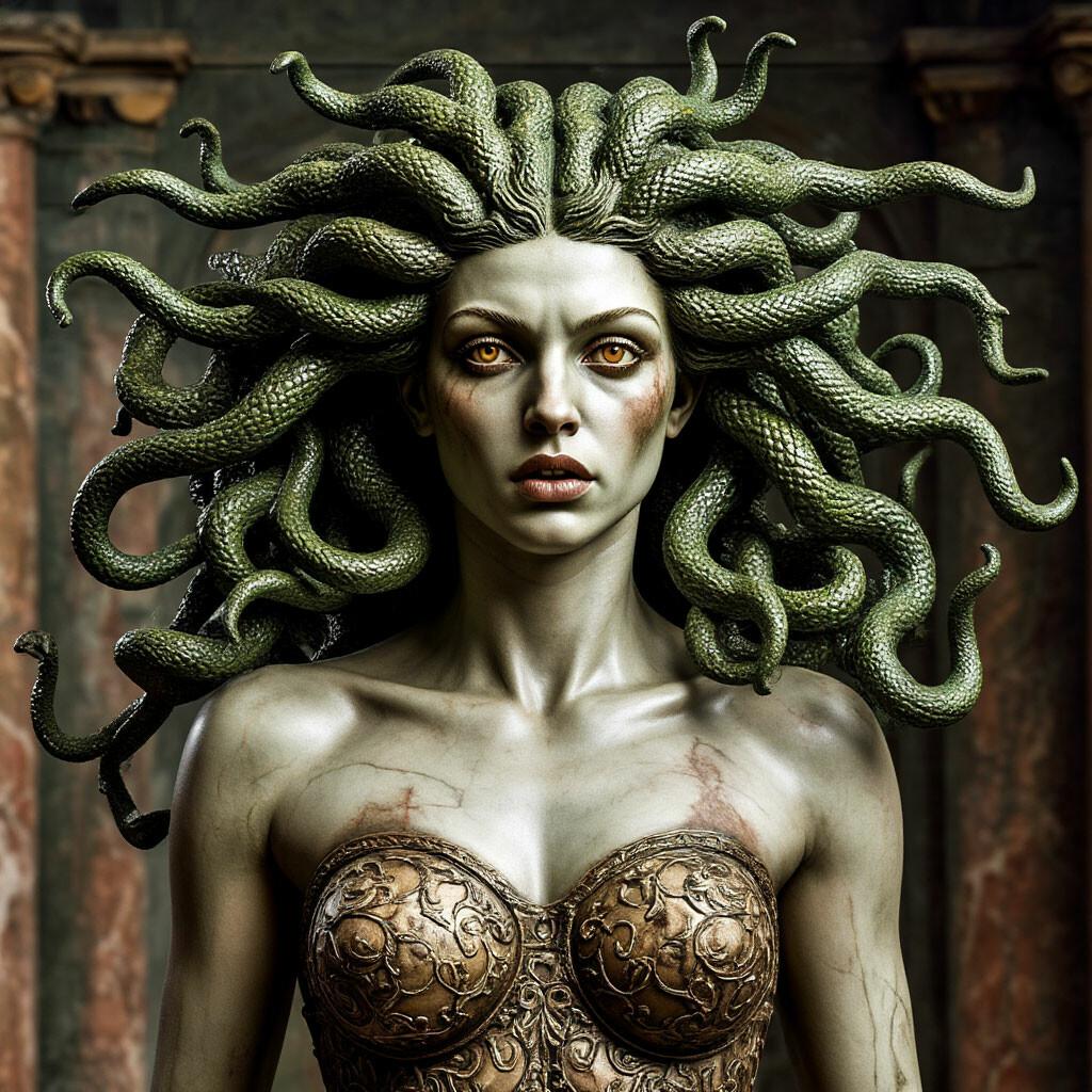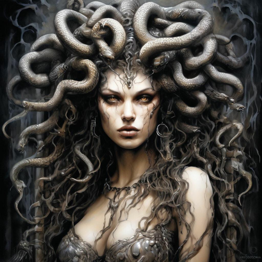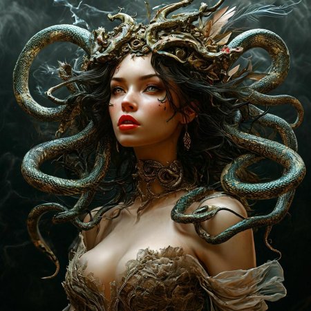 В этой галерее собраны впечатляющие изображения Эвриалы - одной из трех горгон из древнегреческой мифологии, сестры Медуэы. Художники создают разнообразные интерпретации: от классических изображений в античном стиле до современных фантазийных версий. Каждая иллюстрация подчеркивает ее характерные черты - змеи вместо волос, пронизывающий взгляд и сложную эмоциональную палитру. Композиции варьируются от портретов в полный рост до динамичных сцен сражения или моментов размышлений. Особое внимание уделяется деталям - от текстуры чешуи змей до выражения глаз. Эти фото отражают темы древней мудрости, внутренней силы и трагической красоты. Подборка станет интересной для любителей мифологии и тех, кто ценит глубокие психологические образы в искусстве.