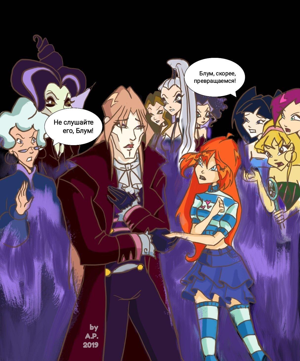 Погрузитесь в мрачный и завораживающий мир волшебства через иллюстрации злой Блум и Валтора - двух могущественных волшебниц с непростой судьбой. Эти работы демонстрируют их темную сторону: колдовские ритуалы, магические артефакты, атмосфера тайны и силы. Художники мастерски передают характер каждой героини - Блум как падшую принцессу, Валтора как верную спутницу тьмы. Палитра цветов насыщенная и глубокая, с преобладанием темных тонов и мистических оттенков. Каждая иллюстрация рассказывает о выборе между светом и тьмой, о цене могущества и силе настоящей дружбы.