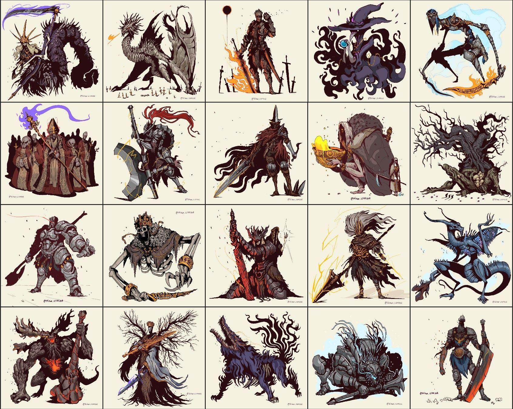Представляем коллекцию эпических иллюстраций, посвященных боссам из игры Dark Souls - иконам сложных сражений и глубокого лора. Современные художники запечатлевают разнообразных антагонистов: от древних драконов до падших богов, от демонических существ до искаженных воинов. Работы передают мощь и величие этих персонажей, их историю и мотивацию. Коллекция включает портреты боссов в различных позах: в боевых stance, в моментальных сценах, в символических композициях. Каждая иллюстрация наполнена атмосферой эпической борьбы и древней силы. Эти арты отражают влияние Dark Souls на игровую культуру и способность искусства передавать сложные нарративы. Работы сочетают детализированный дизайн с художественным выражением, создавая запоминающиеся образы. Коллекция позволяет увидеть, как иллюстративное искусство увековечивает игровые персонажи и делает их частью культурного наследия.