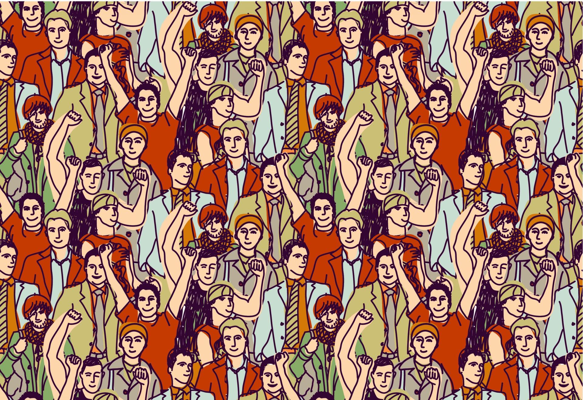 Исследуйте коллекцию динамичных иллюстраций, посвященных толпе - мощному и многогранному явлению человеческого общества. Художники современности запечатлевают различные проявления коллективного поведения: от праздничных шествий до уличных демонстраций, от концертных толп до повседневных скоплений людей. Работы выполнены в разнообразных техниках - от реалистичных набросков до абстрактных композиций, каждая из которых передает энергию и эмоции человеческой массы. Коллекция включает иллюстрации городских сцен, спортивных мероприятий, политических акций и культурных событий. Каждая работа раскрывает уникальные аспекты поведения толпы: единство в разнообразии, эмоциональный накал, ритм движения. Эти арты отражают сложность социальных взаимодействий и способность искусства передавать коллективные переживания. Иллюстрации приглашают к размышлениям о человеческой природе и силе сообщества в современном мире.