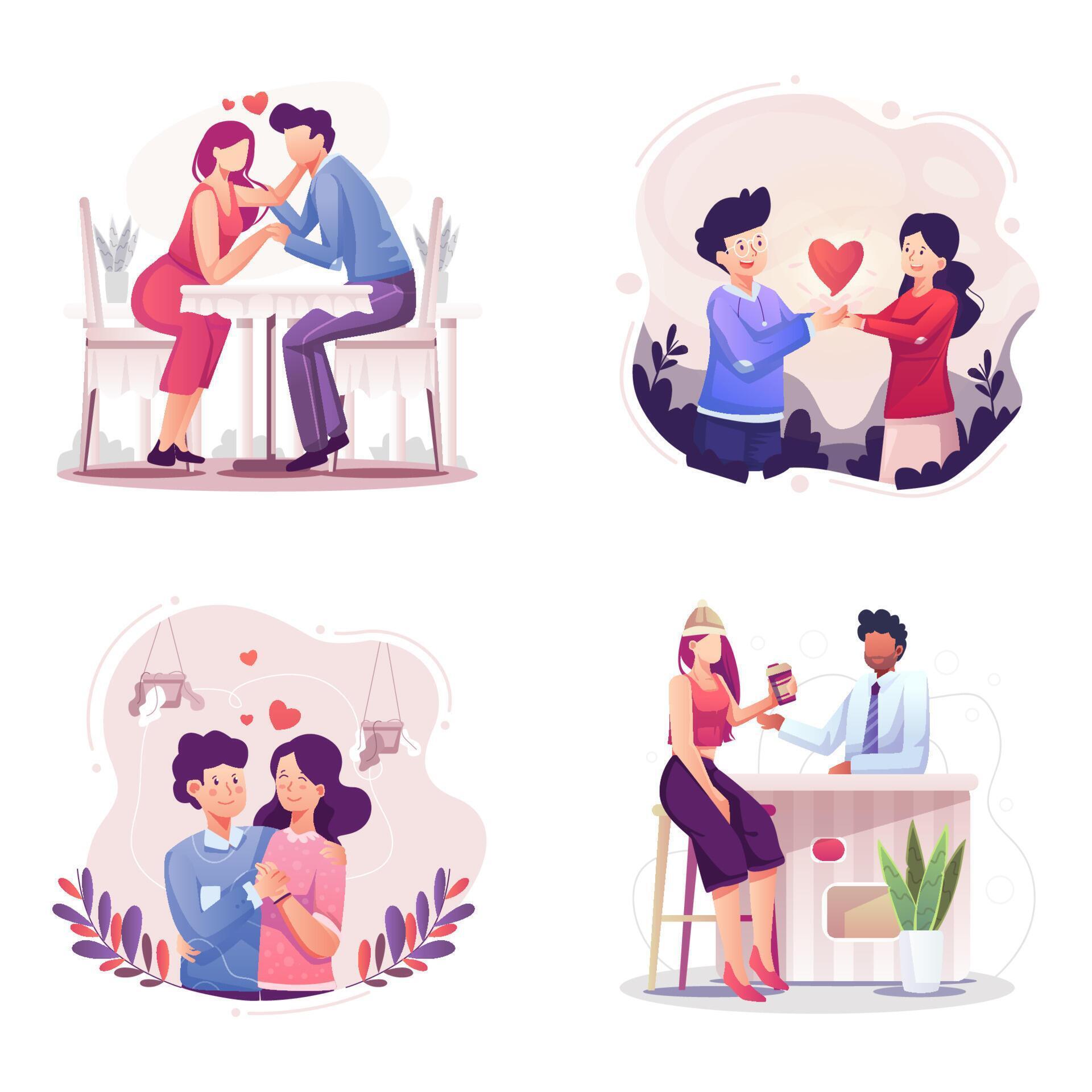 Отношения предстают в этих клипартах как источник радости и гармонии - моменты, когда двое становятся единым целым. Иллюстрации показывают различные проявления любви - от нежных объятий до совместного смеха. Каждый рисунок наполнен теплотой и позитивной энергией. Такие изображения идеально подходят для выражения чувств и напоминают о том, как важно ценить близких людей.