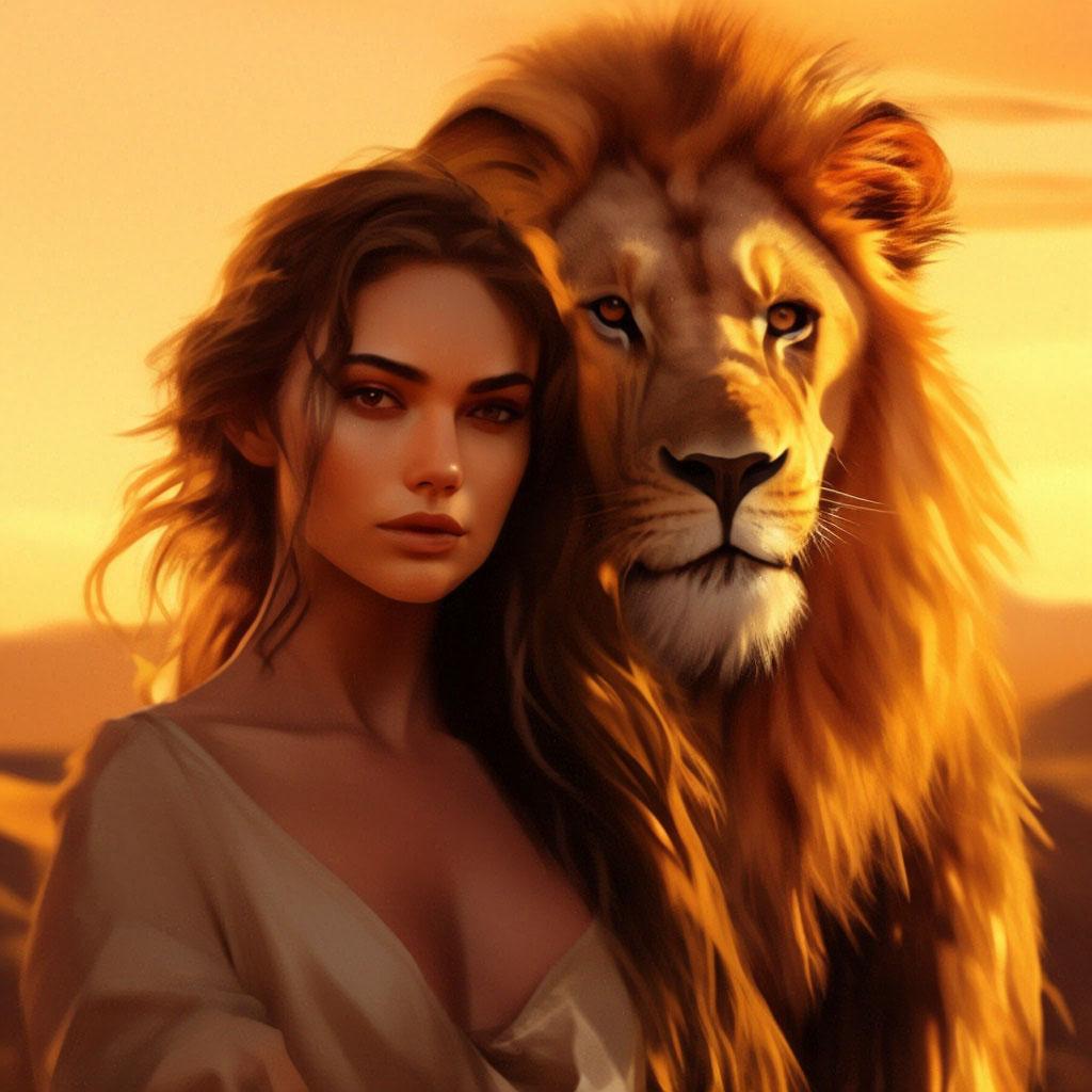 Лев и девушка