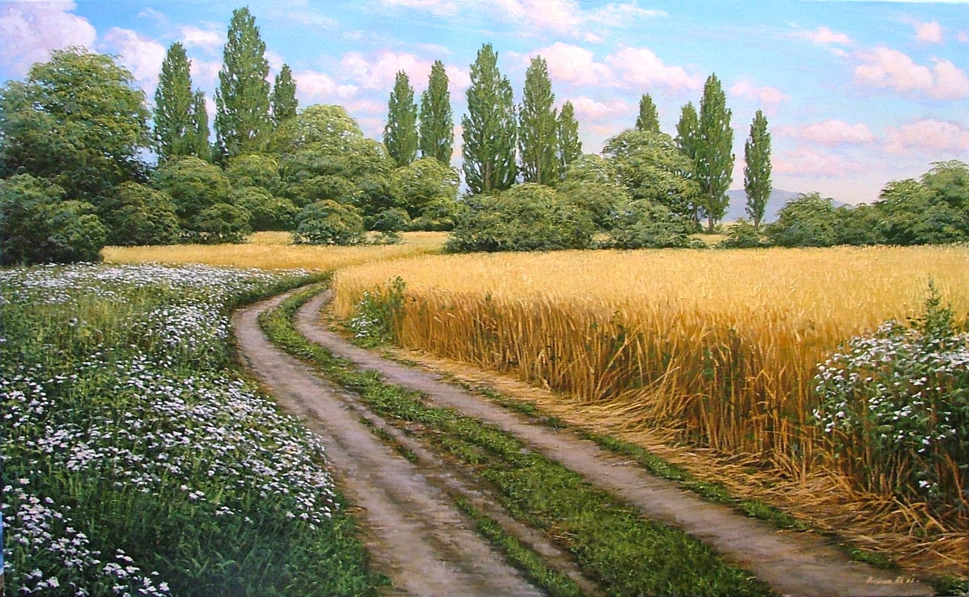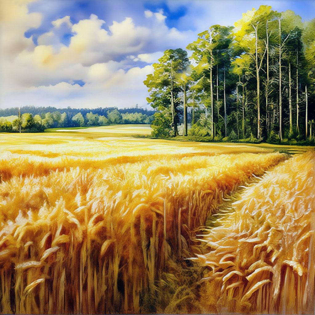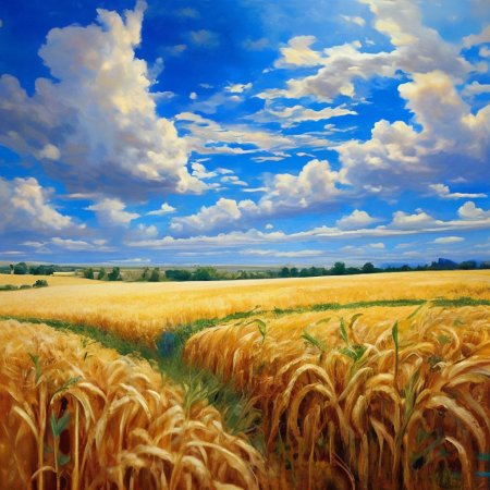 В этой галерее собраны вдохновляющие изображения пшеничных полей - символов изобилия и человеческого труда. Художники передают атмосферу сельской идиллии: от колышущихся колосьев под ветром до золотистого сияния закатного солнца. Композиции варьируются от широких панорам до детализированных изображений отдельных колосьев. Особое внимание уделяется игре света и теней - от утренней росы до вечерних теней. Эти иллюстрации отражают темы плодородия, сезонности и связи человека с землей. Подборка станет прекрасным дополнением к коллекциям пейзажной живописи.