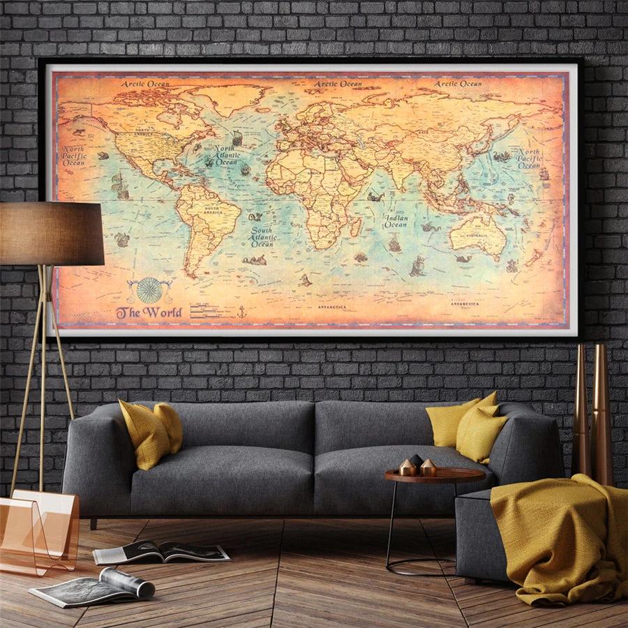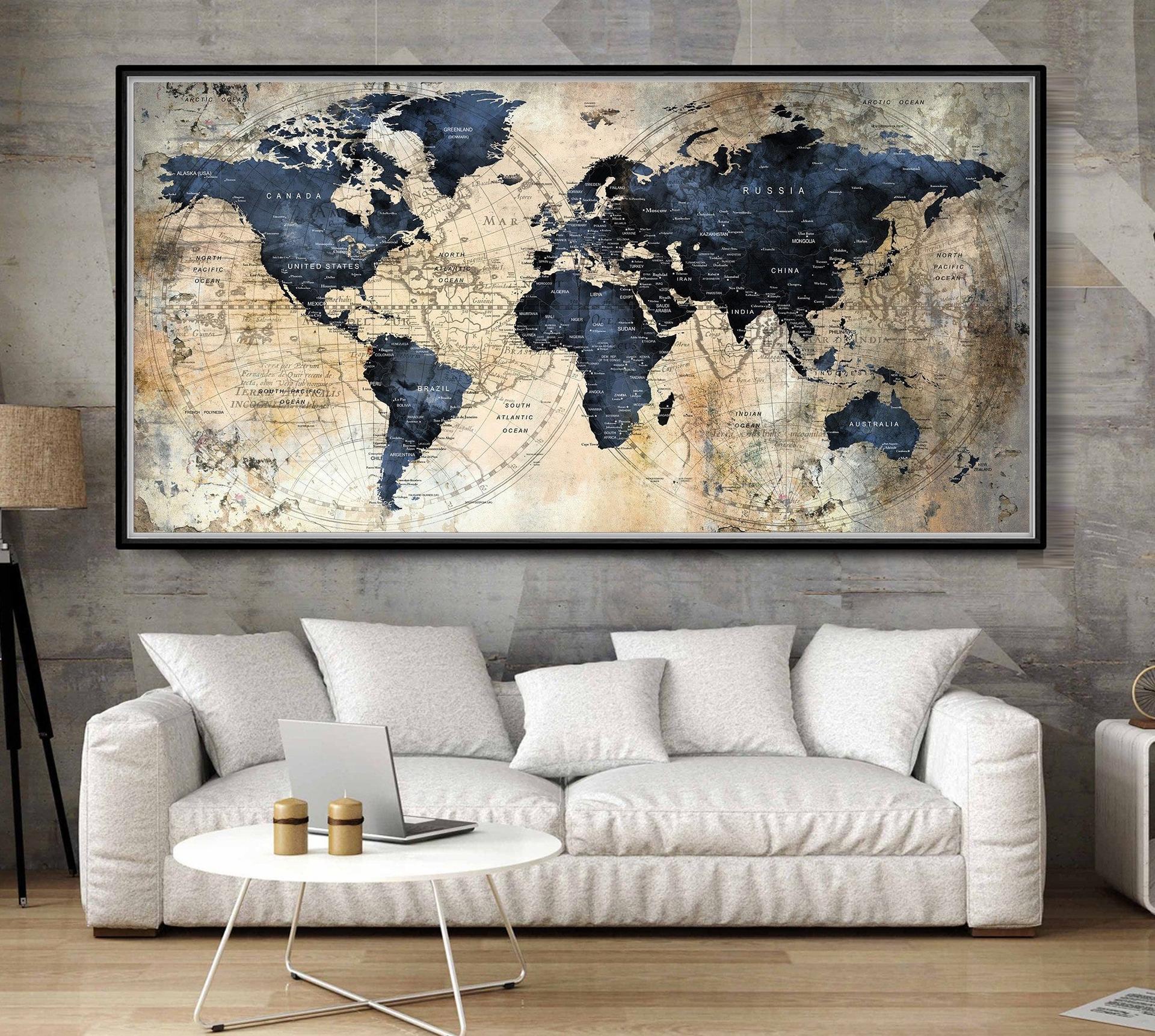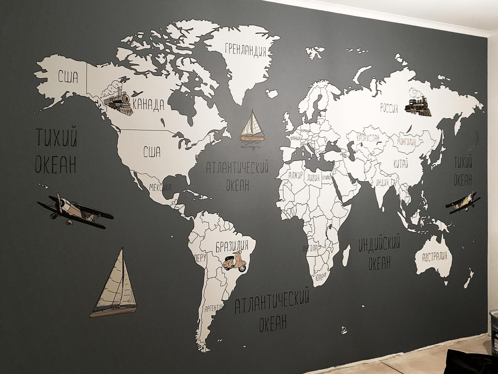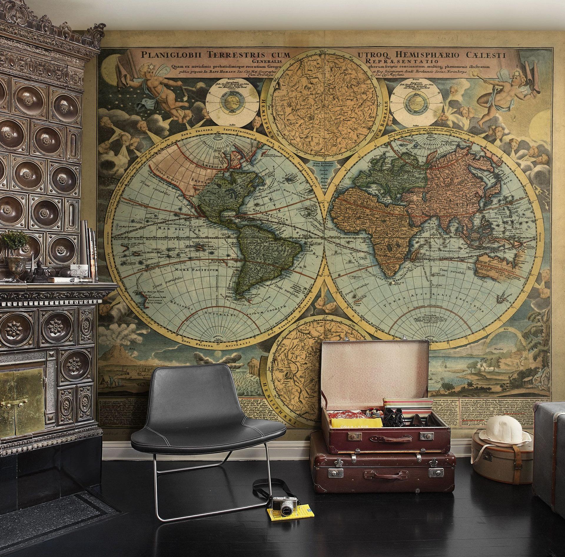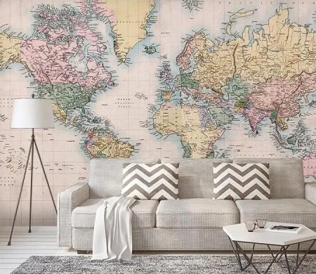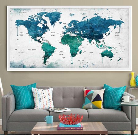 Арты географических карт в интерьере