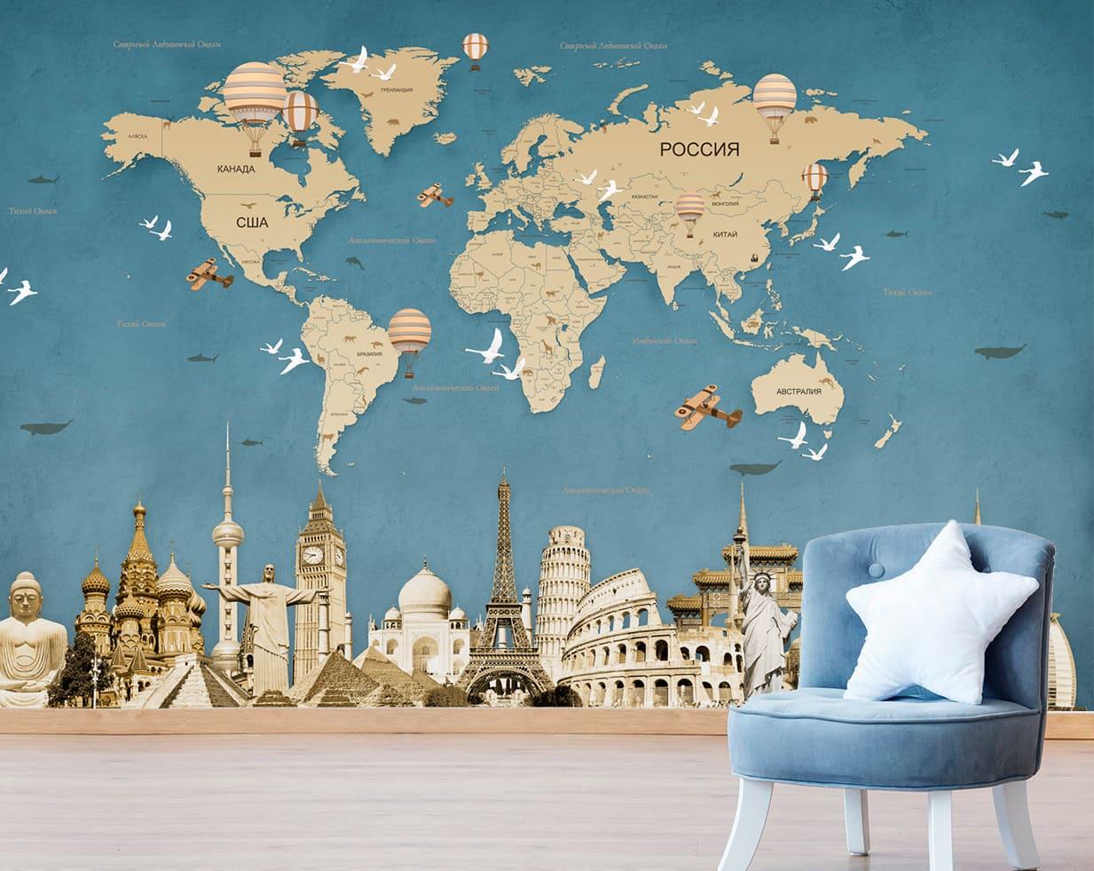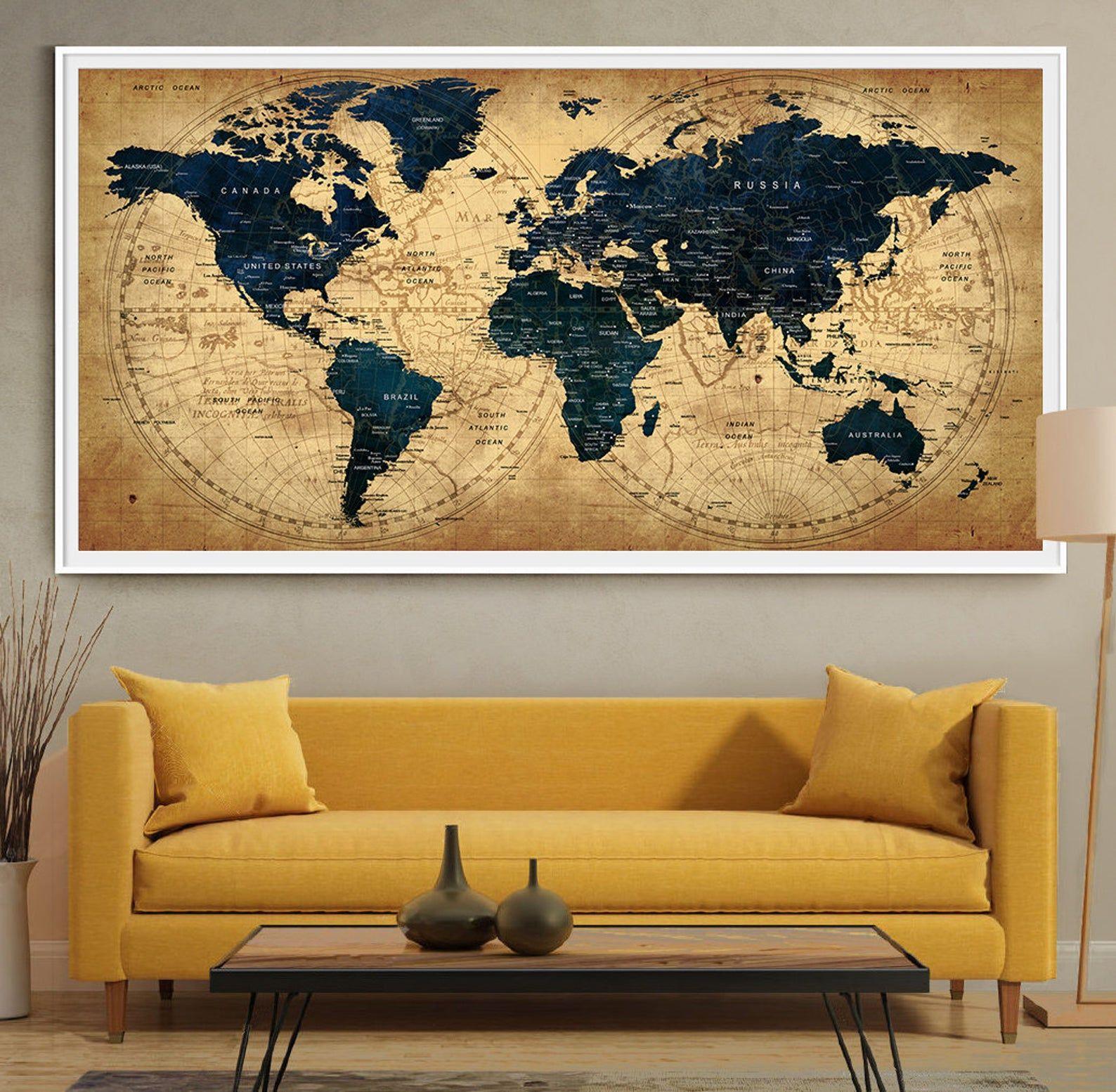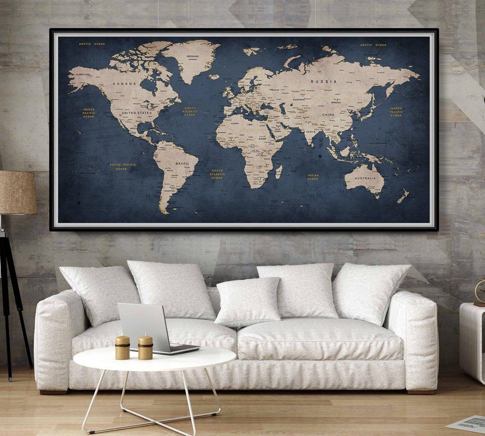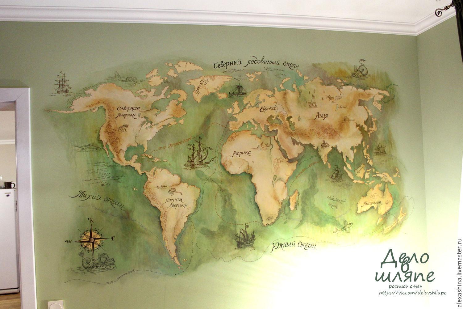 Арты географических карт в интерьере