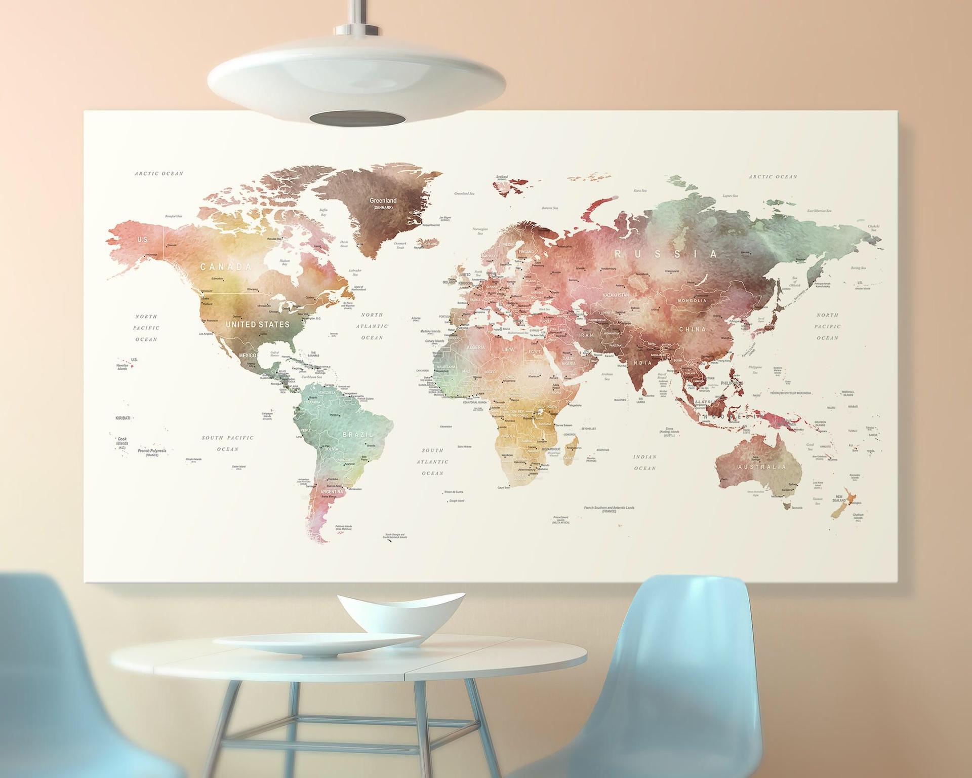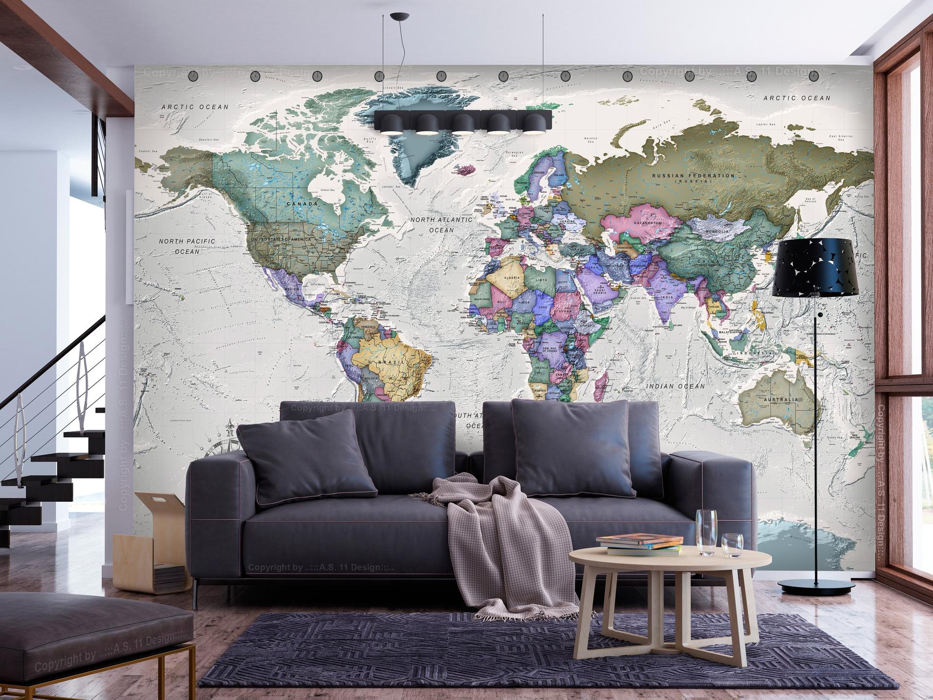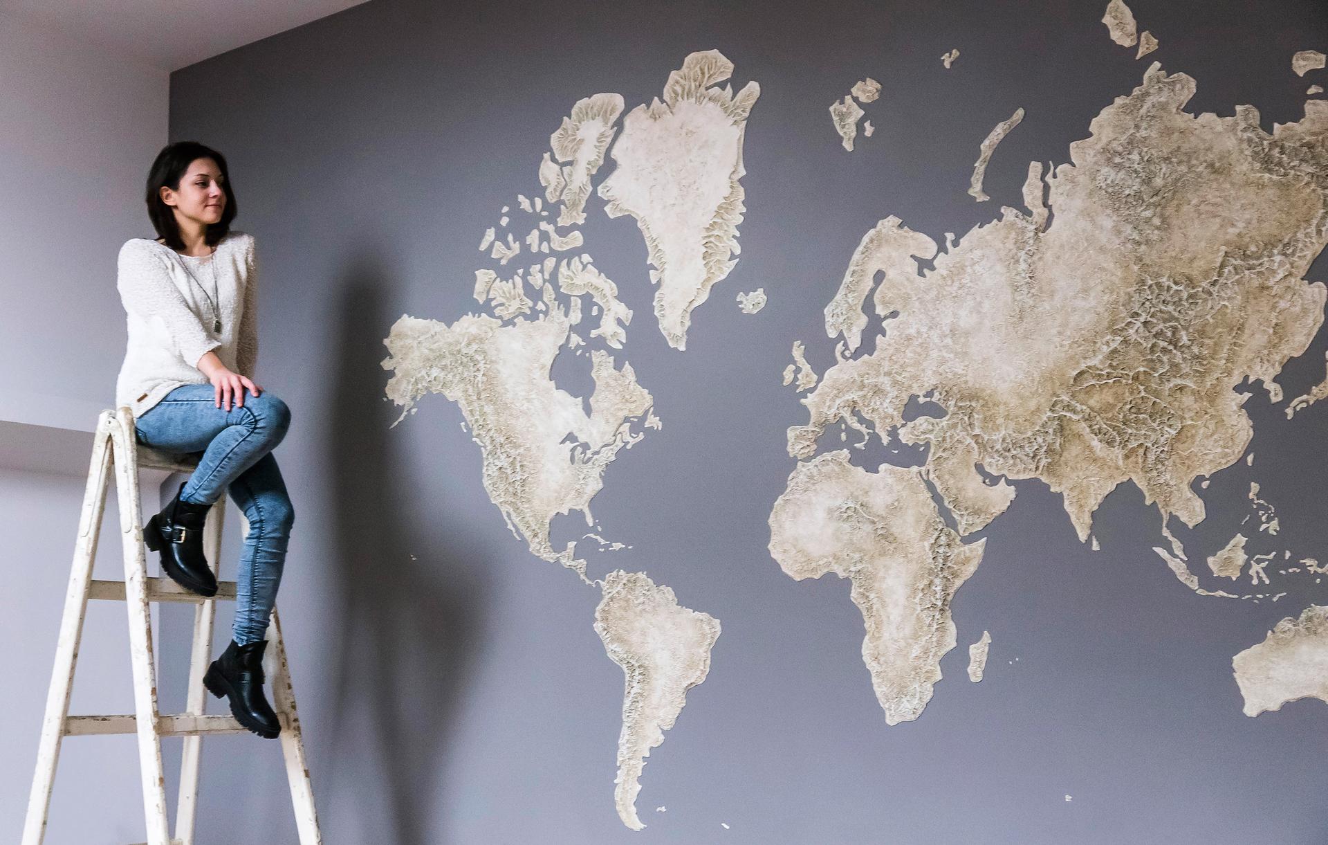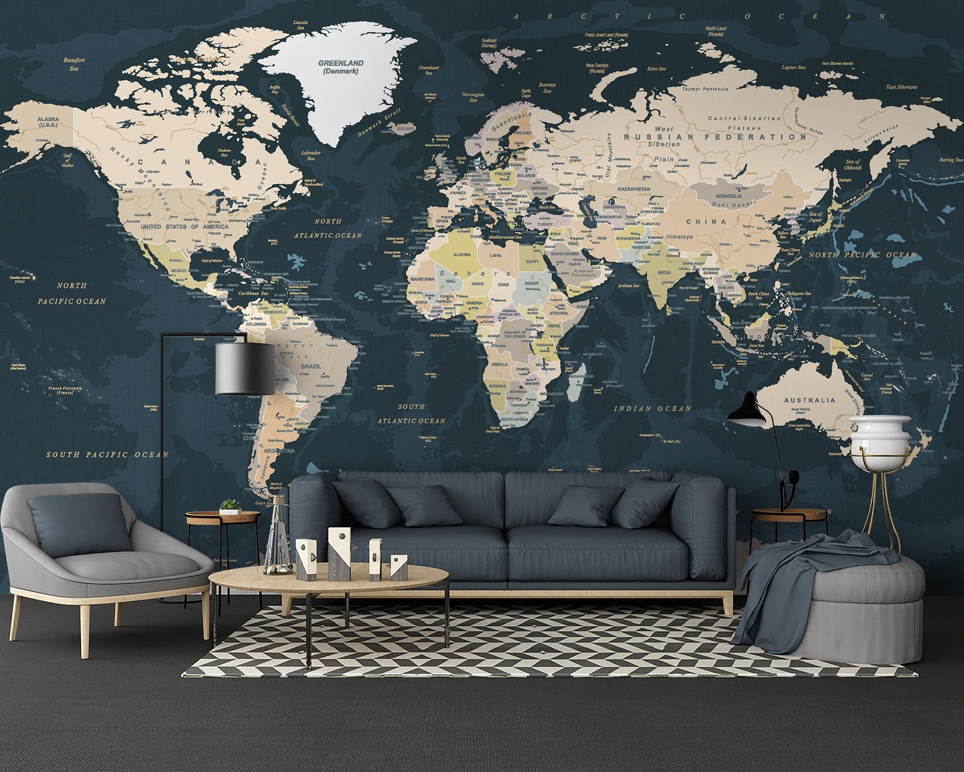 Арты географических карт в интерьере