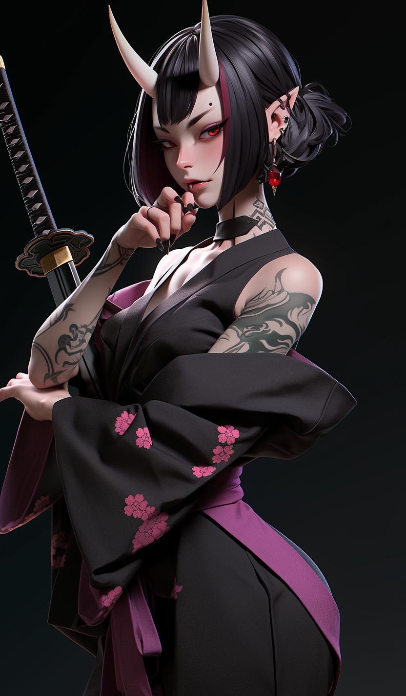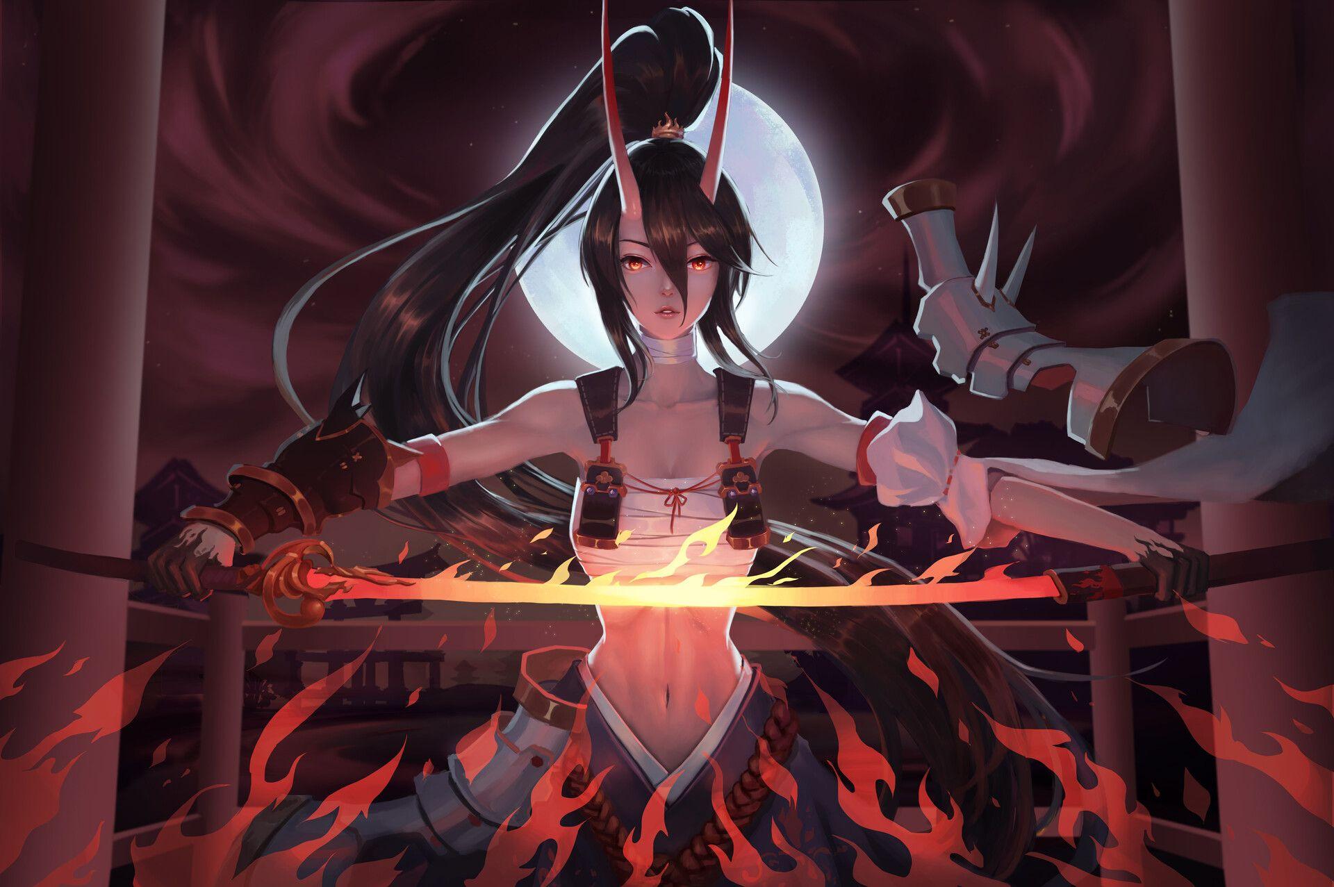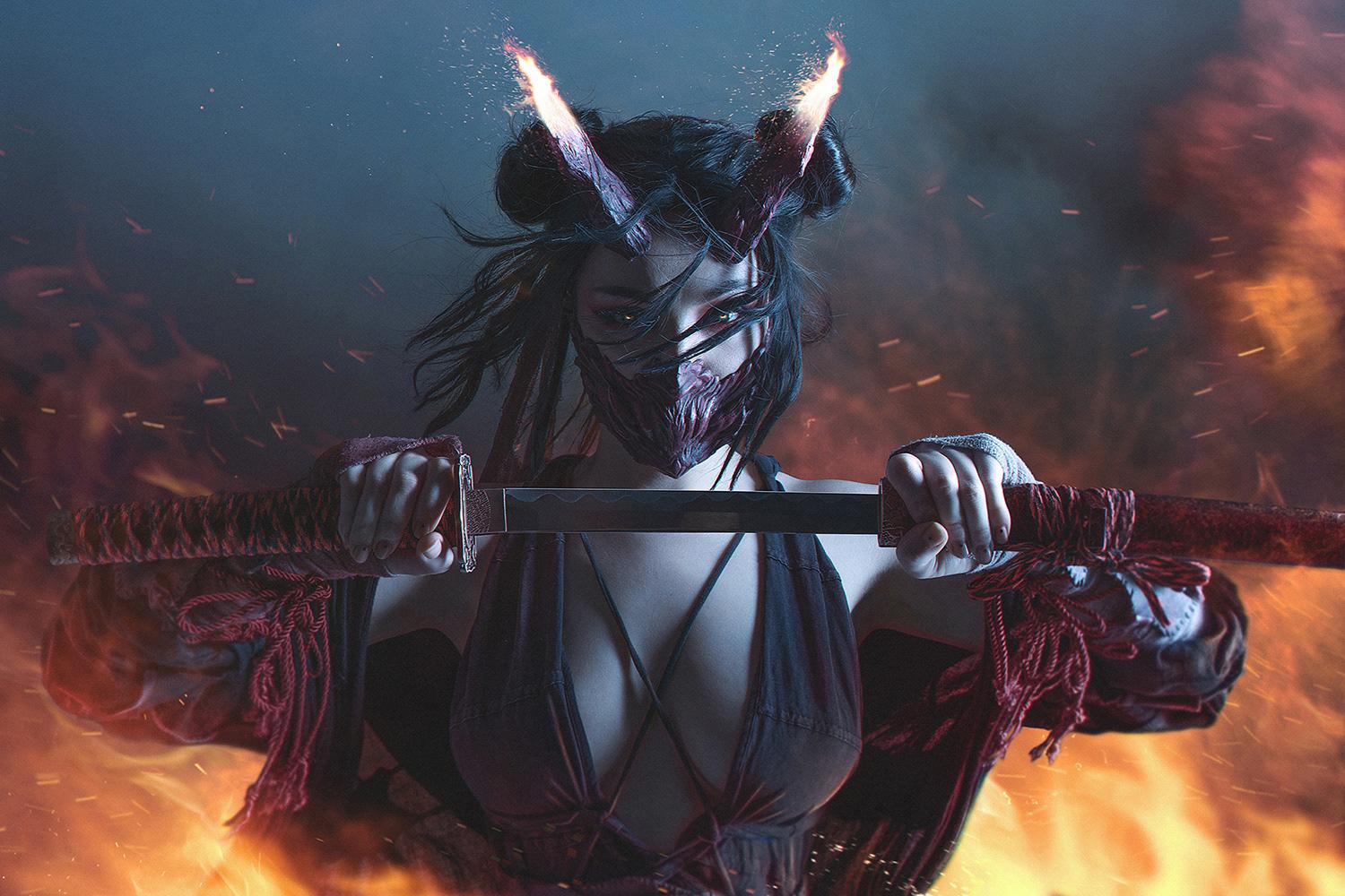 Девушка демон самурай