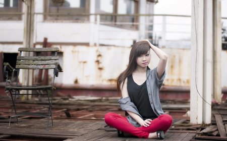 Девушка сидит