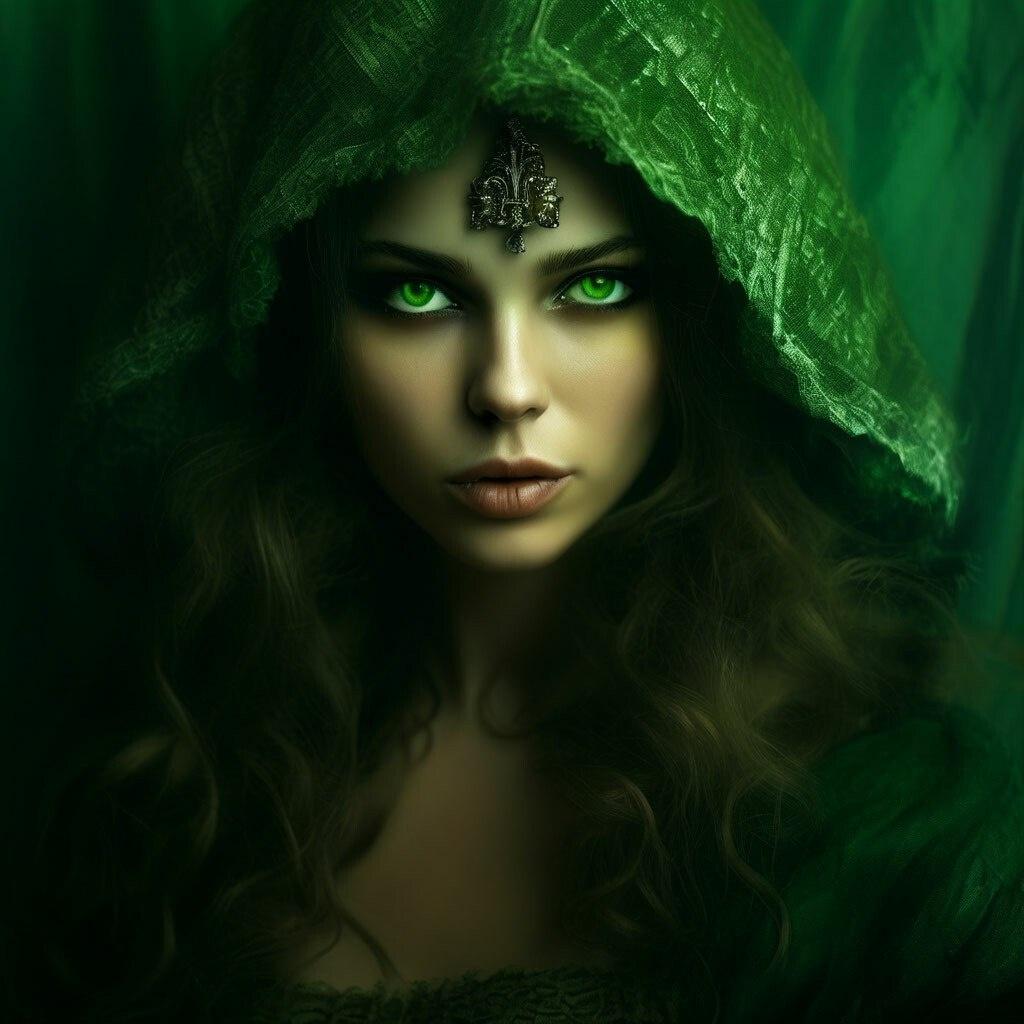 Зеленая ведьма предстает в этих фото как посредница между миром людей и силами природы. Художники используют зеленые тона во всех оттенках, чтобы передать связь с лесом и его обитателями. Каждая композиция рассказывает историю о древних знаниях, целительстве и уважении к природным циклам. Особое внимание уделяется деталям: травам в волосах, рунам на коже и животным-спутникам. Эти иллюстрации демонстрируют, как магия может сочетаться с заботой о мире, а сила - с мудростью.
