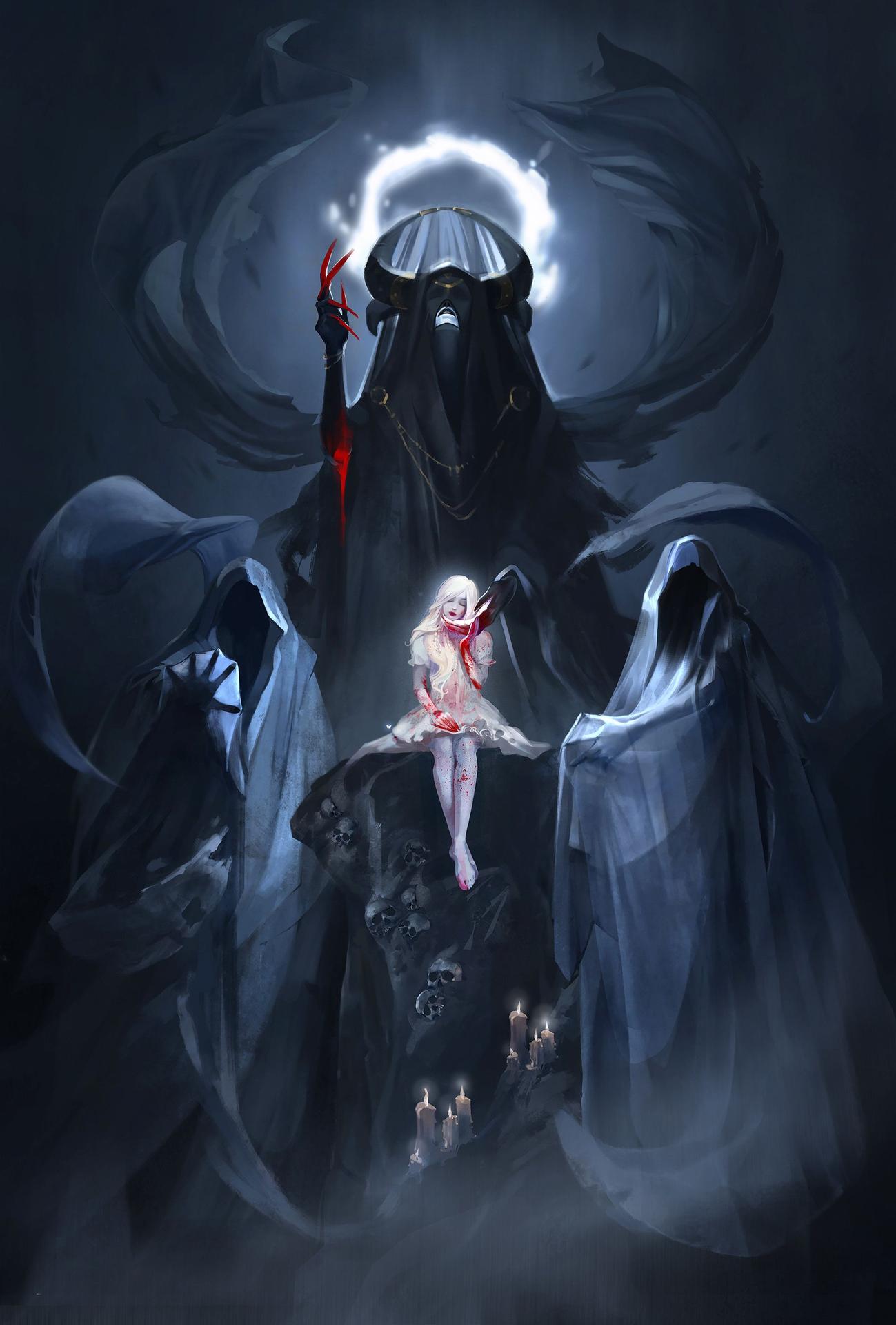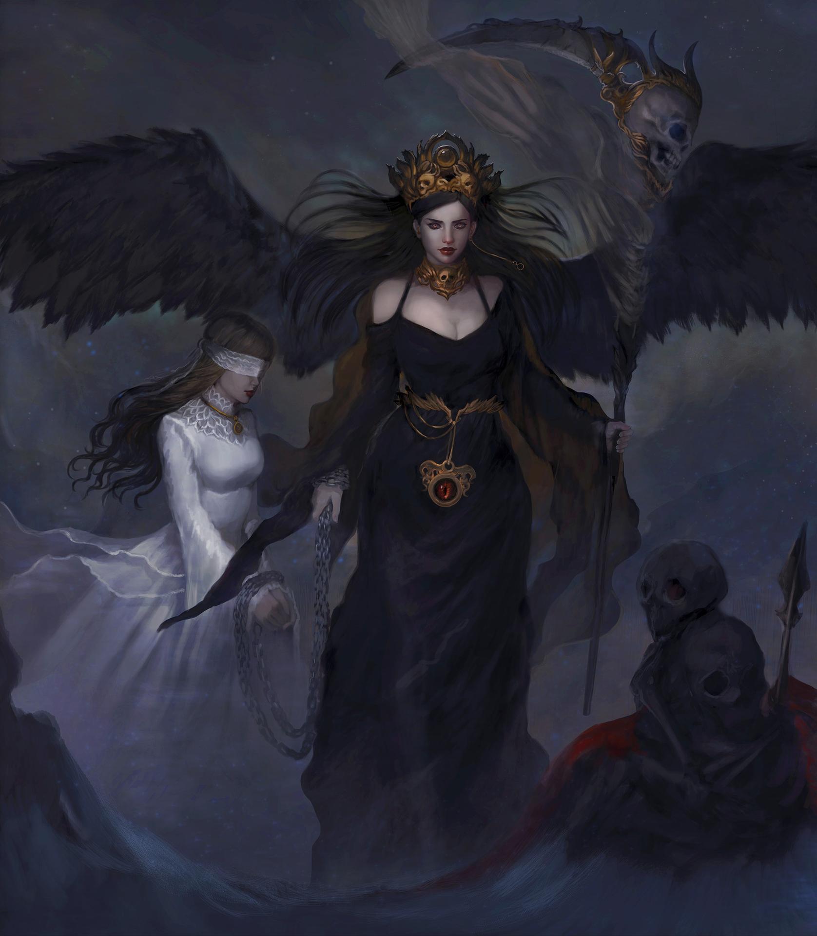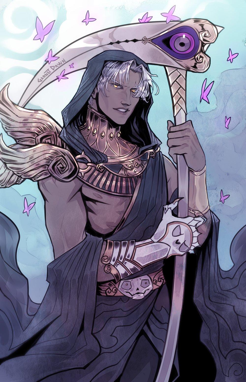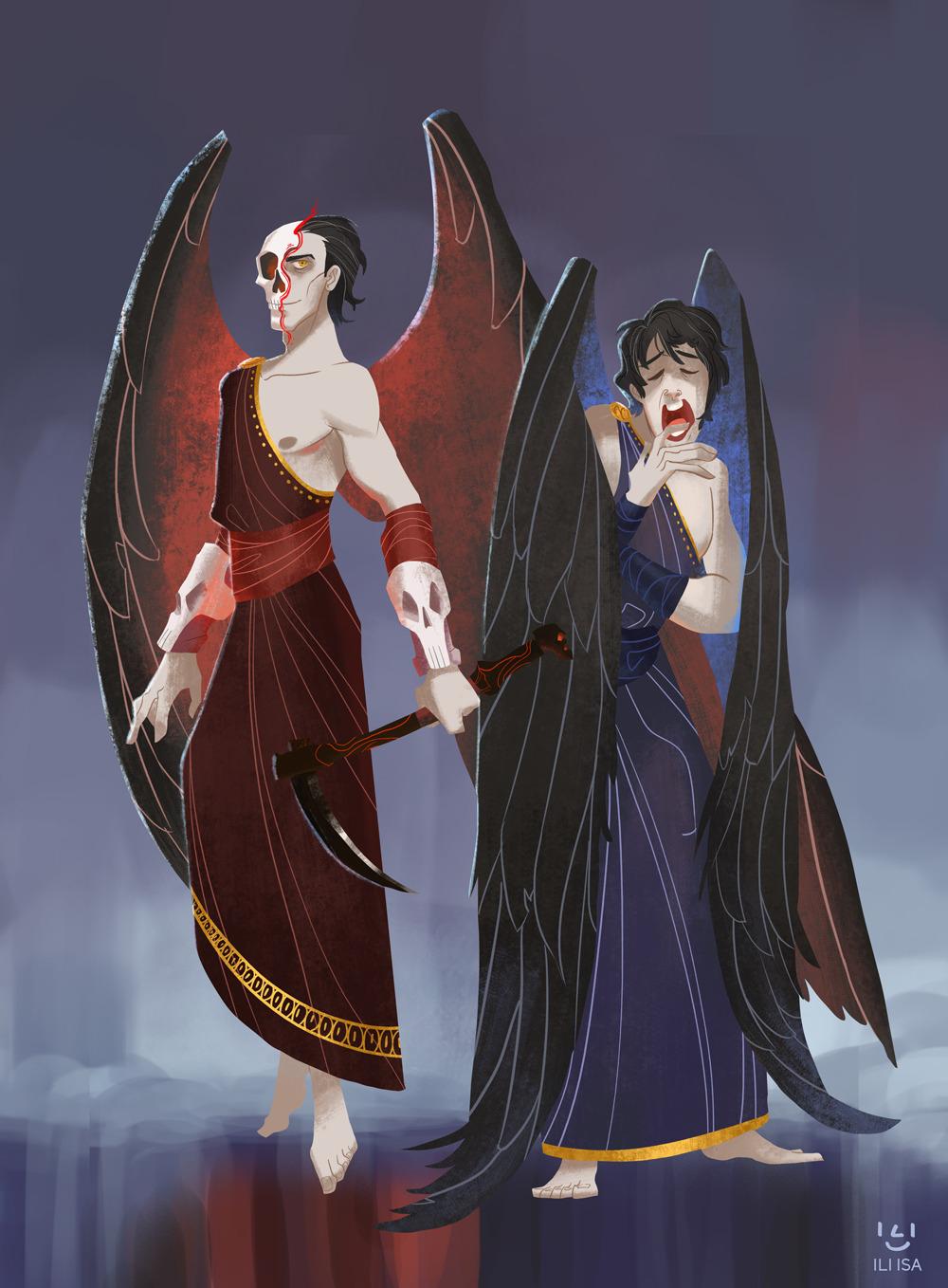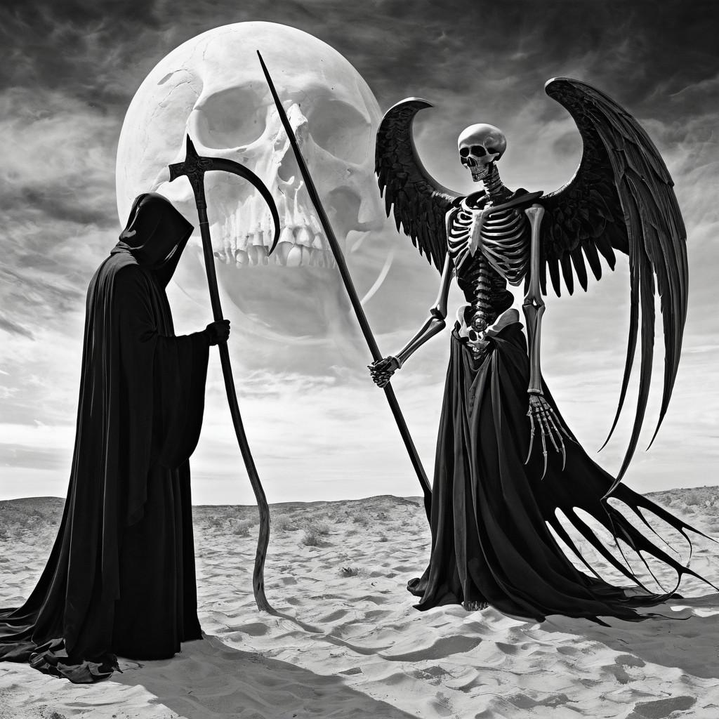 В этих захватывающих иллюстрациях Танатос предстает перед нами как величественная фигура с крыльями, держащая в руках перевернутый песочный час, символизирующий неумолимое течение времени. Художники мастерски передают атмосферу древнегреческих мифов, где бог смерти собирает души умерших, сопровождая их в царство Аида. Темные тона, драматические тени и античная архитектура создают неповторимую атмосферу загробного мира. Каждая деталь - от складок одежды до выражения лица - рассказывает о величии и неизбежности смерти как части жизненного цикла. Эти арты вдохновляют размышления о вечности, переходе между мирами и философских аспектах человеческого существования.