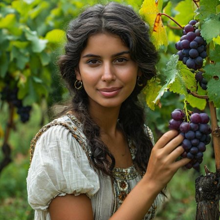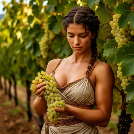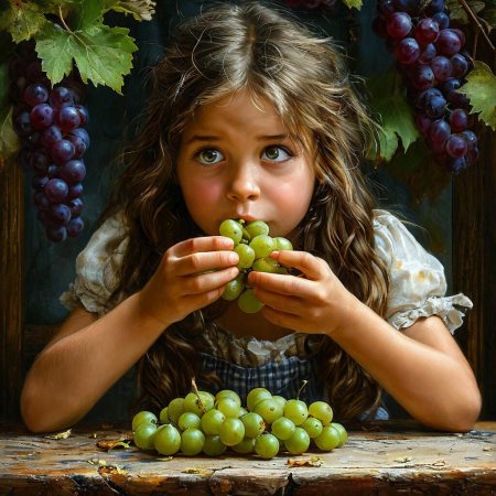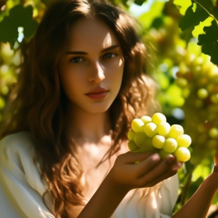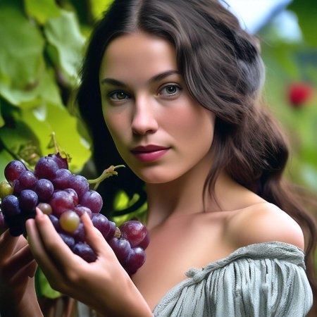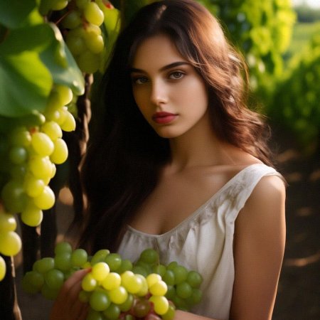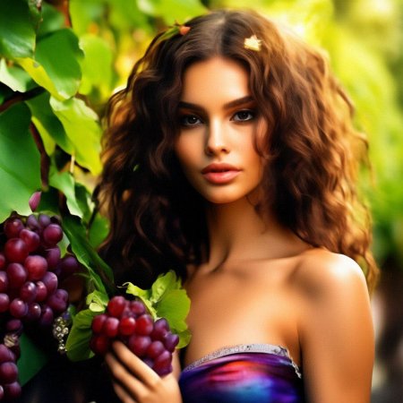 Удивительная серия иллюстраций, где молодая девушка нежно держит спелые гроздья винограда, символизирующие изобилие и радости жизни. Художник создает атмосферу сельской идиллии с элементами чувственности, где фрукты становятся не просто натюрмортом, а частью романтического повествования. Теплые золотистые тона летнего солнца контрастируют с сочной зеленью листьев, создавая гармоничное единство природы и человеческой красоты. Детализация текстуры кожи, блеска ягод и легкого ветерка в волосах делает каждую работу живой и динамичной. Эти арты напоминают о простых радостях жизни и связи между человеком и природой в эпоху цифрового искусства.