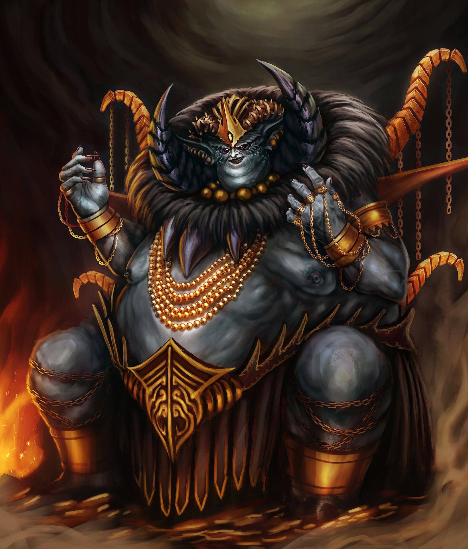 В этих мрачных иллюстрациях Маммон предстает как воплощение алчности и власти над материальными благами в демоническом облике. Художник создает атмосферу адских глубин с золотыми сокровищами, горящими глазами и королевской позой. Крылья из монет, корона из драгоценных камней и весы справедливости символизируют его господство над человеческими пороками. Композиции варьируются от тронных сцен до моментов суда над душами, подчеркивая философскую глубину темы. Эти работы вдохновляют размышления о цене богатства и истинной стоимости вещей в жизни человека.
