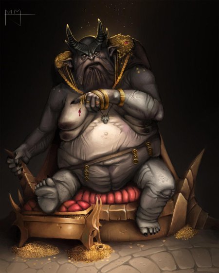 Маммон - это не просто демон жадности, а живое воплощение самой алчности, наделенное разумом и волей. Его внешность завораживает и пугает одновременно, словно вы смотрите на само богатство, принявшее демонический облик. Тело Маммона покрыто золотыми чешуйками, которые переливаются всеми оттенками драгоценных металлов, а глаза горят внутренним огнем, наполненным древней мудростью и нечеловеческой жадностью. Рога на голове демона - это не просто декоративные элементы, а символы его власти и силы, украшенные драгоценными камнями и металлами. Крылья за спиной - не просто органы полета, а продолжение его сущности, переливающиеся всеми цветами радуги и создающие эффект нимба из богатства. В руках Маммон держит скипетр, увенчанный огромным рубином, который светится внутренним светом, словно в нем заключена частица самого богатства. Каждое движение демона исполнено грации и силы, а в воздухе вокруг него постоянно мерцают искры магии, создавая атмосферу роскоши и опасности.